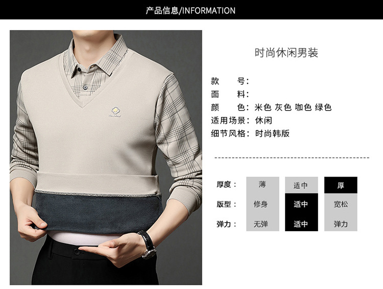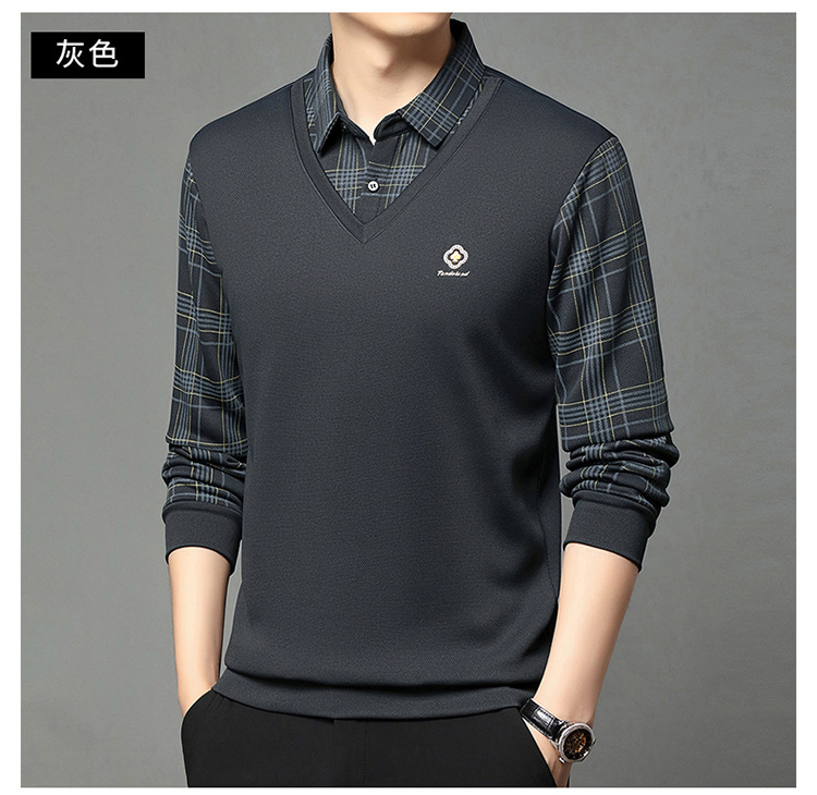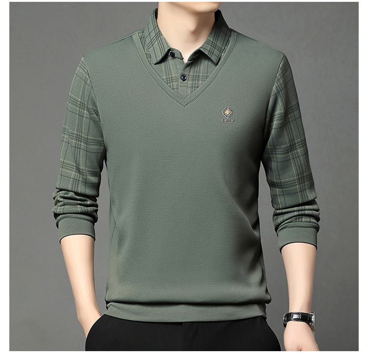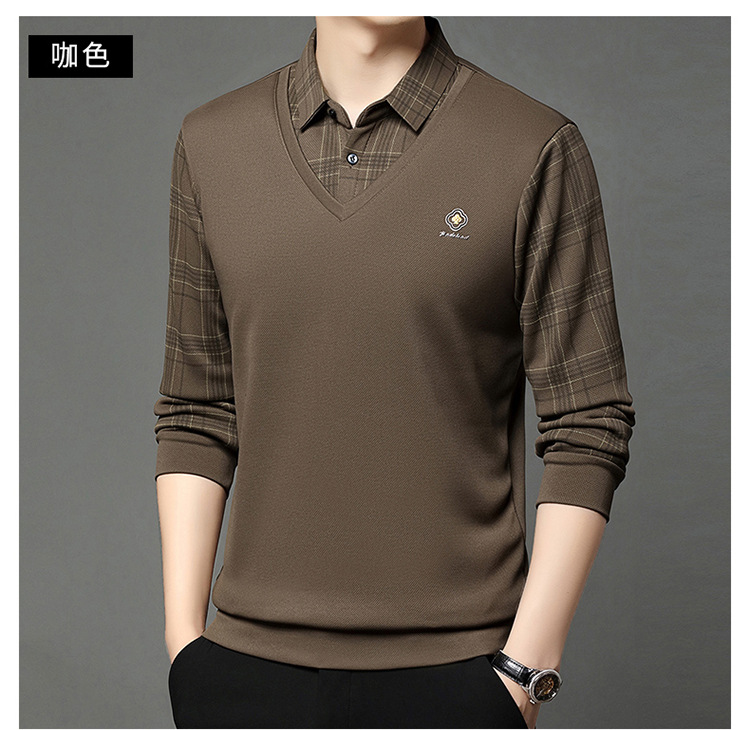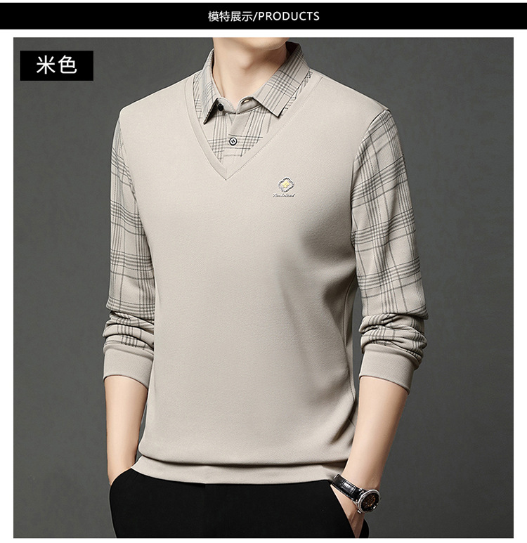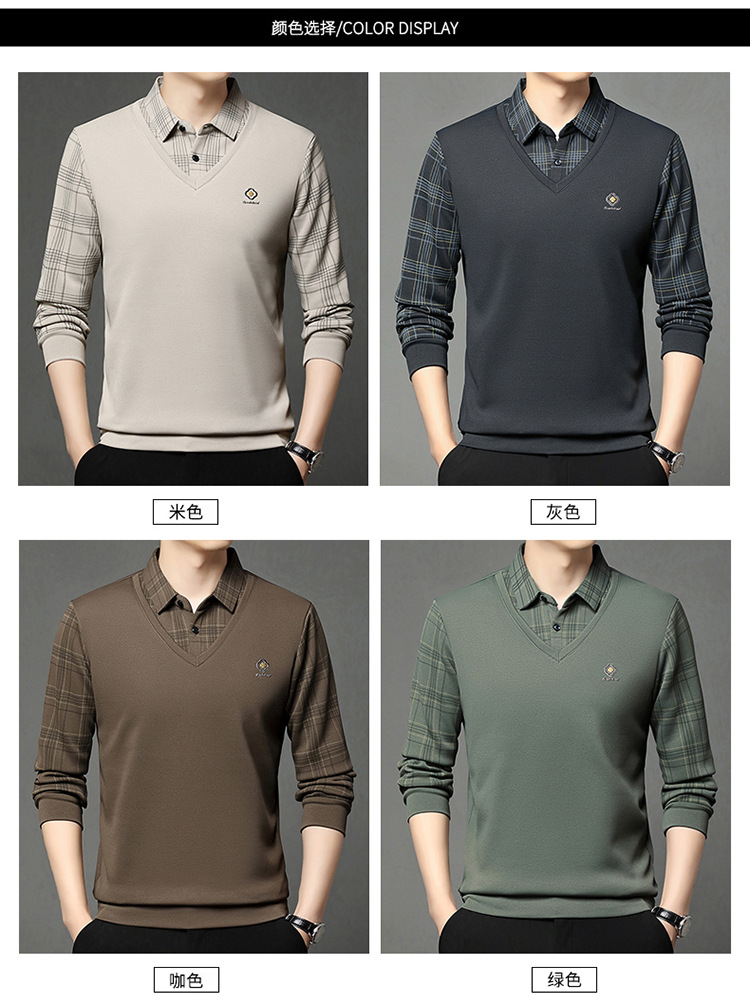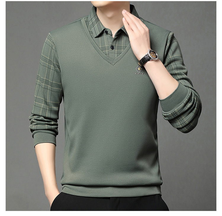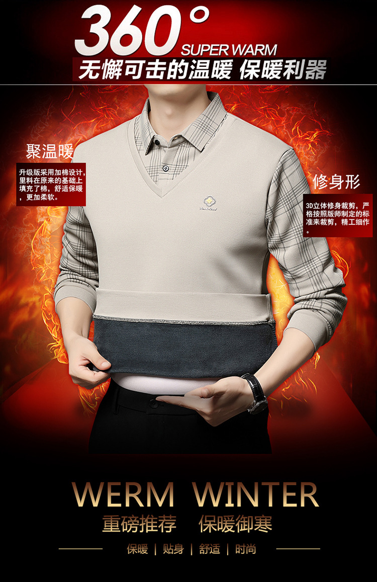 Осенняя и зимняя новая футболка с длинными рукавами для мужчин с отворотом поддельные две рубашки POLO бизнес-повседневная бархатная толстая нижняя рубашка