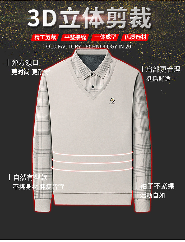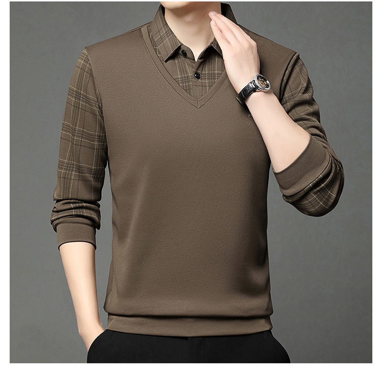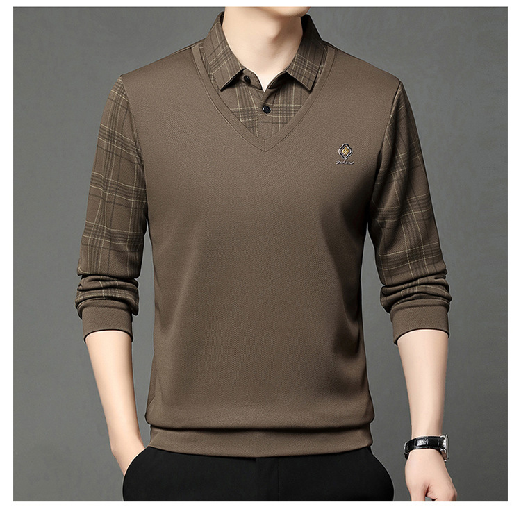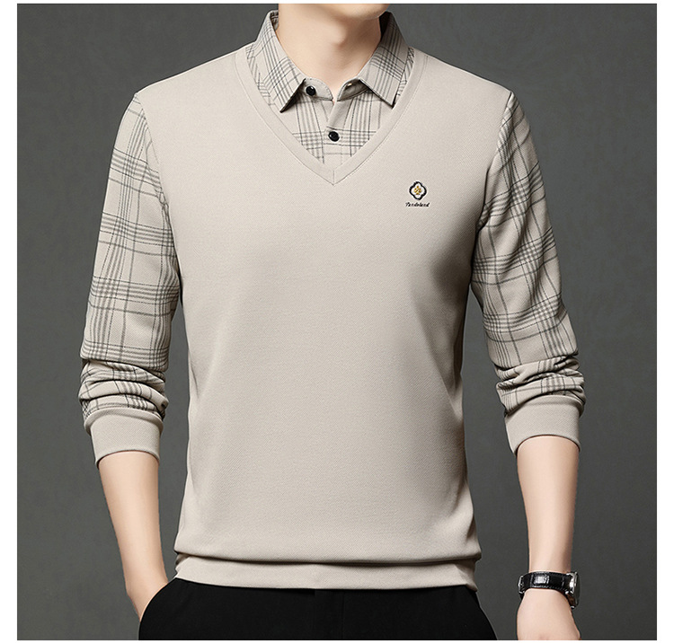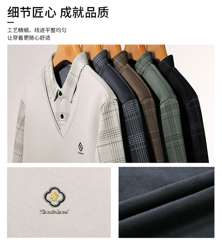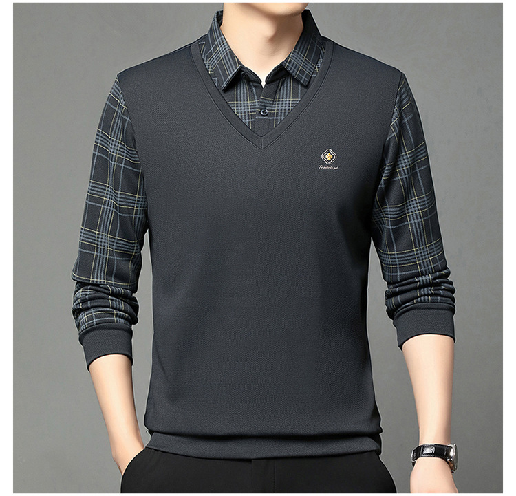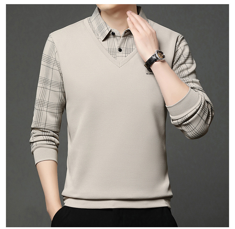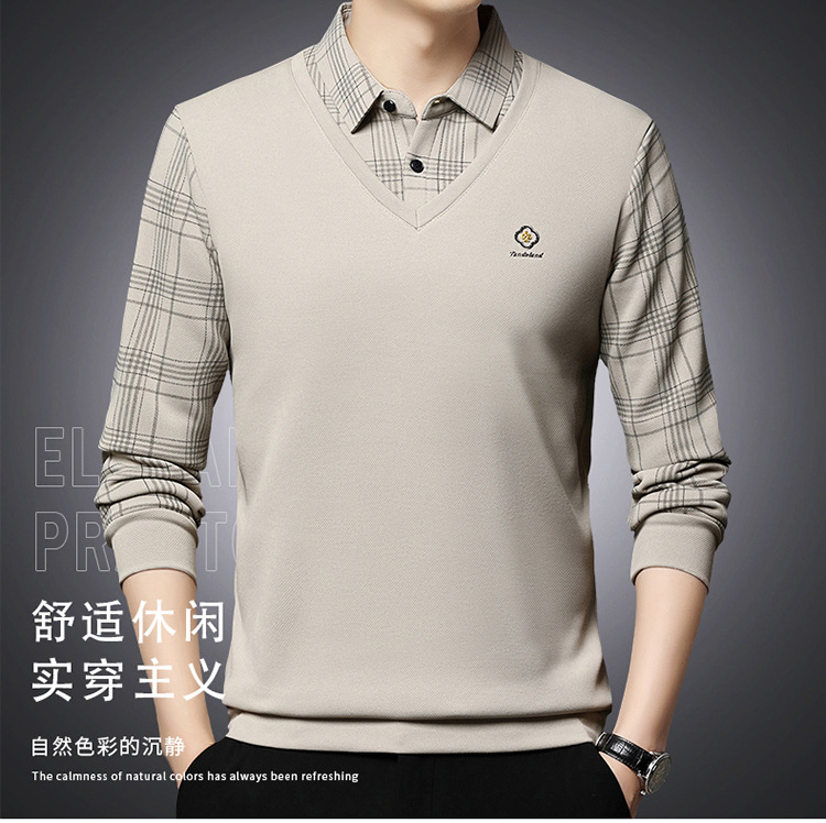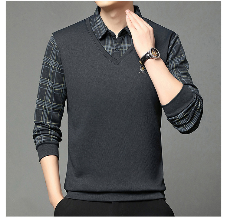 Осенняя и зимняя новая футболка с длинными рукавами для мужчин с отворотом поддельные две рубашки POLO бизнес-повседневная бархатная толстая нижняя рубашка