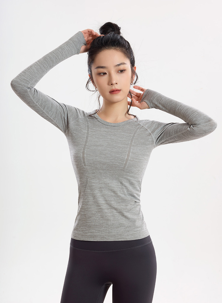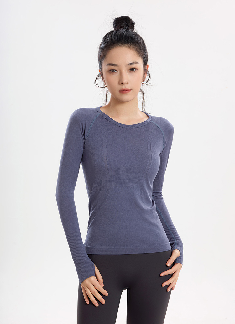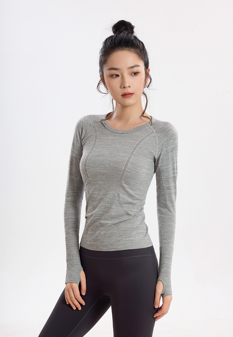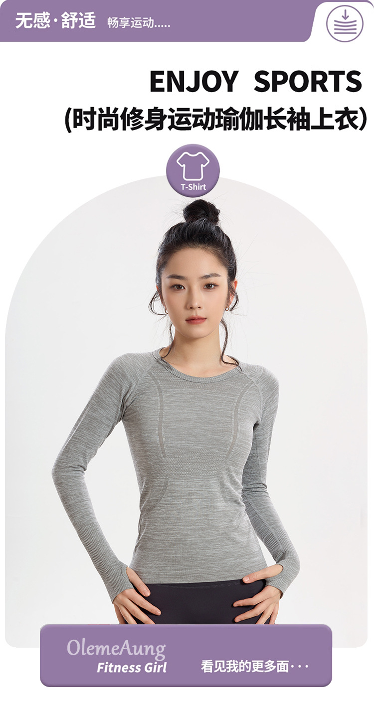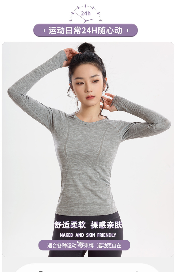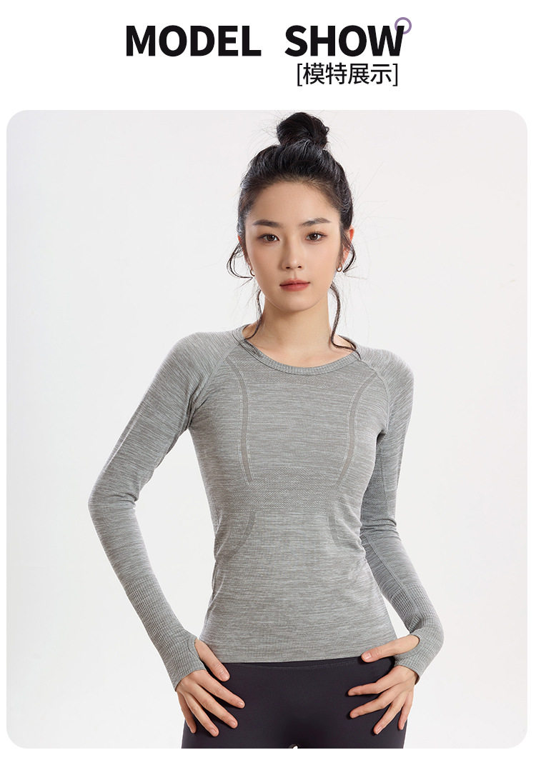Бесшовная одежда для йоги с круглым вырезом тонкий спортивный с длинными рукавами 2024 осенние и зимние футболки универсальный