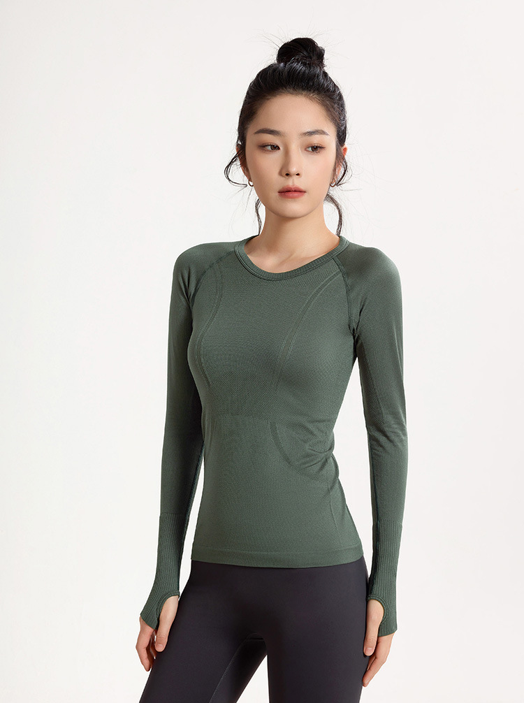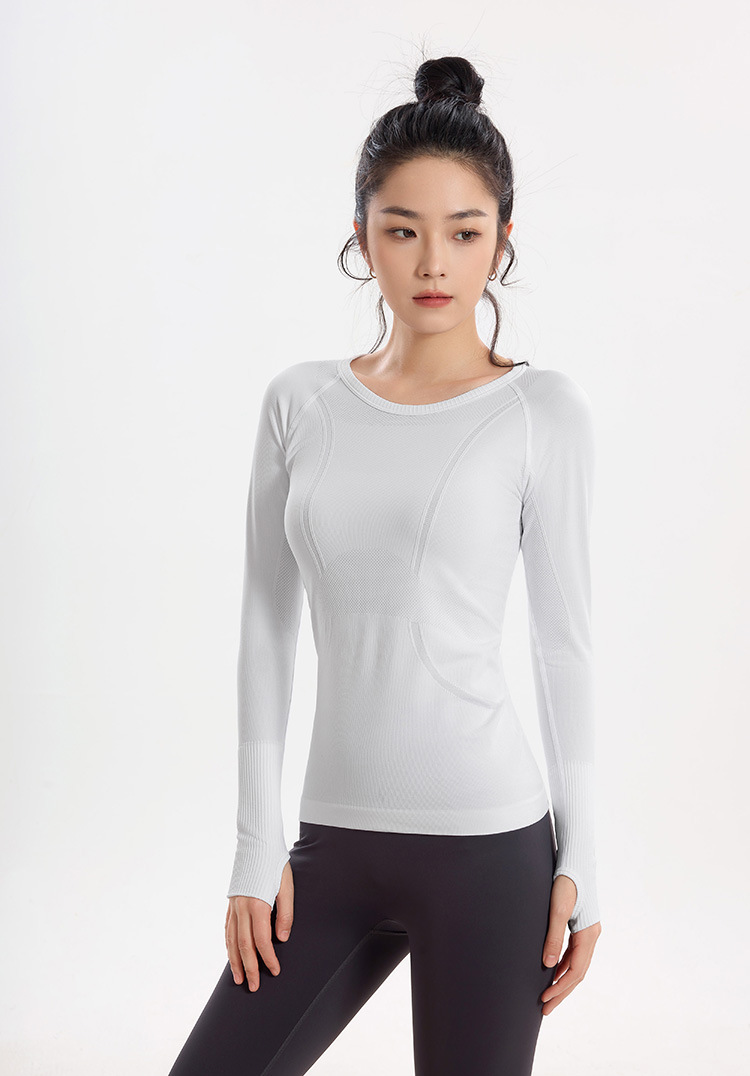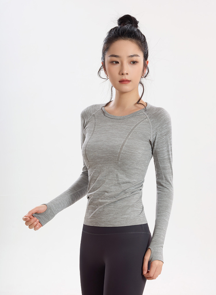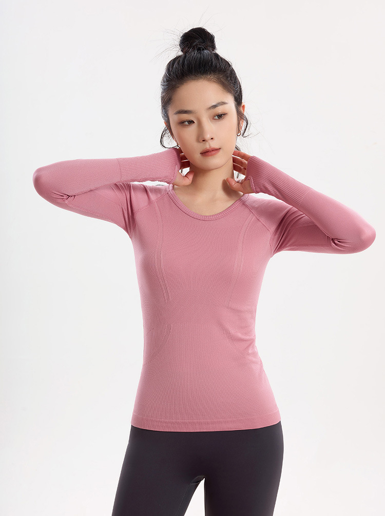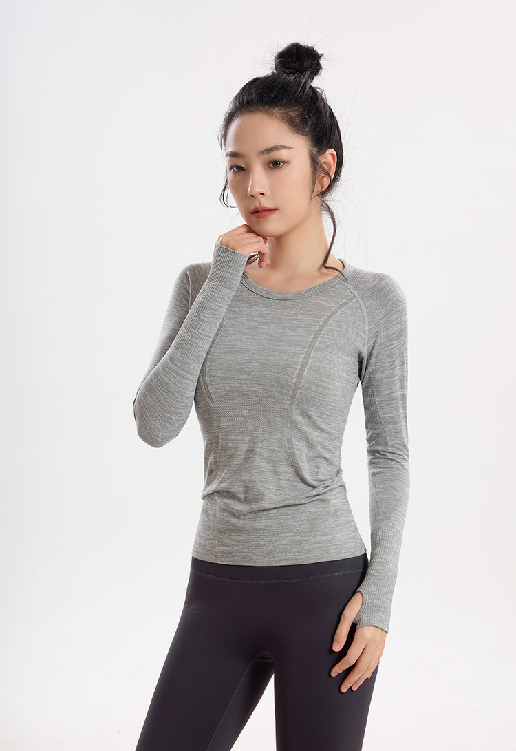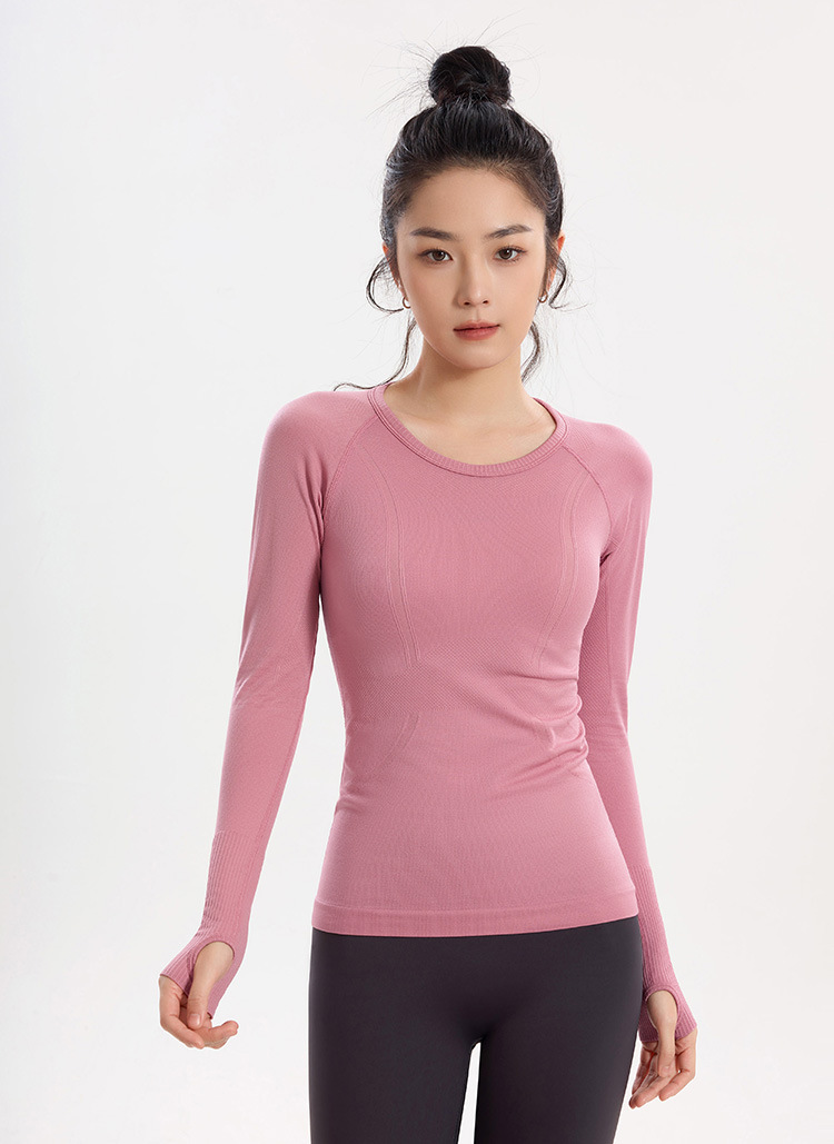 Бесшовная одежда для йоги с круглым вырезом тонкий спортивный с длинными рукавами 2024 осенние и зимние футболки универсальный