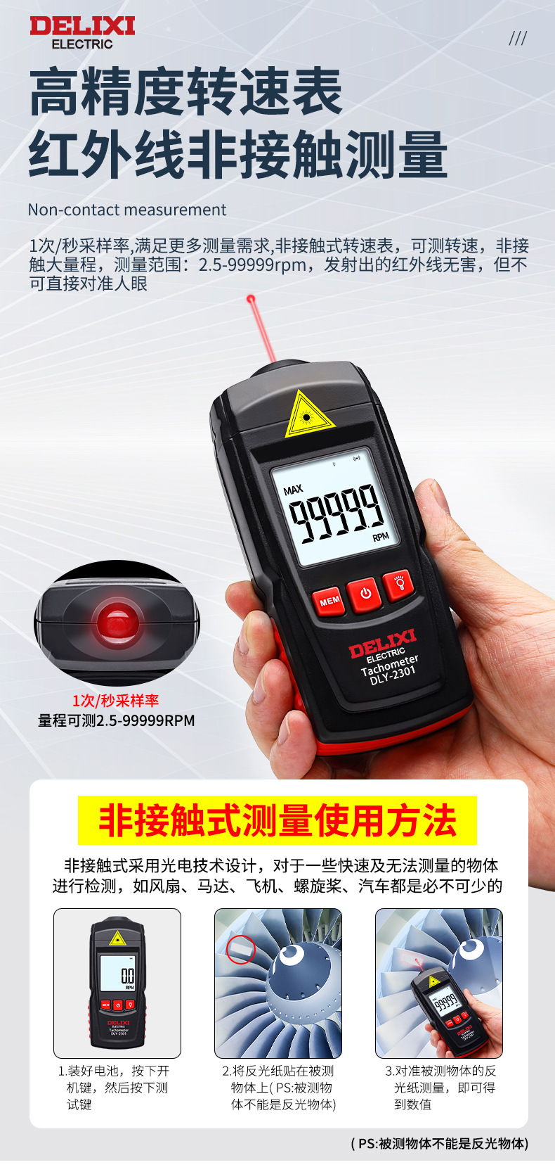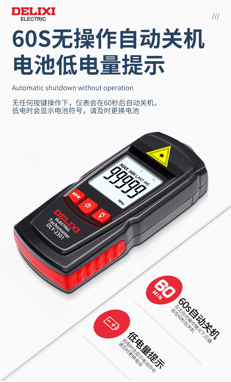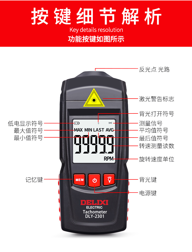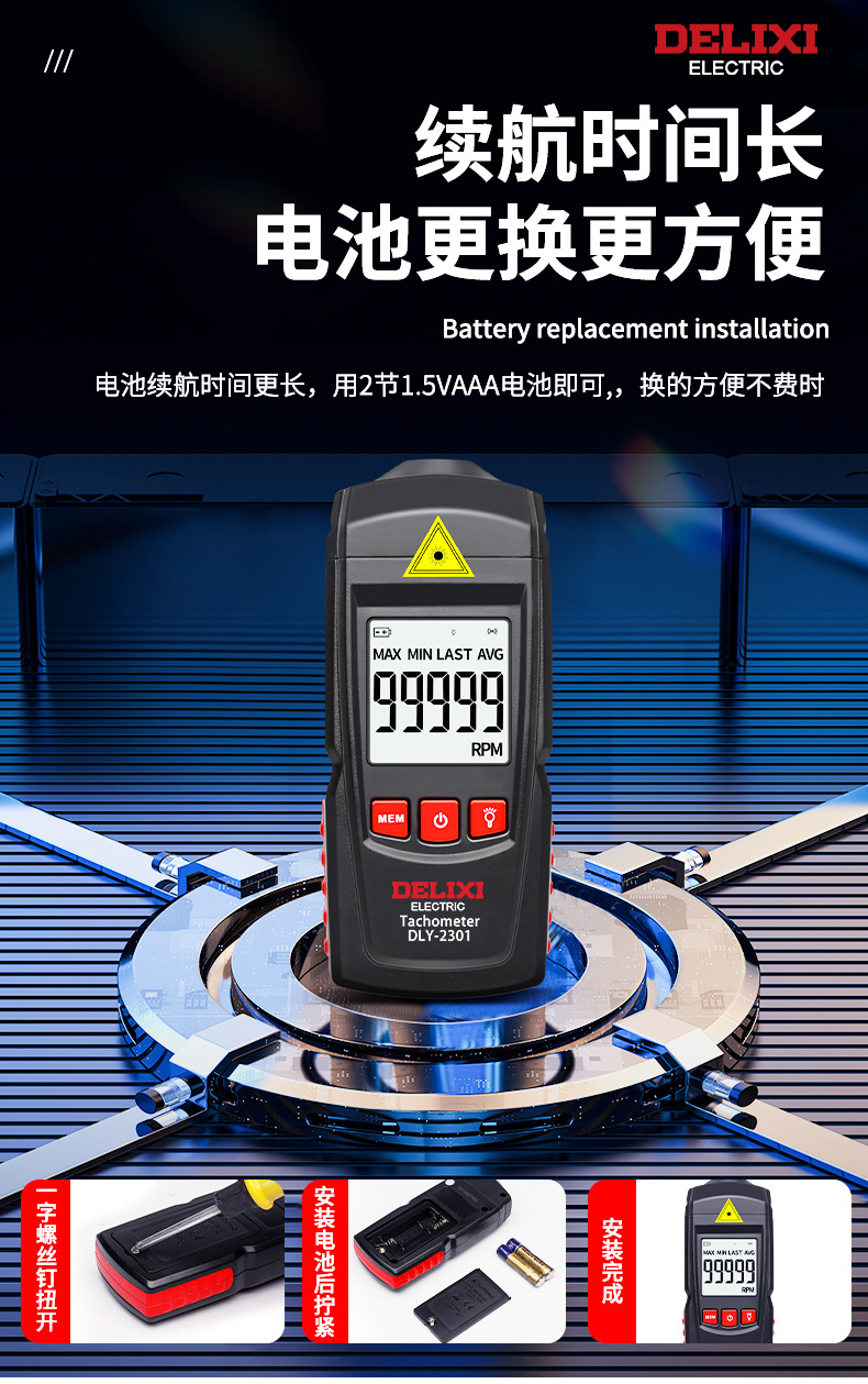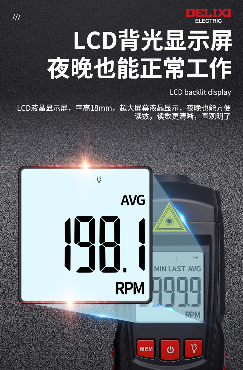 德力西电气激光转速计 光电式测速仪 手持式激光转速表