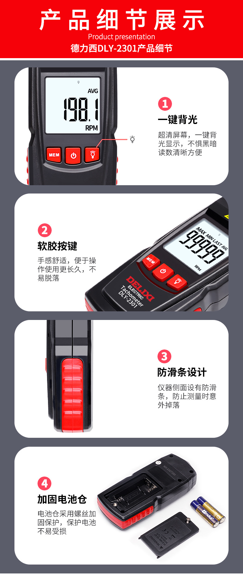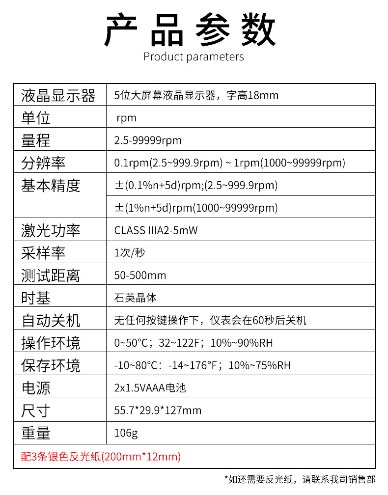 - 便携性好:激光转速表一般体积小巧、重量轻,便于携带