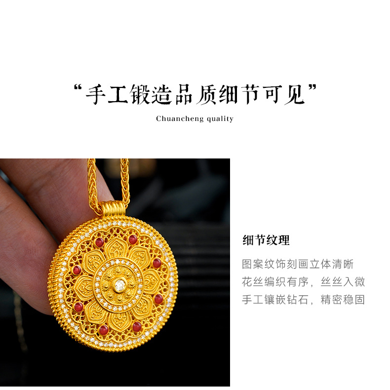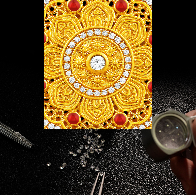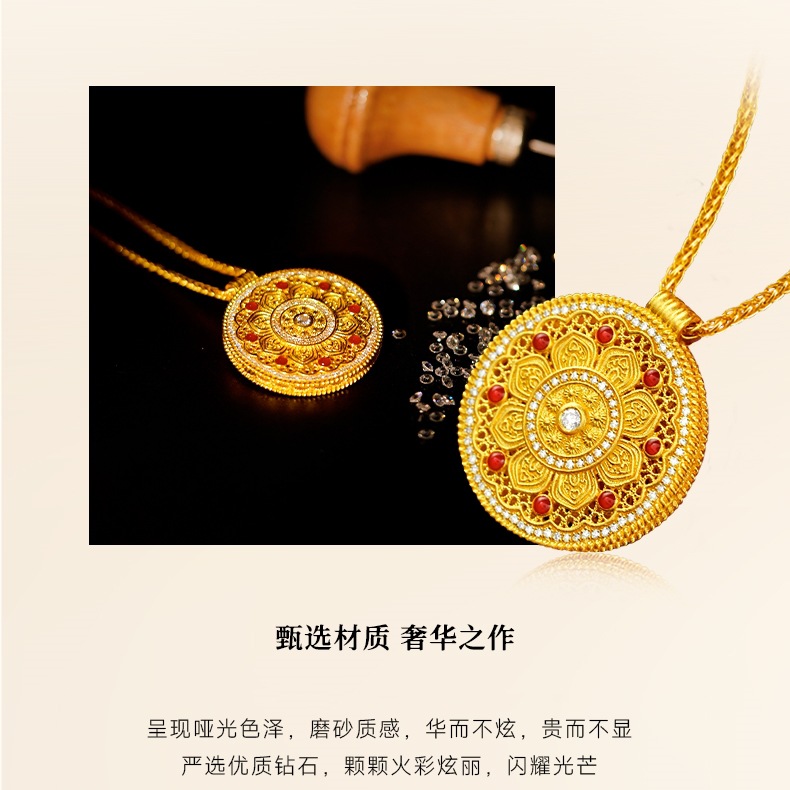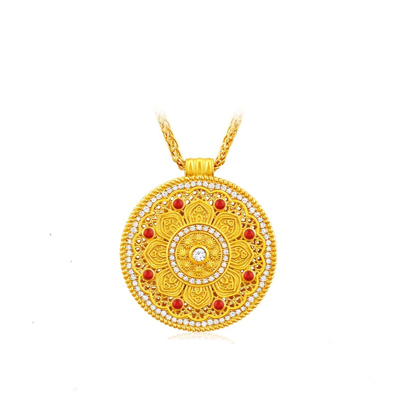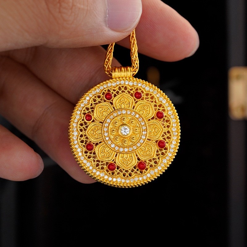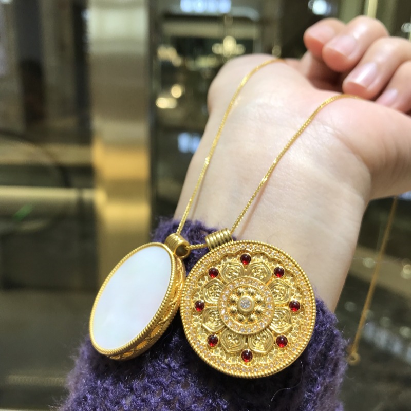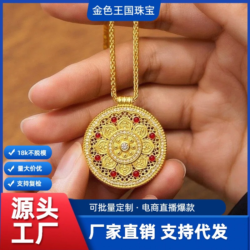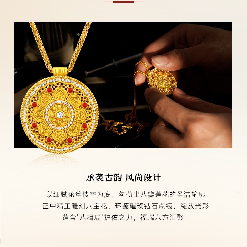 Подвеска из 18-каратного золота с восьмифазным лотосом au750, цветное золото, эмаль, ремесло, благоприятный лотос, привлекает богатство и удачу, золотая подвеска в виде водяной ракушки