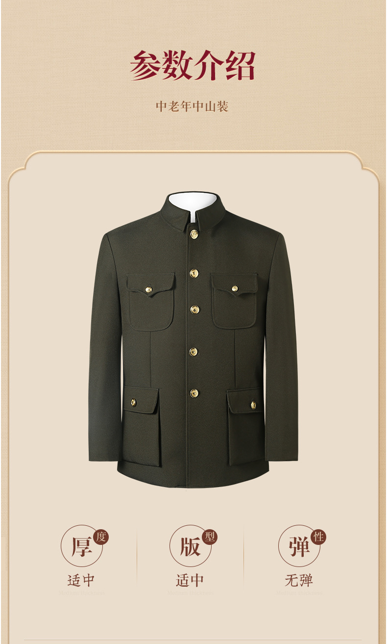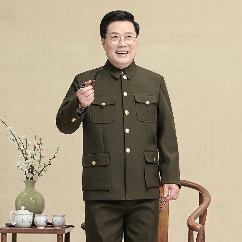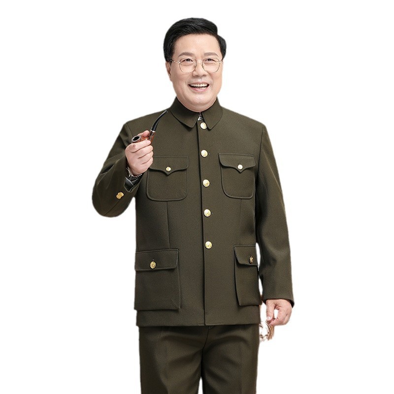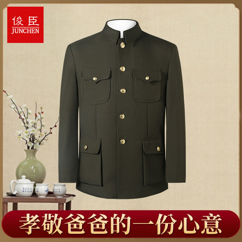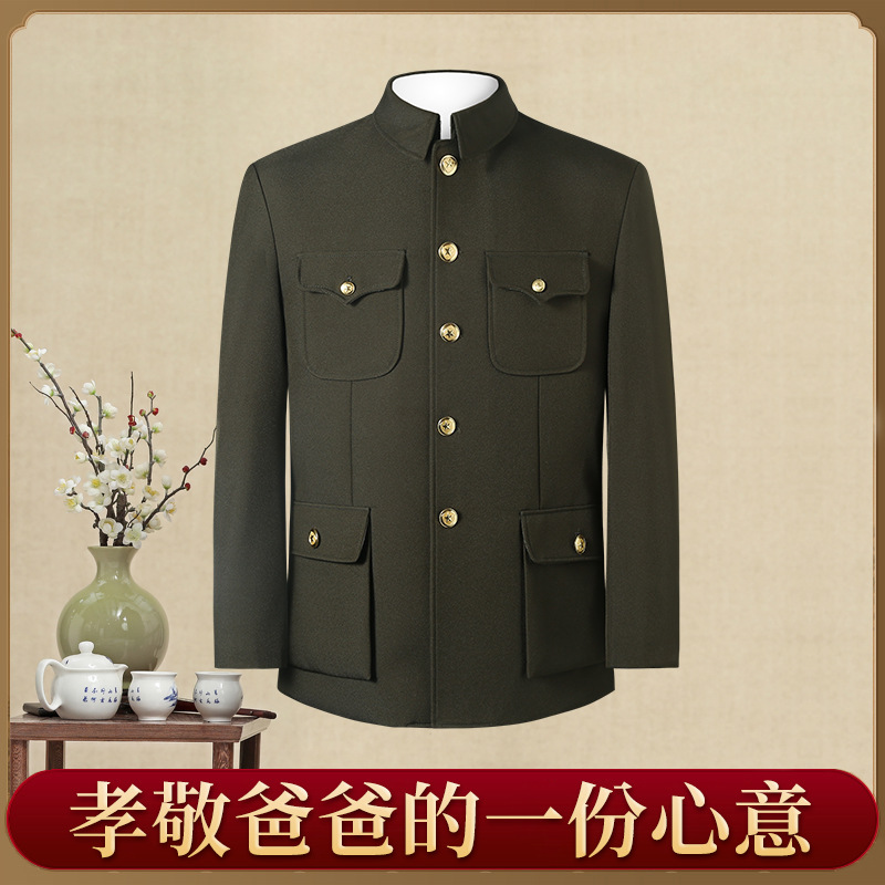 Зеленые топы в стиле милитари Чжуншань, верхняя одежда для папы среднего и пожилого возраста, старомодная одежда Чжуншань, весенняя и осенняя одежда для пожилых людей на теплотехнику