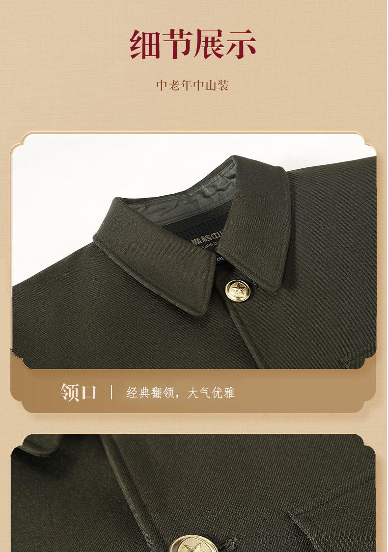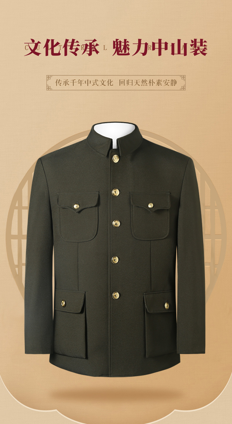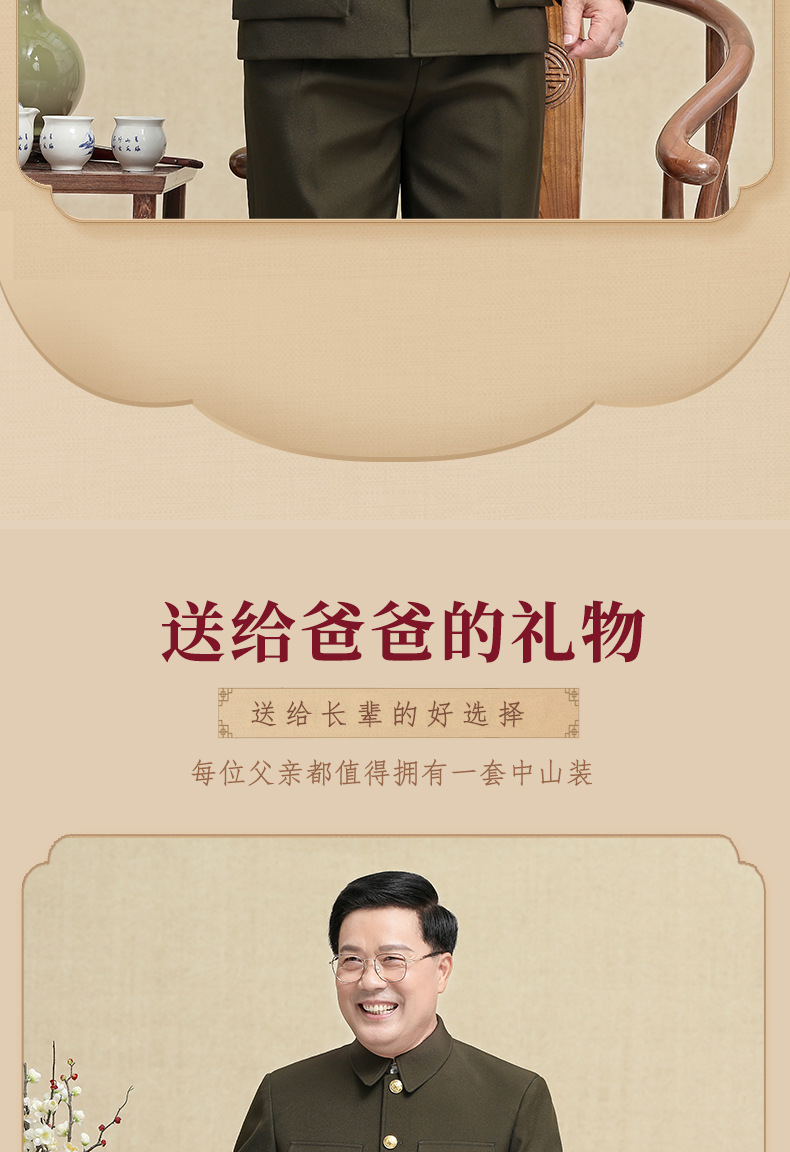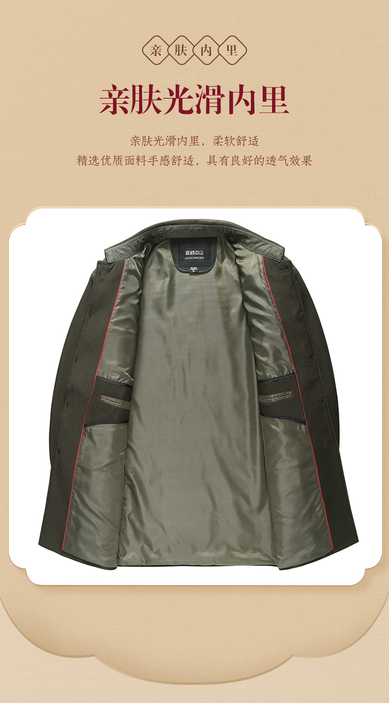 Зеленые топы в стиле милитари Чжуншань, верхняя одежда для папы среднего и пожилого возраста, старомодная одежда Чжуншань, весенняя и осенняя одежда для пожилых людей на теплотехнику