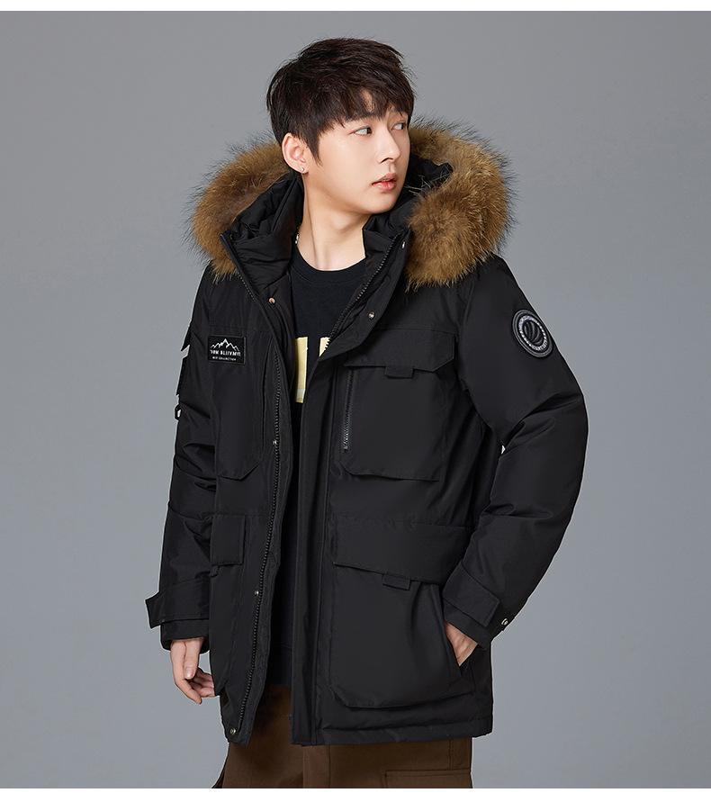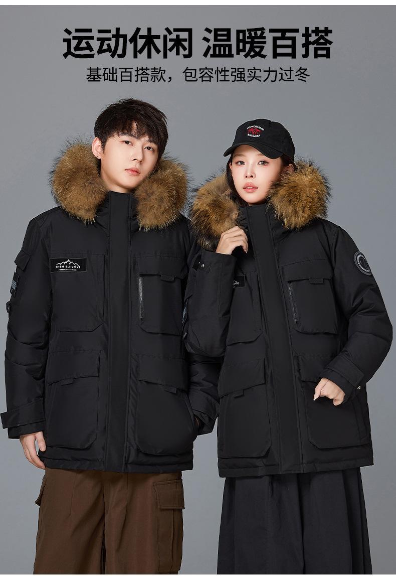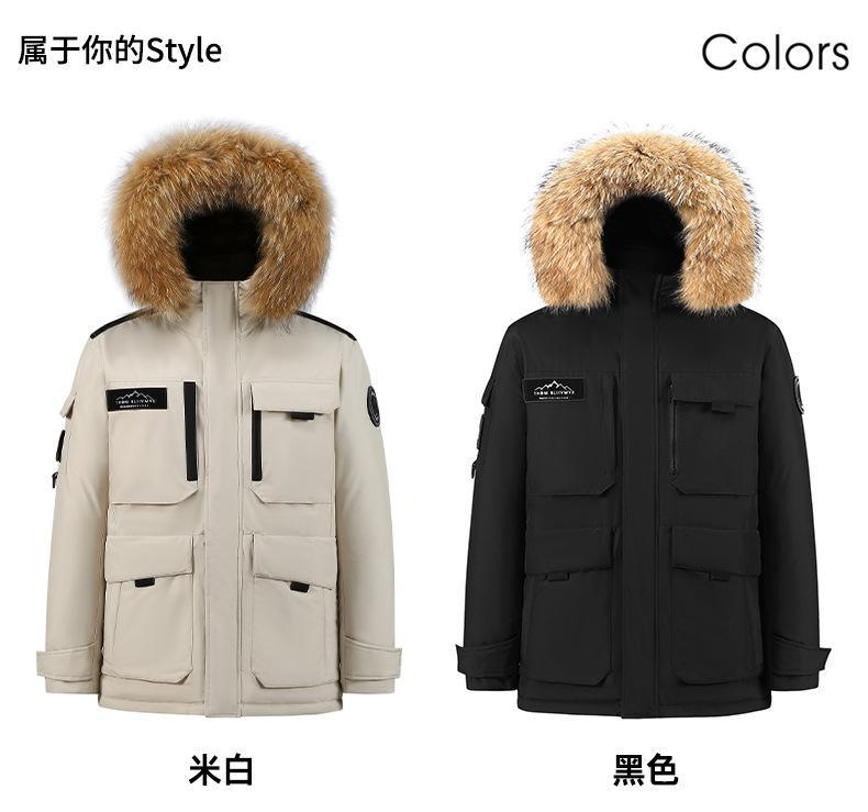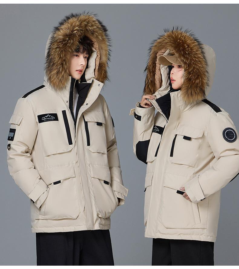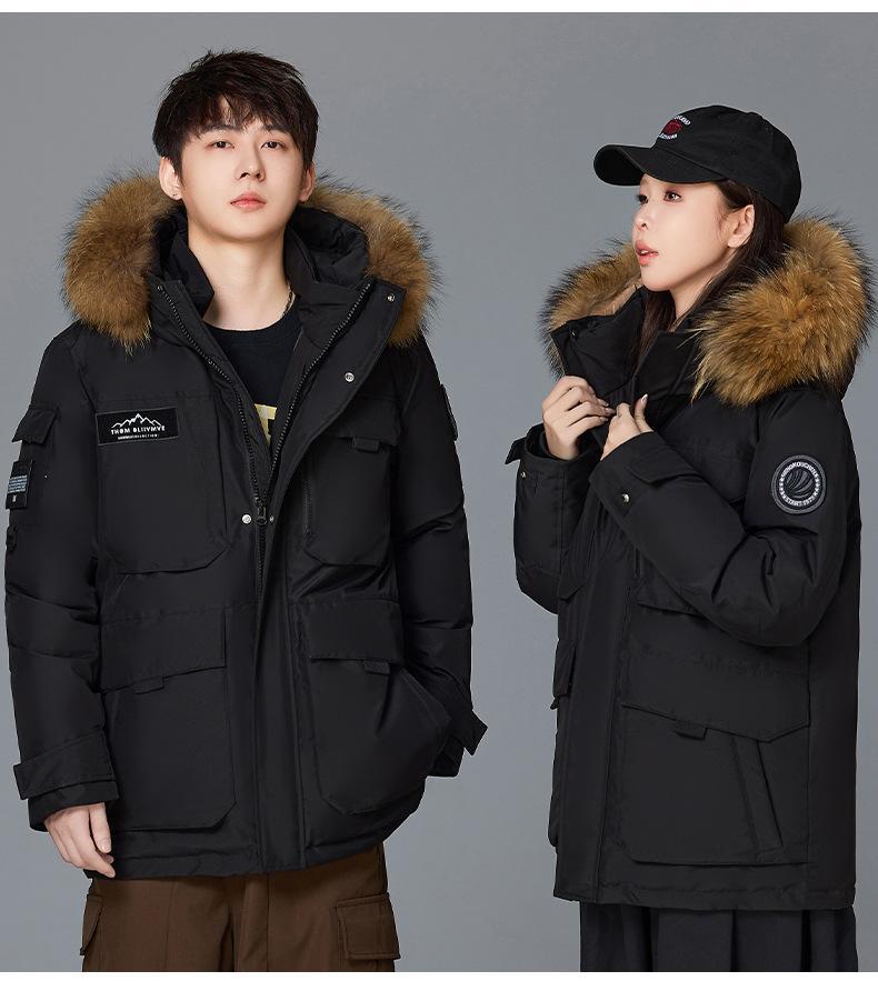 Новая утолщенная зимняя куртка-пуховик 2025 года для пар, унисекс, средней длины, с меховым воротником, теплая и стильная для активного отдыха.