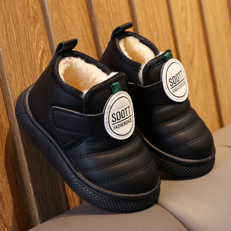 Хлопковые ботинки для мальчиков зимой бархатные теплые и водонепроницаемые детские толстые кожаные ботинки