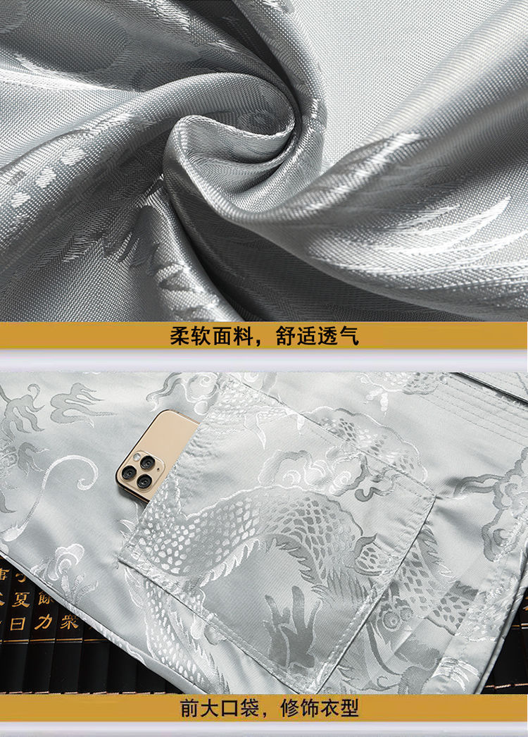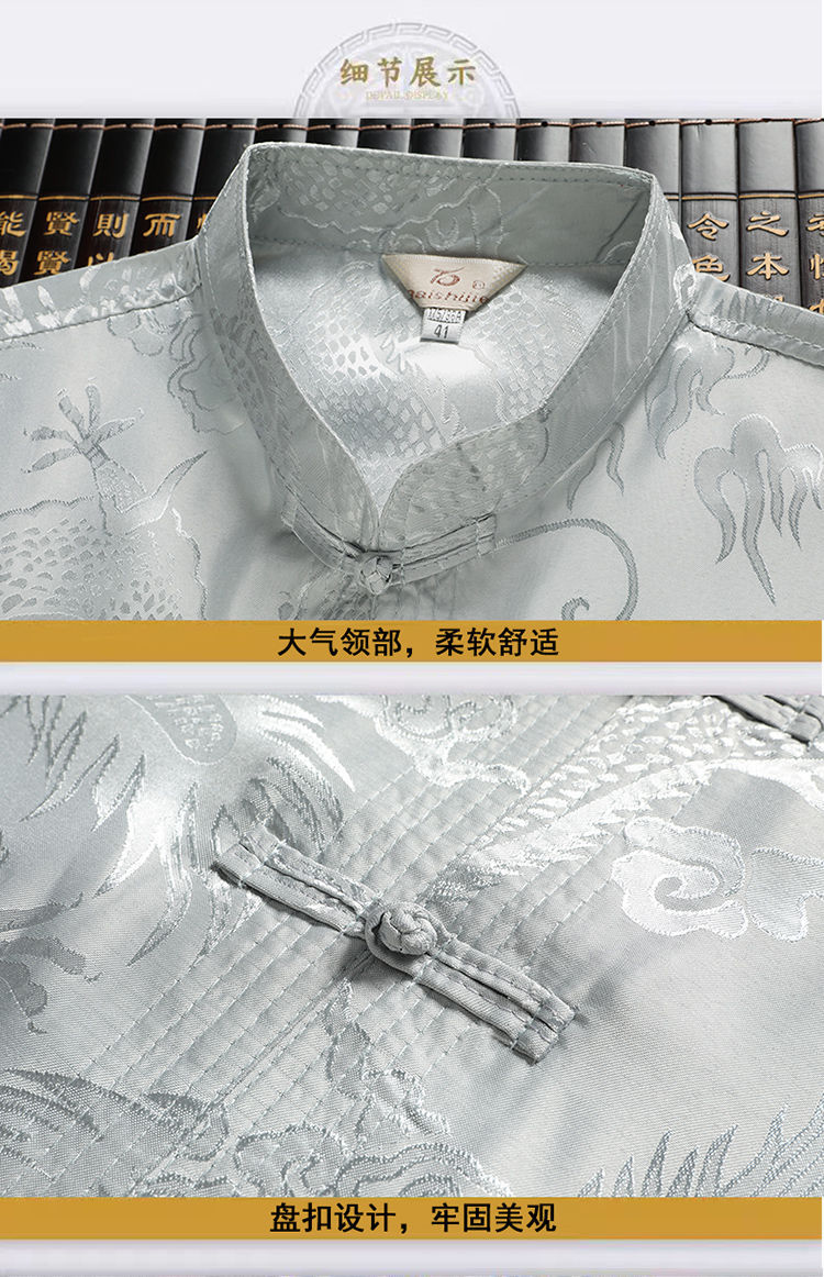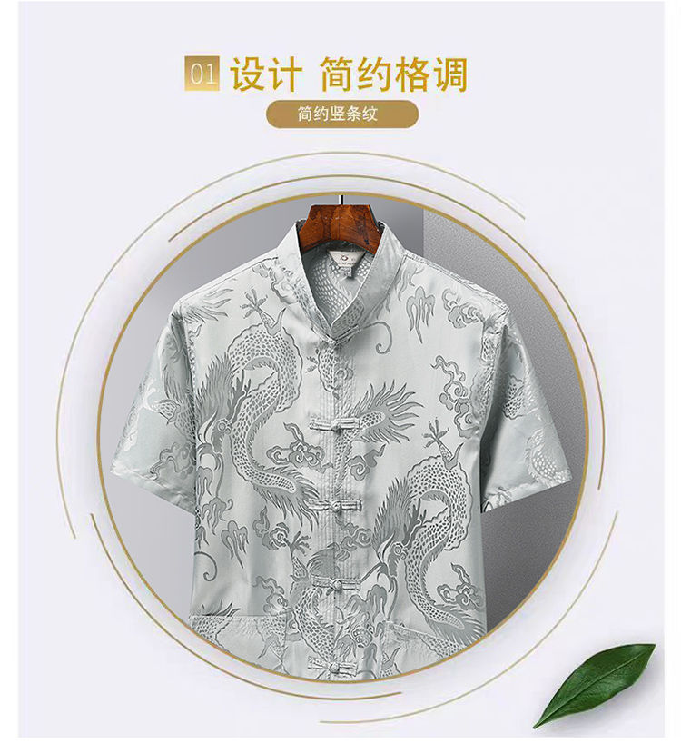 Тан костюм мужской ледяной шелковый древний стиль рубашка с короткими рукавами для пожилых людей