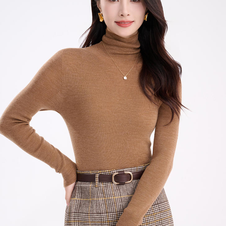 100% тонкая шерсть, 16-й класс толщины, 48/2-слойное бесшовное цельное изделие, можно стирать в машине, полувысокий воротник, свободный свитер для женщин.