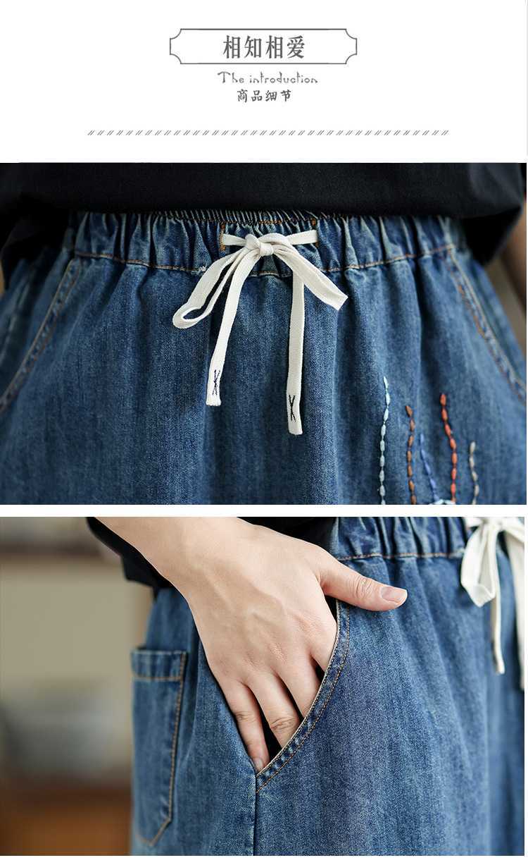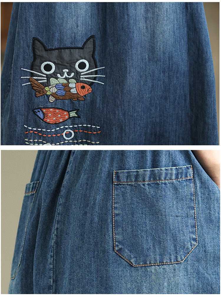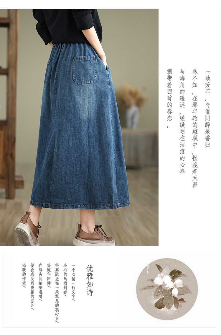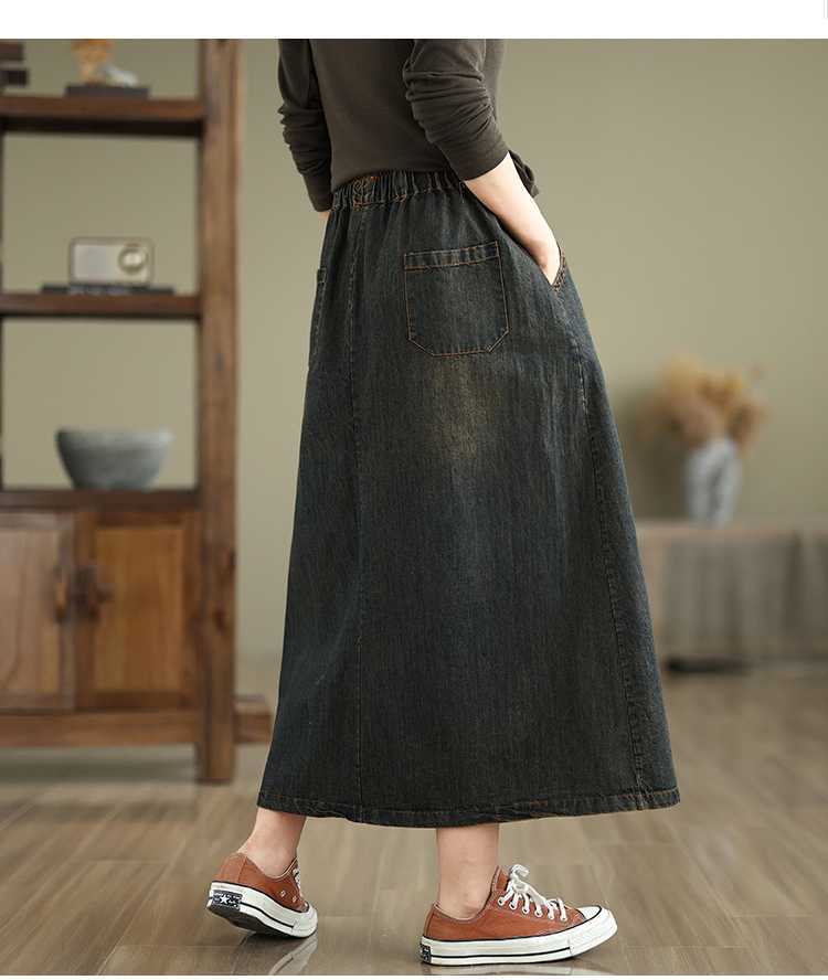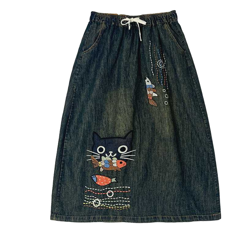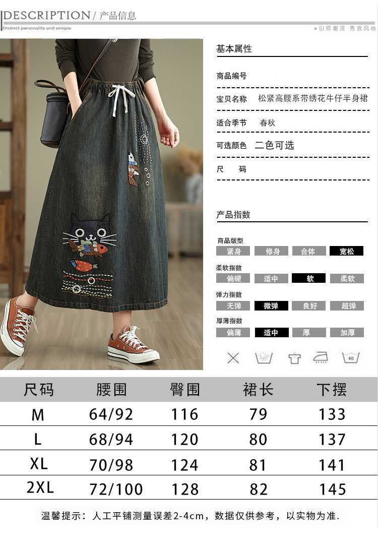 Реальная осенняя новая свободная вышивка джинсовая длинная юбка для стирки