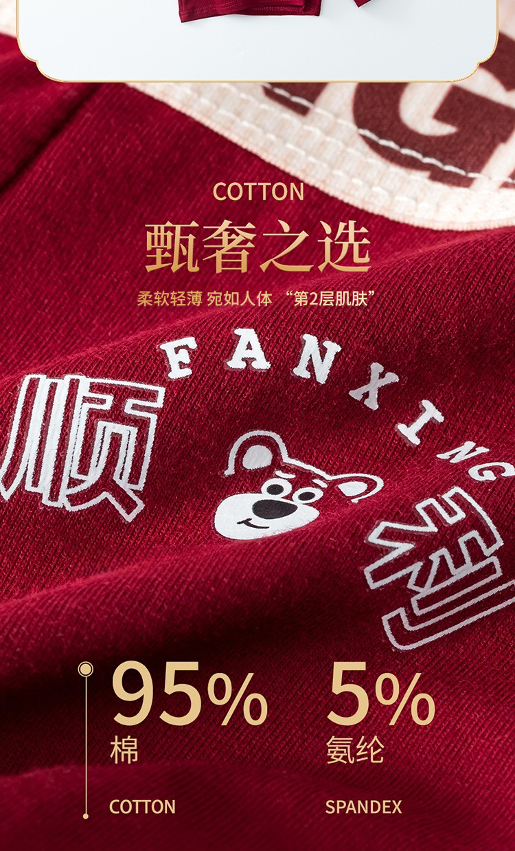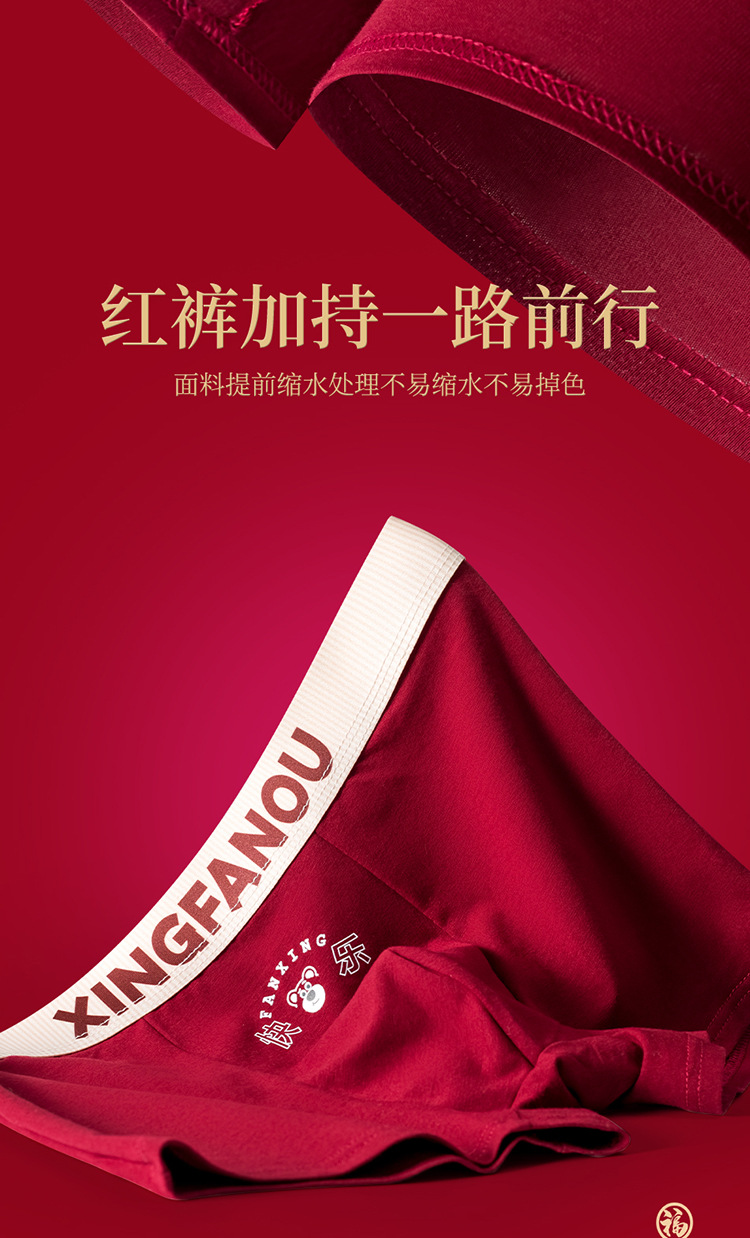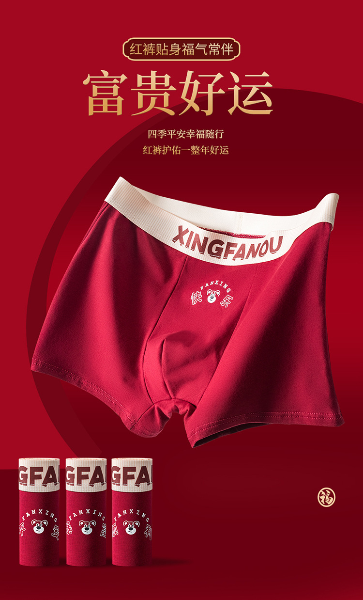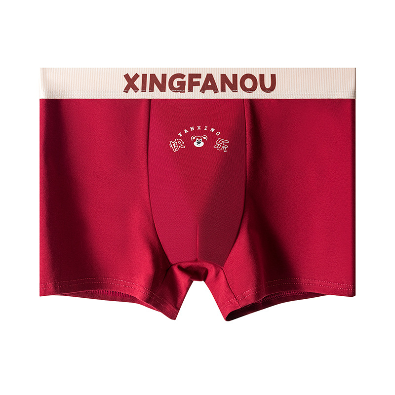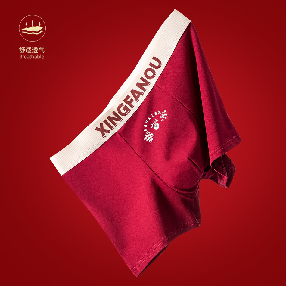 Год рождения Мужские трусики 7A Антибактериальные промежностные хлопчатобумажные трусики Мужские праздничные свадебные винно-красные мальчики плоские угловые брюки