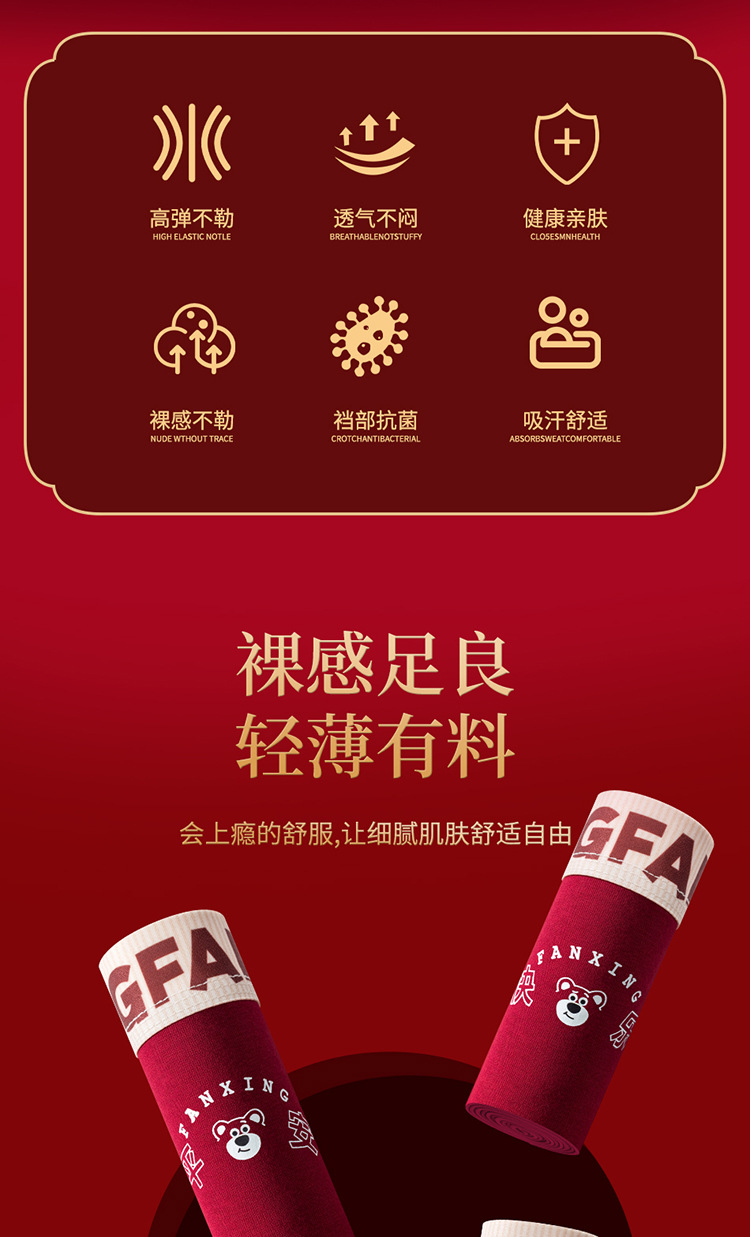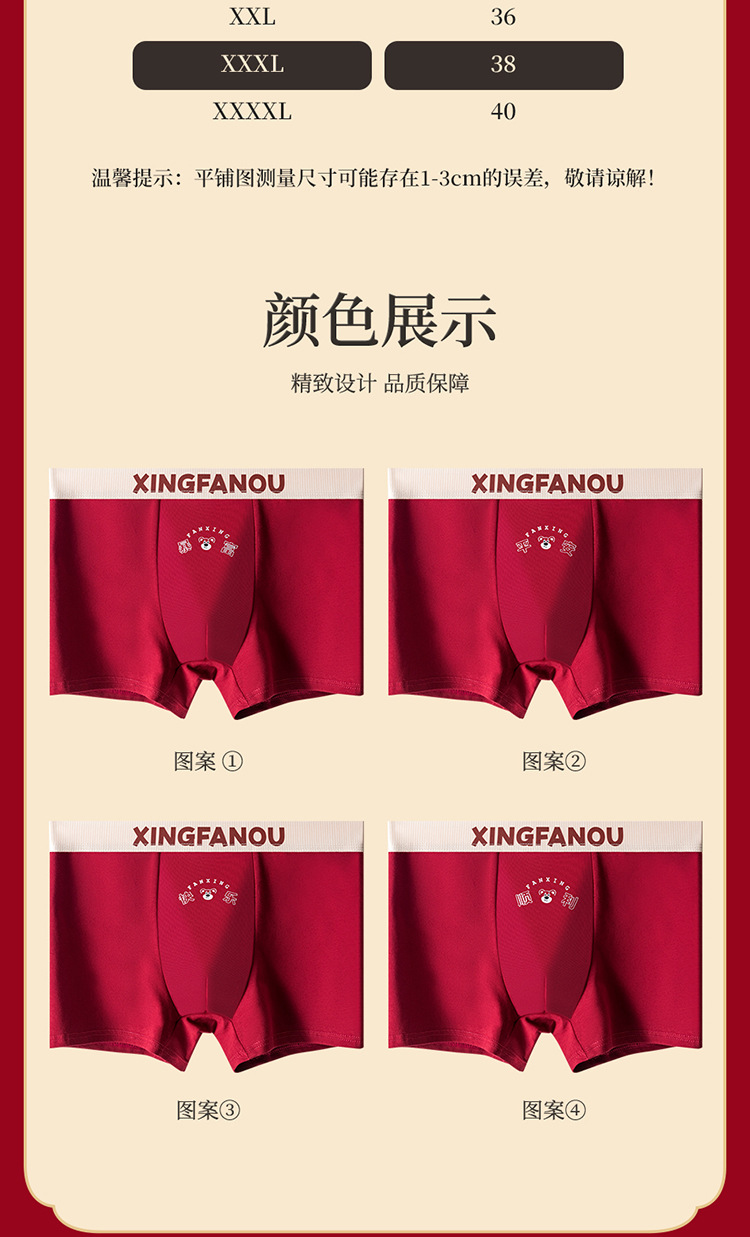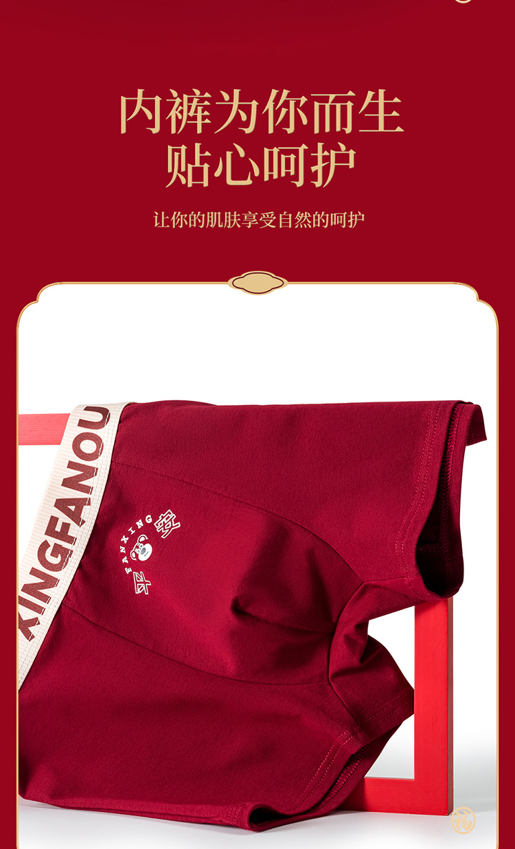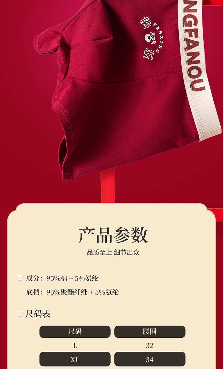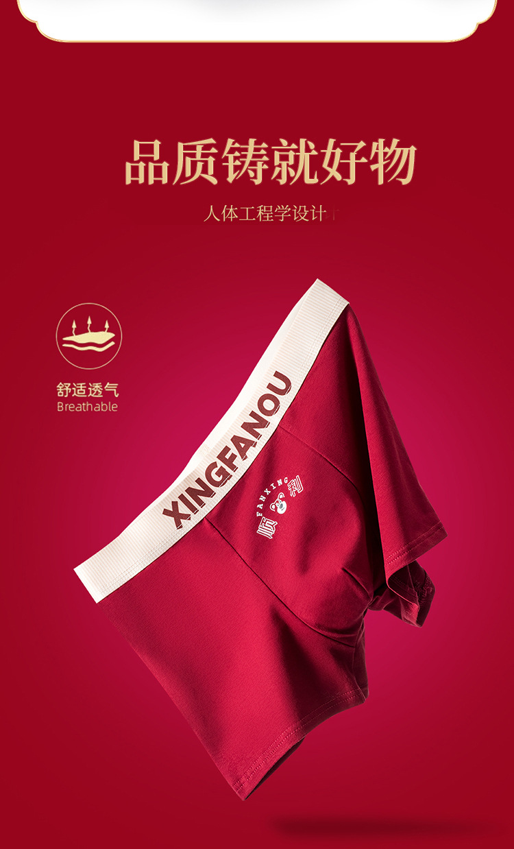 Год рождения Мужские трусики 7A Антибактериальные промежностные хлопчатобумажные трусики Мужские праздничные свадебные винно-красные мальчики плоские угловые брюки