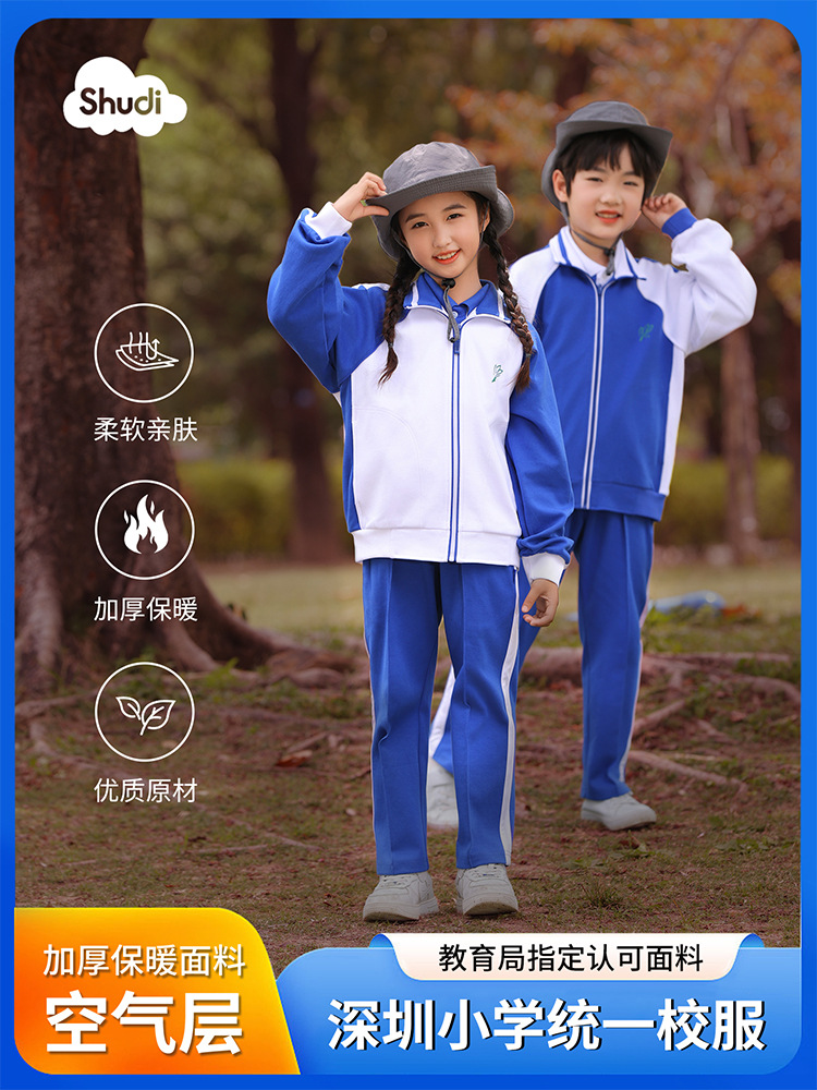 Шэньчжэнь зимняя школьная форма Начальная школа зимняя одежда унифицированный набор для ухода за кожей, теплые брюки с длинными рукавами, удобные мягкие пальто для мужчин и женщин