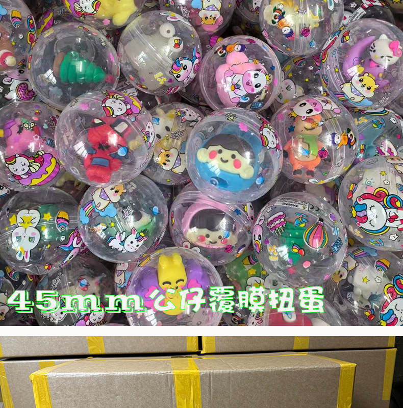 Оптовая продажа, в наличии, шарики гашапон 45мм, детские игрушки для использования в аркаде, 4.5cm прозрачных красочных кукол-наград