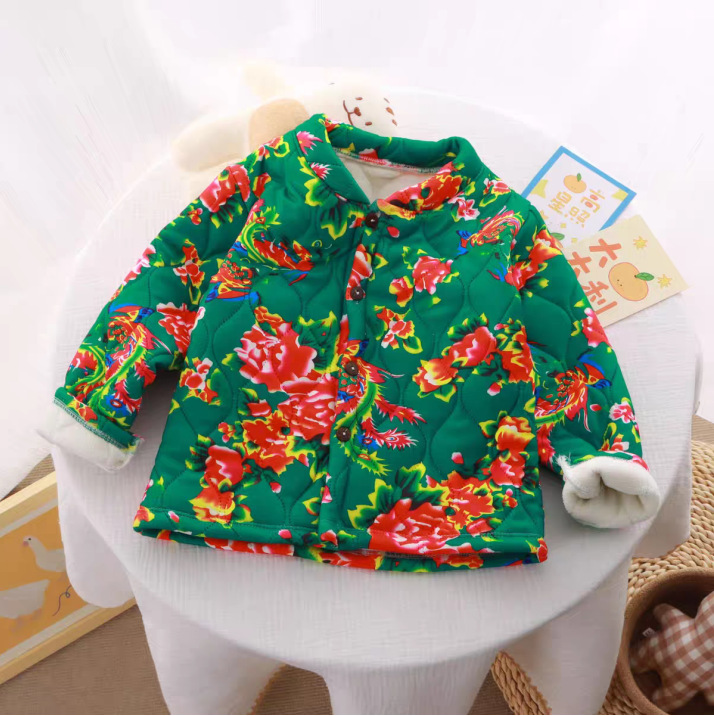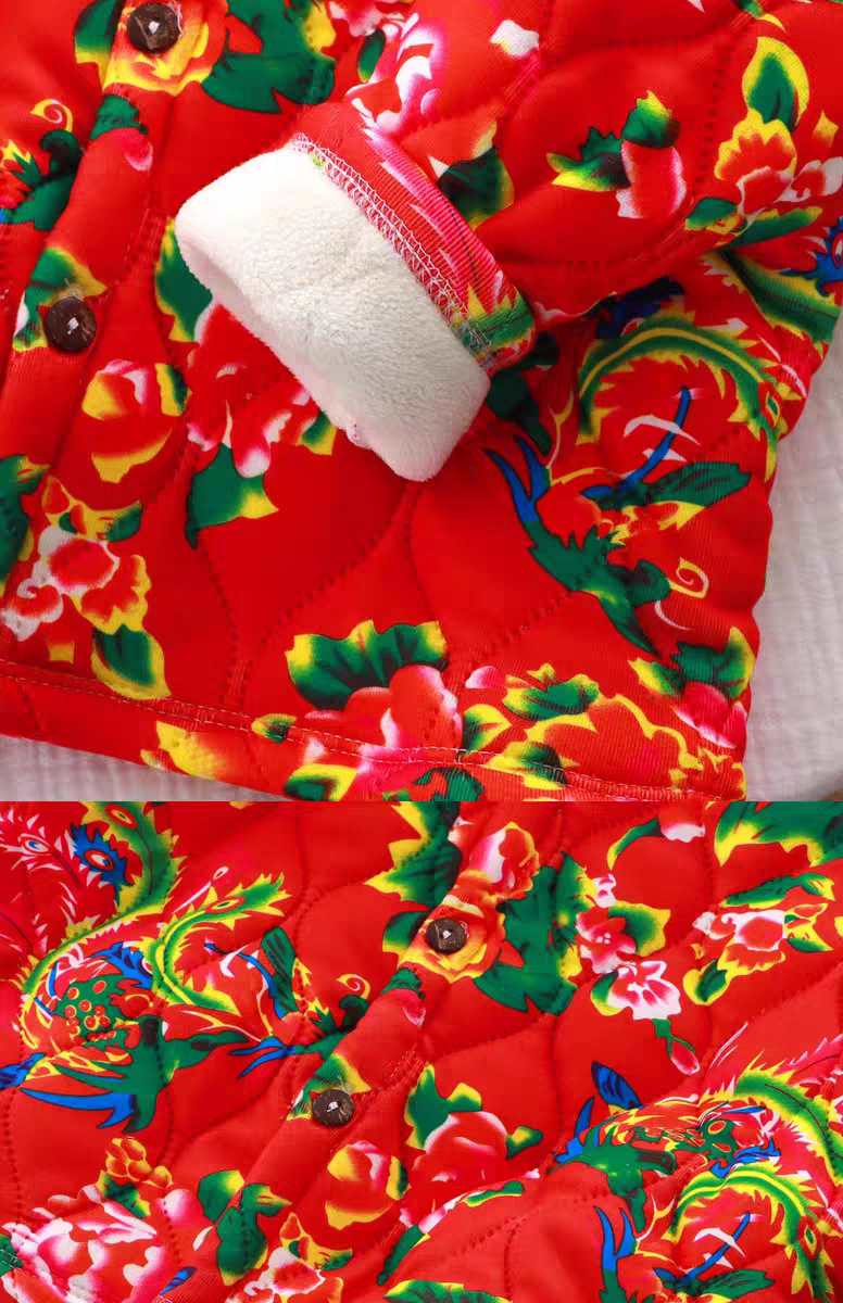 Дети северо-восточные цветочные куртки теплые цветочные хлопчатобумажные куртки зимний национальный ветер