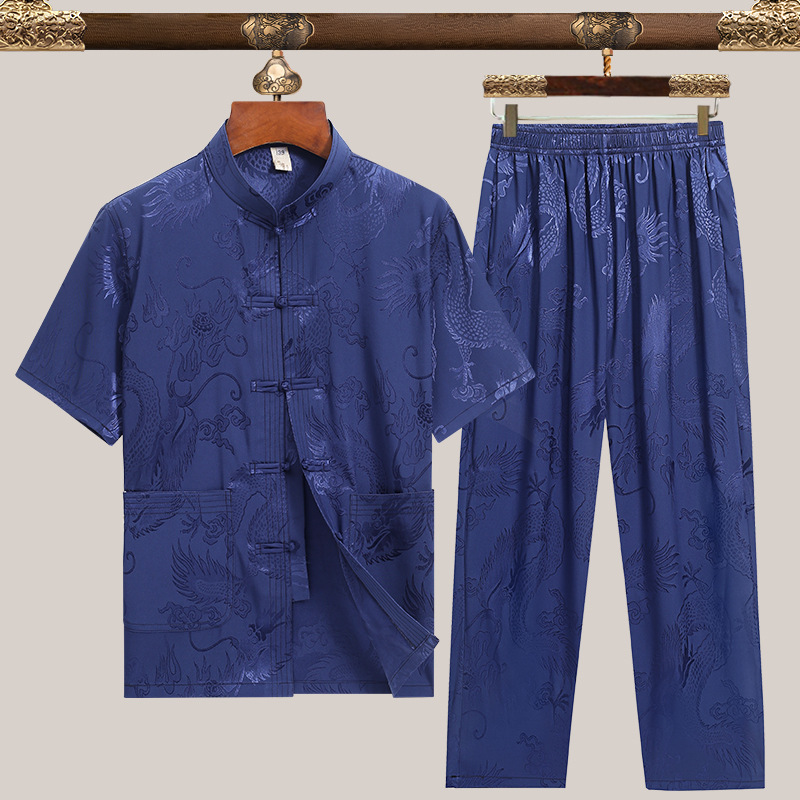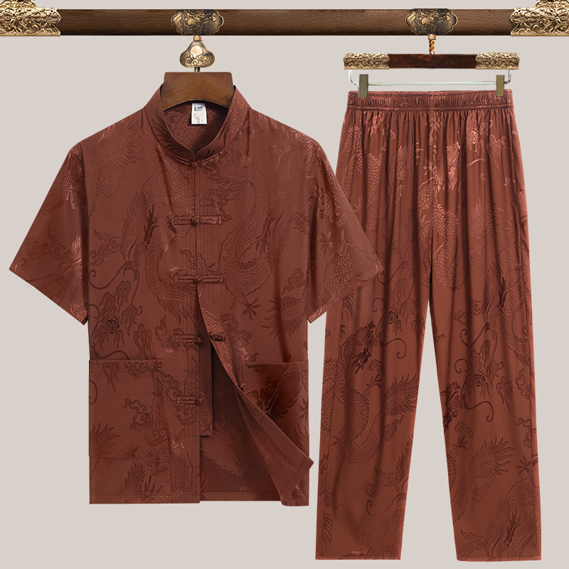 Мужская одежда в стиле тан для мужчин среднего и старшего возраста, короткий рукав, этнический стиль, костюмы из хлопка и льна, летние рубашки для пап, китайский стиль