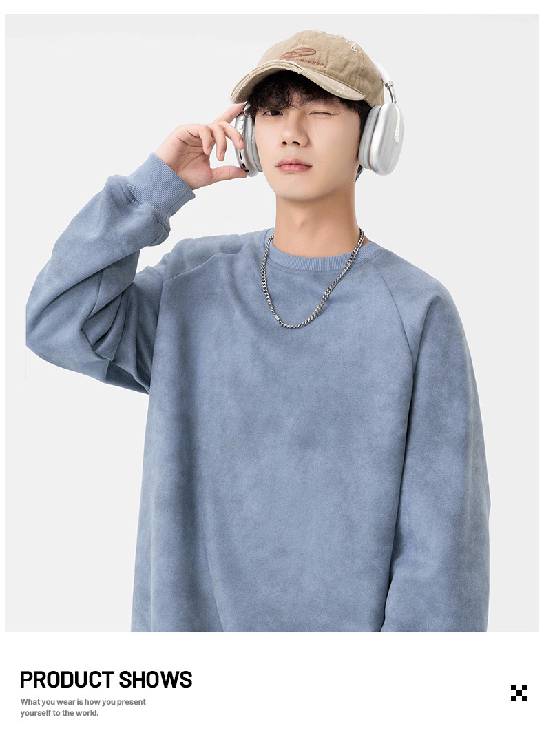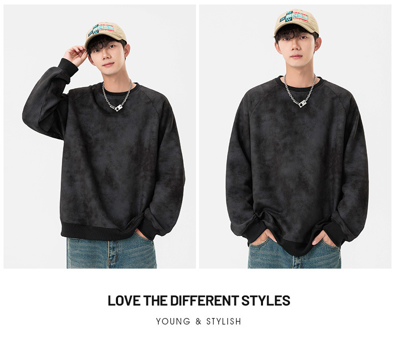 Бесплатная доставка Черный свитер мальчик 2024 новый круглый воротник весна прилив бренд замша без шапки тонкий