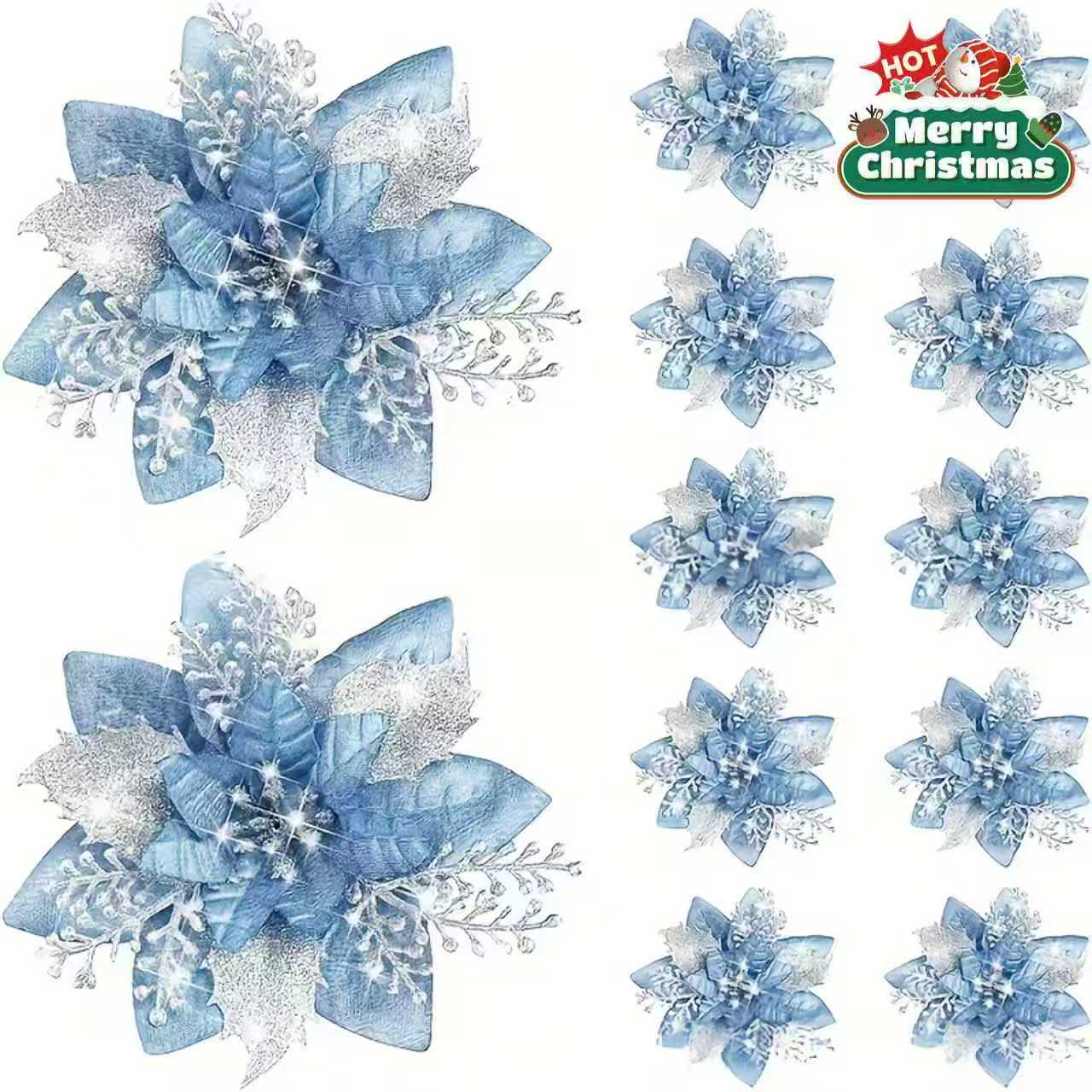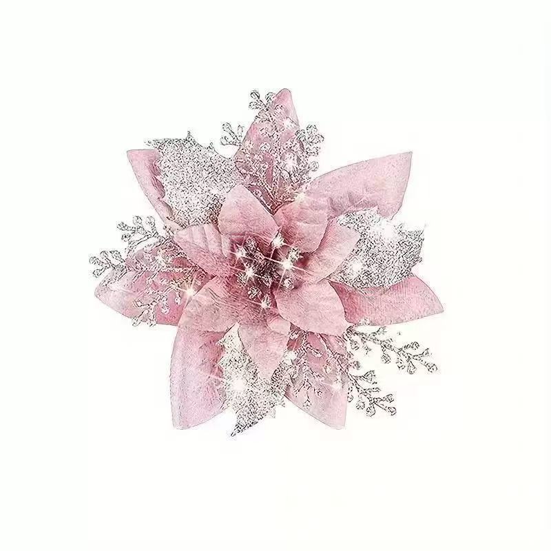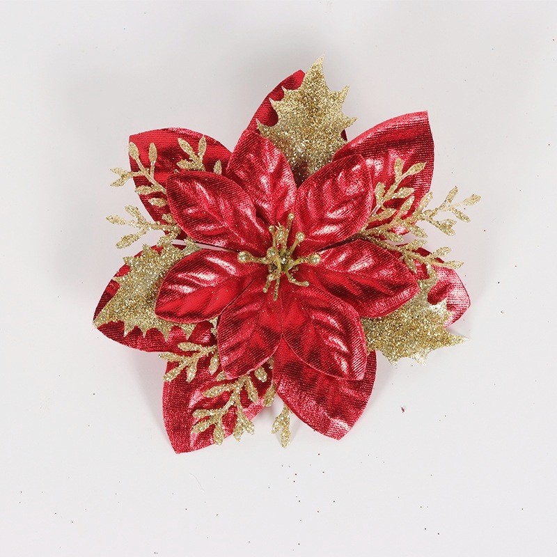 Золотые пудры рождественские цветы Рождественская елка украшения аксессуары Рождественский венок украшения Рождественская декоративная цветочная головка поддельные цветы оптом
