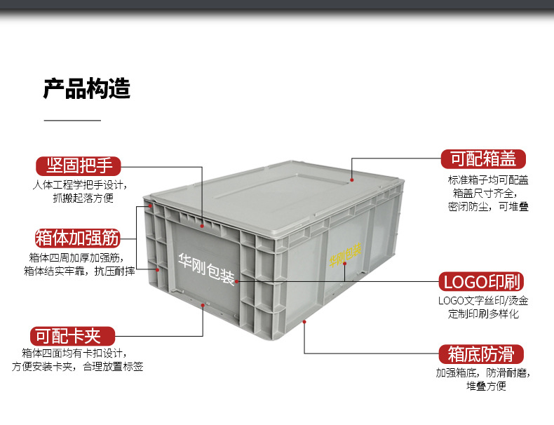 Коробка для перевозки грузов ЕС с крышкой, пластиковая коробка, большая коробка, коробка для автозапчастей Toyota, штабелируемая логистическая коробка ЕС с наклонным вкладышем, утолщенная версия.