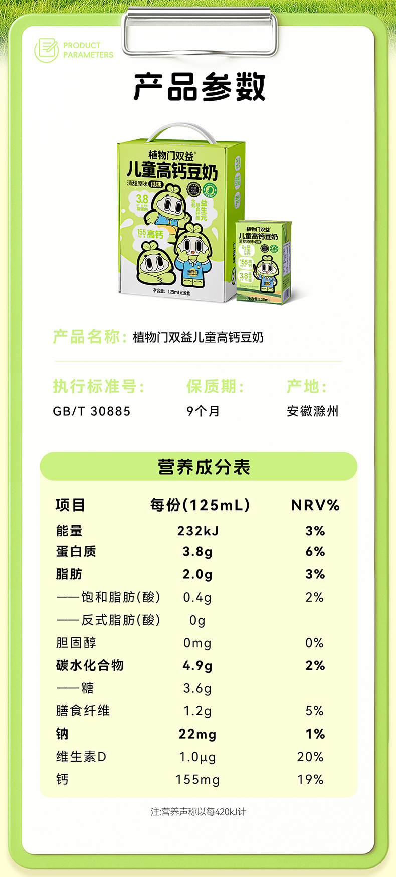 Вода, северо-восточные соевые бобы (не ГМО), сахар белый, карбонат кальция, олигосахариды, витамин D.