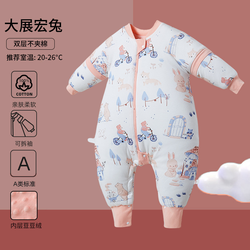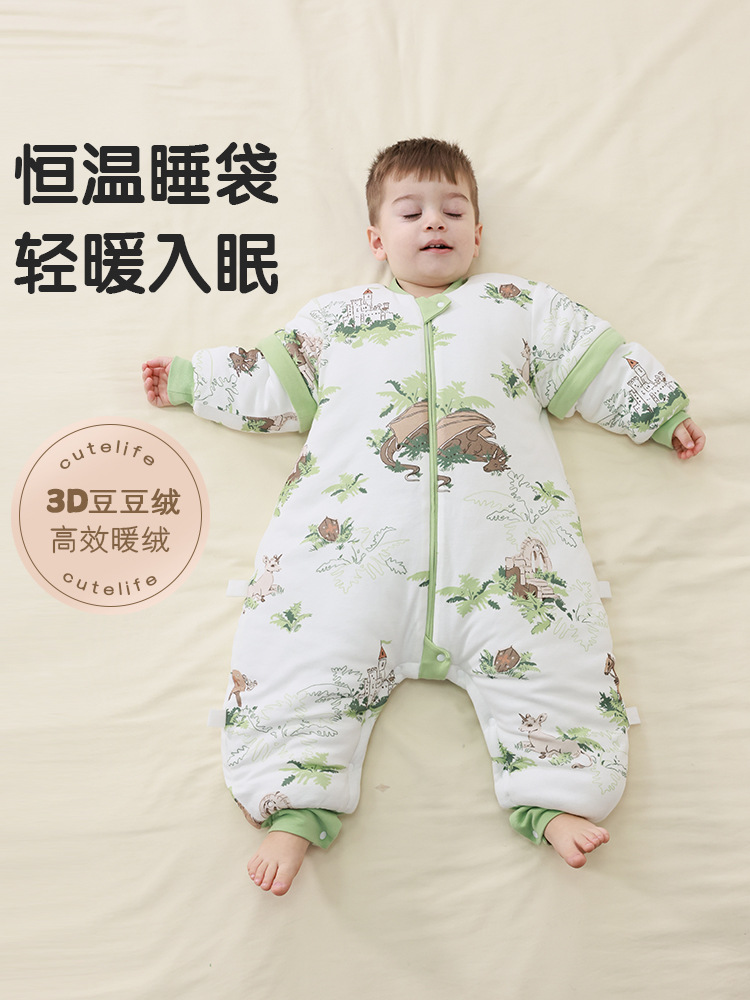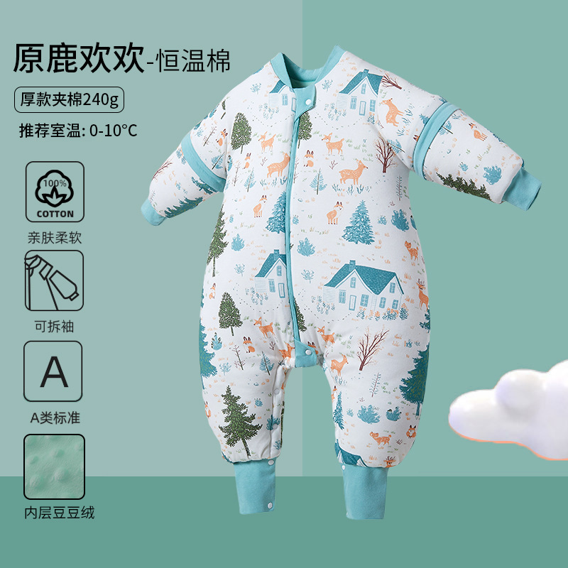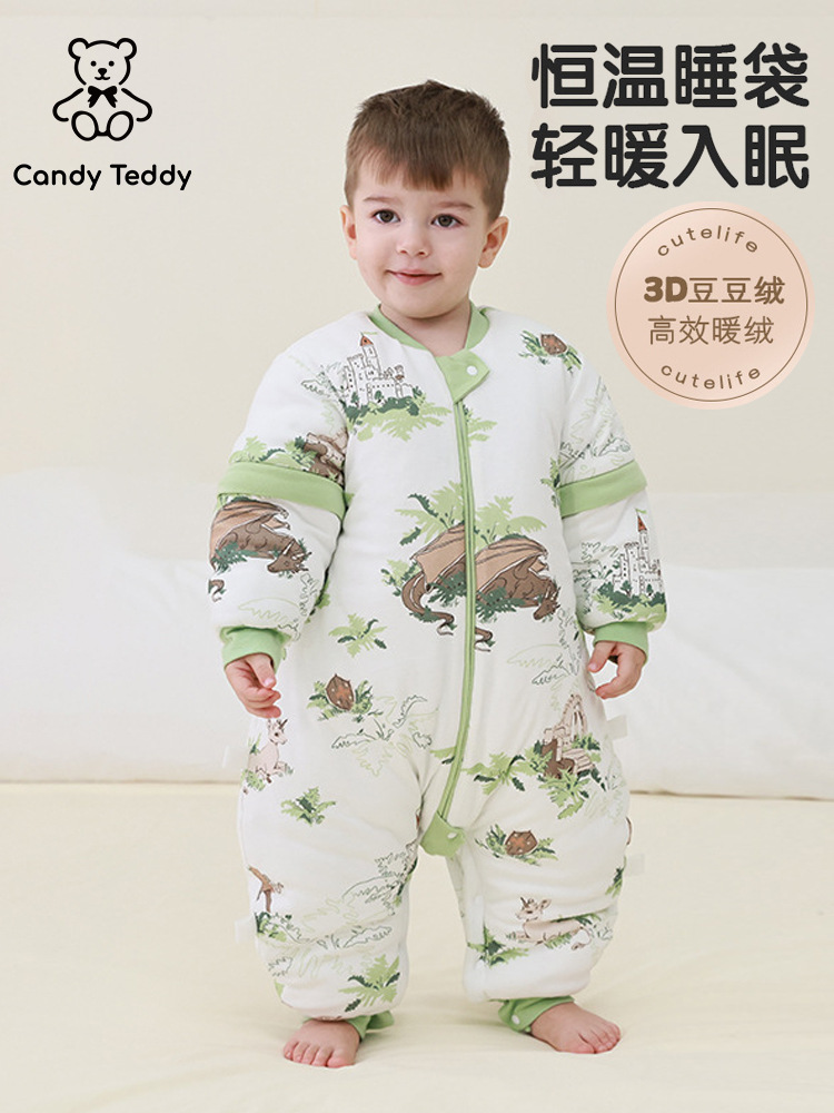 Детский одеяло-кокон Candy Teddy из чистого хлопка для осени и зимы, с раздельными ножками, утолщенный стеганый детский спальный мешок типа A с поддержанием постоянной температуры