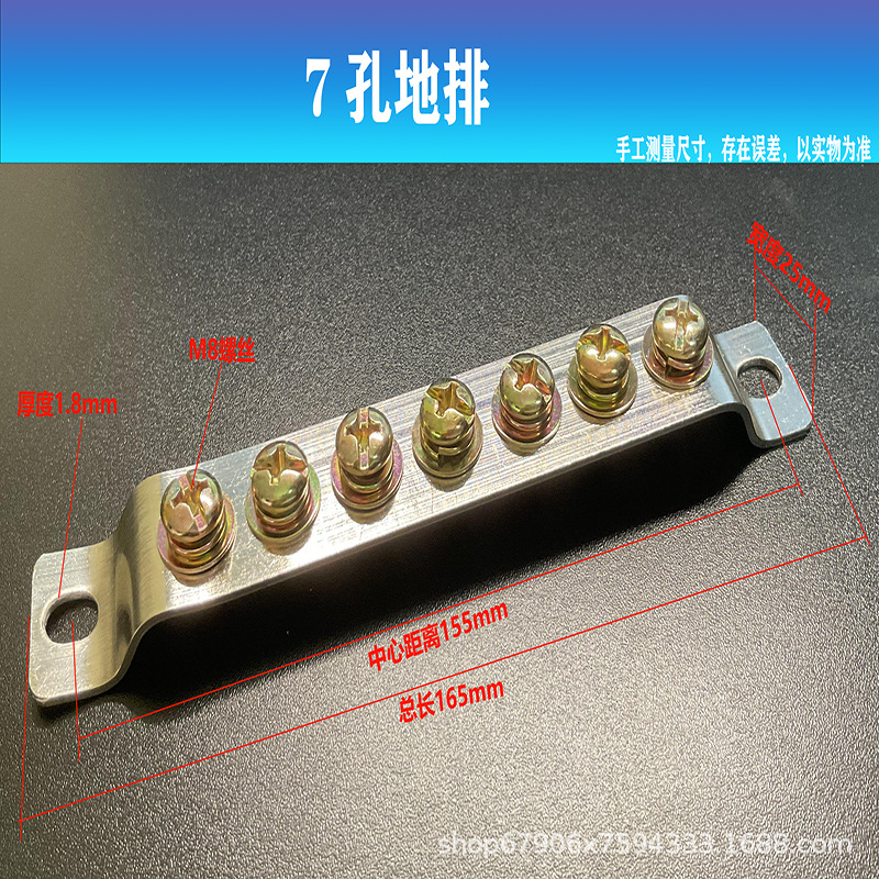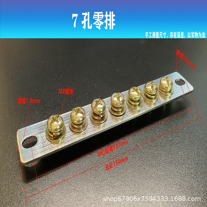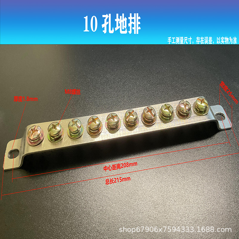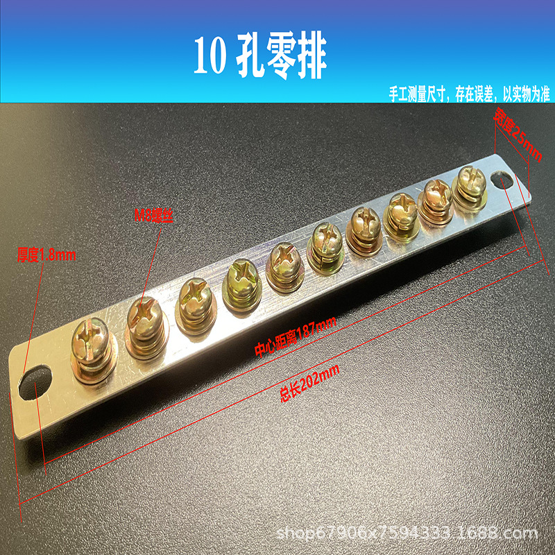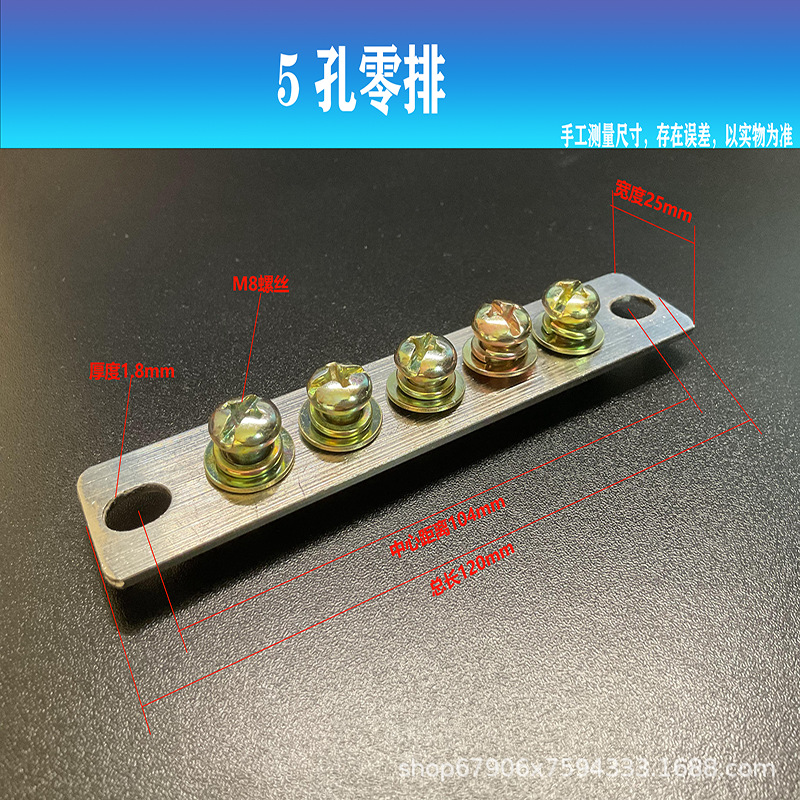 Клеммная колодка для нейтрального заземления 2x25 из чистой меди с никелированным покрытием, 5/7/10 отверстий