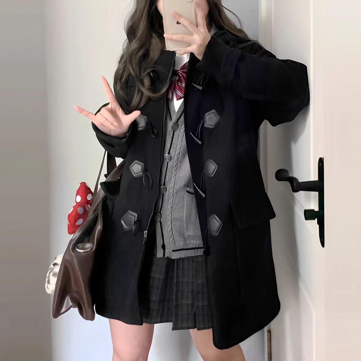 (Модернизация хлопка) Униформа после школы/Университет Линлан/jk роговая пуговица шерстяное пальто осеннее зимнее пальто