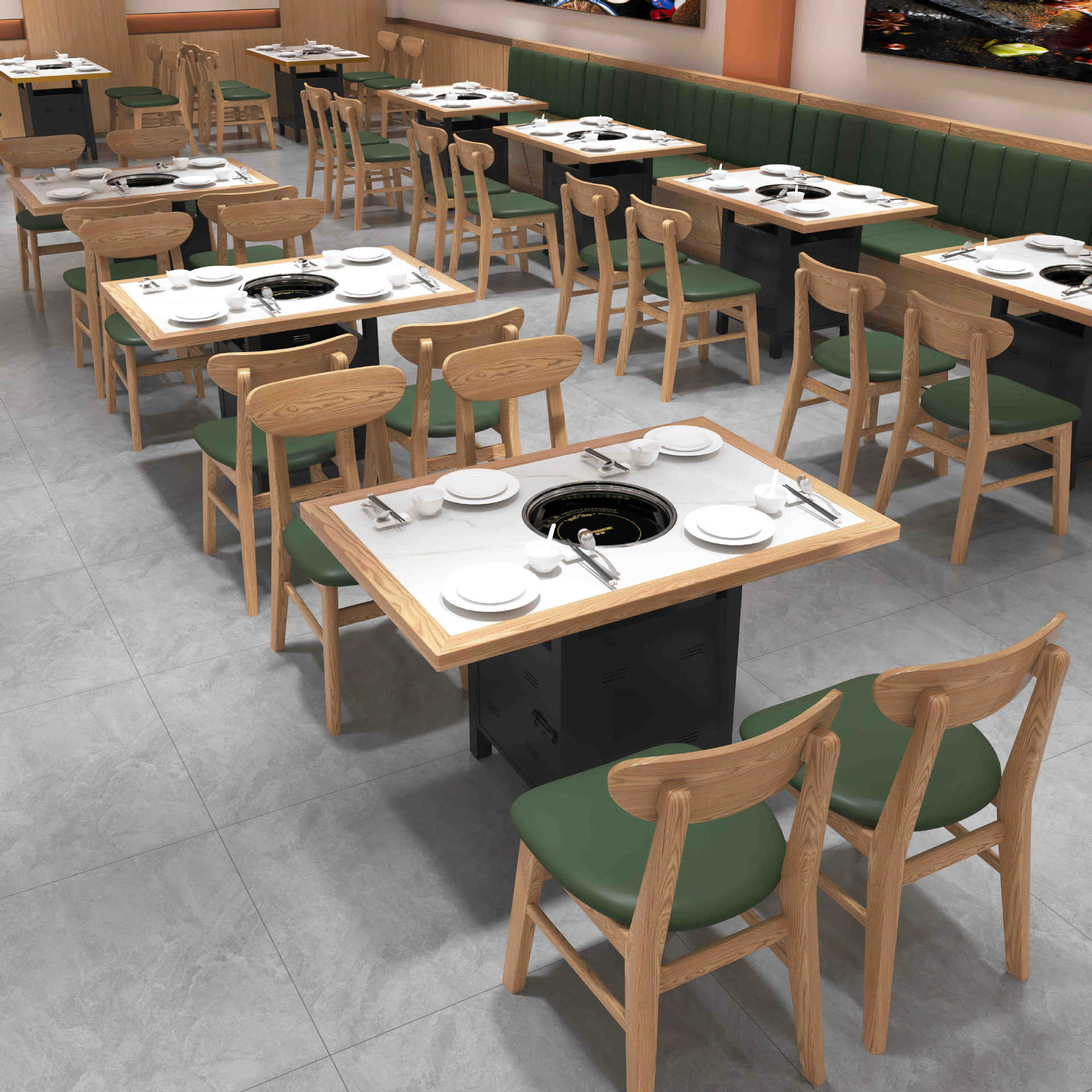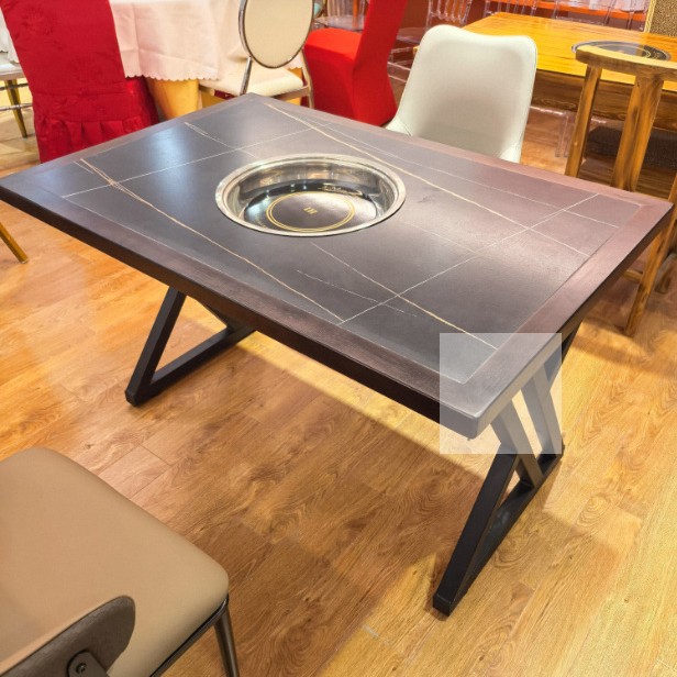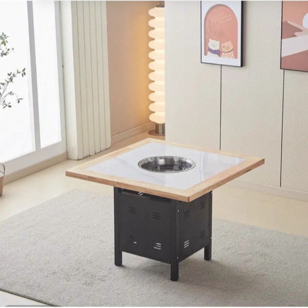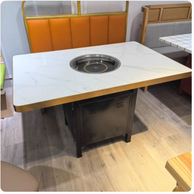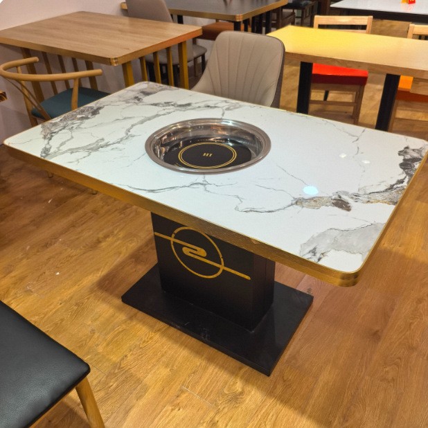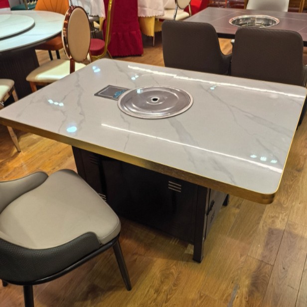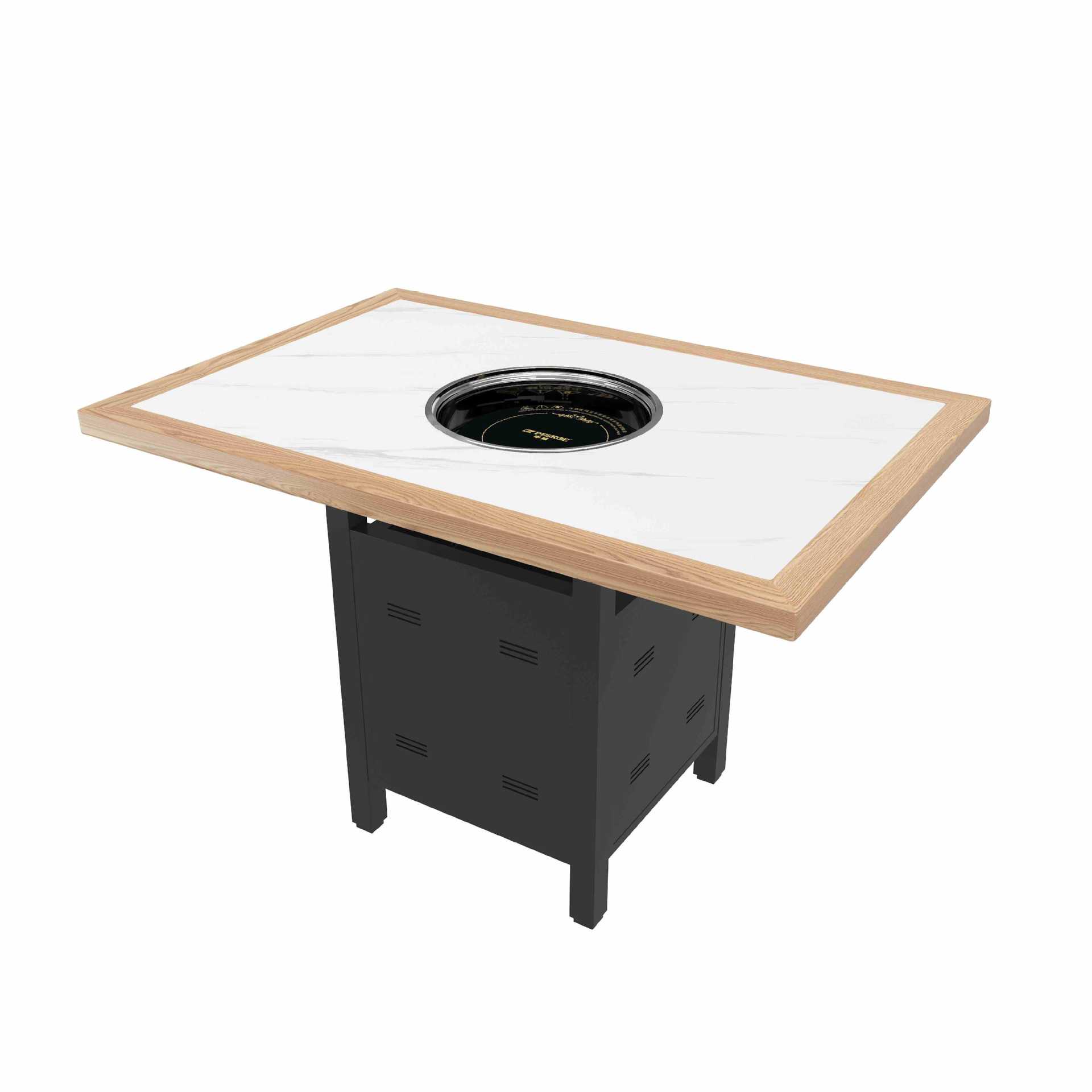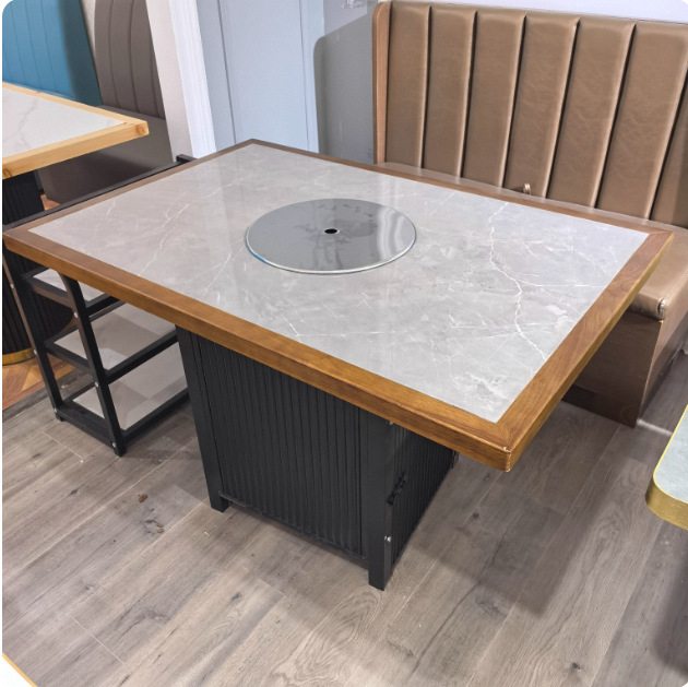 Стол для горячего горшка из цельного дерева, индукционная плита, встроенный стол для барбекю, держатель для карт, диван, обеденный стол и стул, комбинированный коммерческий обеденный стол