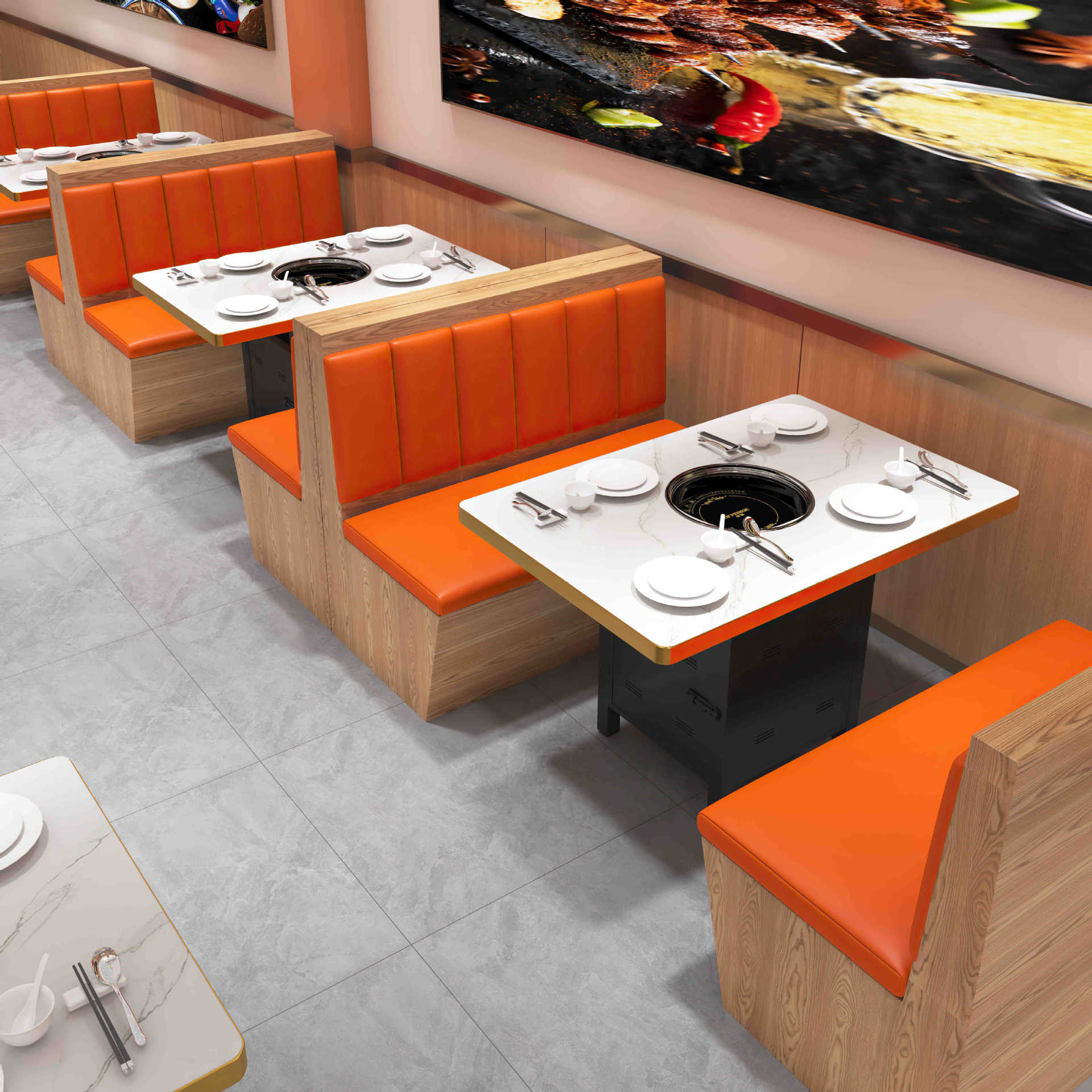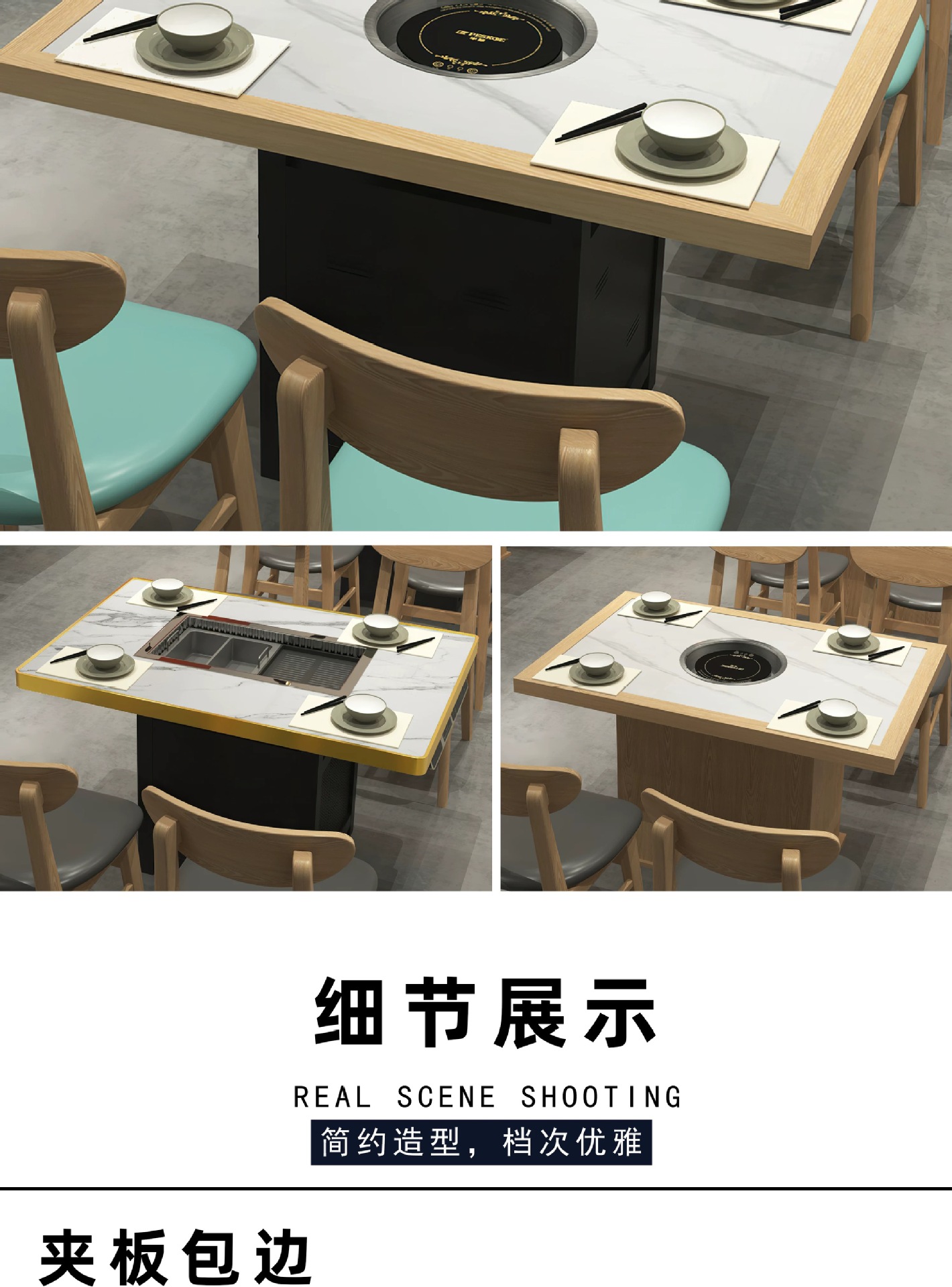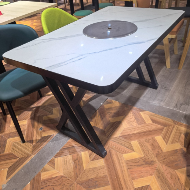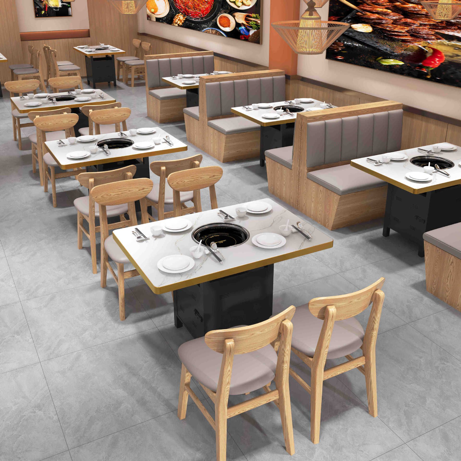 Стол для горячего горшка из цельного дерева, индукционная плита, встроенный стол для барбекю, держатель для карт, диван, обеденный стол и стул, комбинированный коммерческий обеденный стол