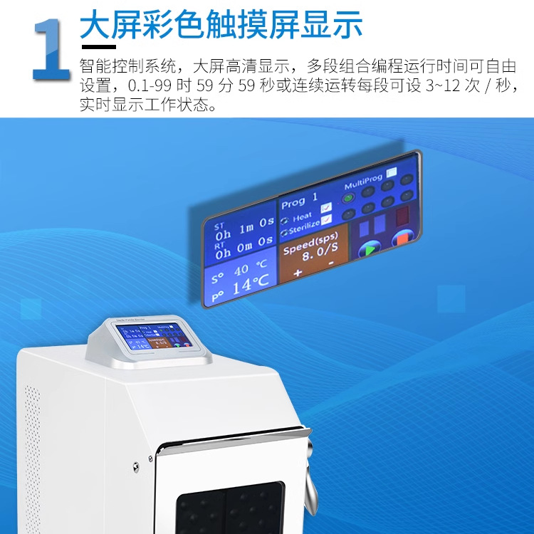 ● 均质柔和、样品无污染、无损伤、不升温、不需要灭菌处理,不需洗刷器皿;