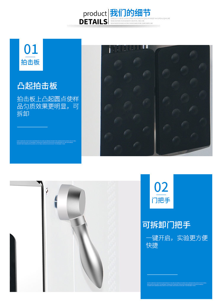 ● 拍打式均质器又称无菌均质器,可以从固体样品中直接提取细菌。只需将原始样品(大的需要剪成约10×10mm块状)和稀释液加入到无菌的样品袋中,然后将样品袋放入拍击式均质器中,经过叶片的拍打锤击产生压力、引起振荡、加速混合、从而达到溶液中微生物成分处于均匀分布状态,即可完成样品的处理。有效地分离被包含在固体样品内部和表面的微生物均一样品,确保无菌袋中混合全部的样品。均质后样品可作为代表原本,进行后续分析,没有样品的变化和交叉污染的危险。使用一次性无菌均质滤袋隔离操作,保证卫生和安全,不与仪器接触,无样品泄露而不需进行系统清洗,具有方便快速、结果准确、均质柔和、样品污染小、无损伤、不升温、不需灭菌处理,不需洗刷器皿的特点,重复性好的要求。