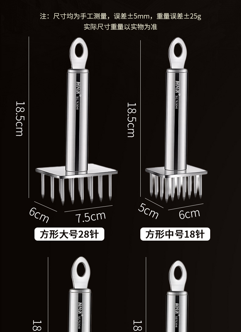 12-игольная квадратная сосновая игла; 18-игольная квадратная игла для фарша; 28-игольная квадратная игла для фарша; 23 иглы круглые иглы для мяса