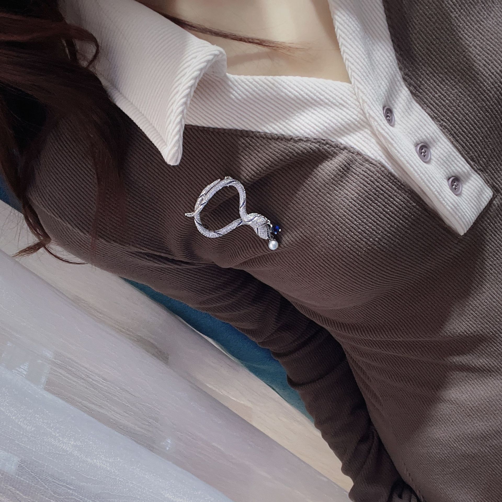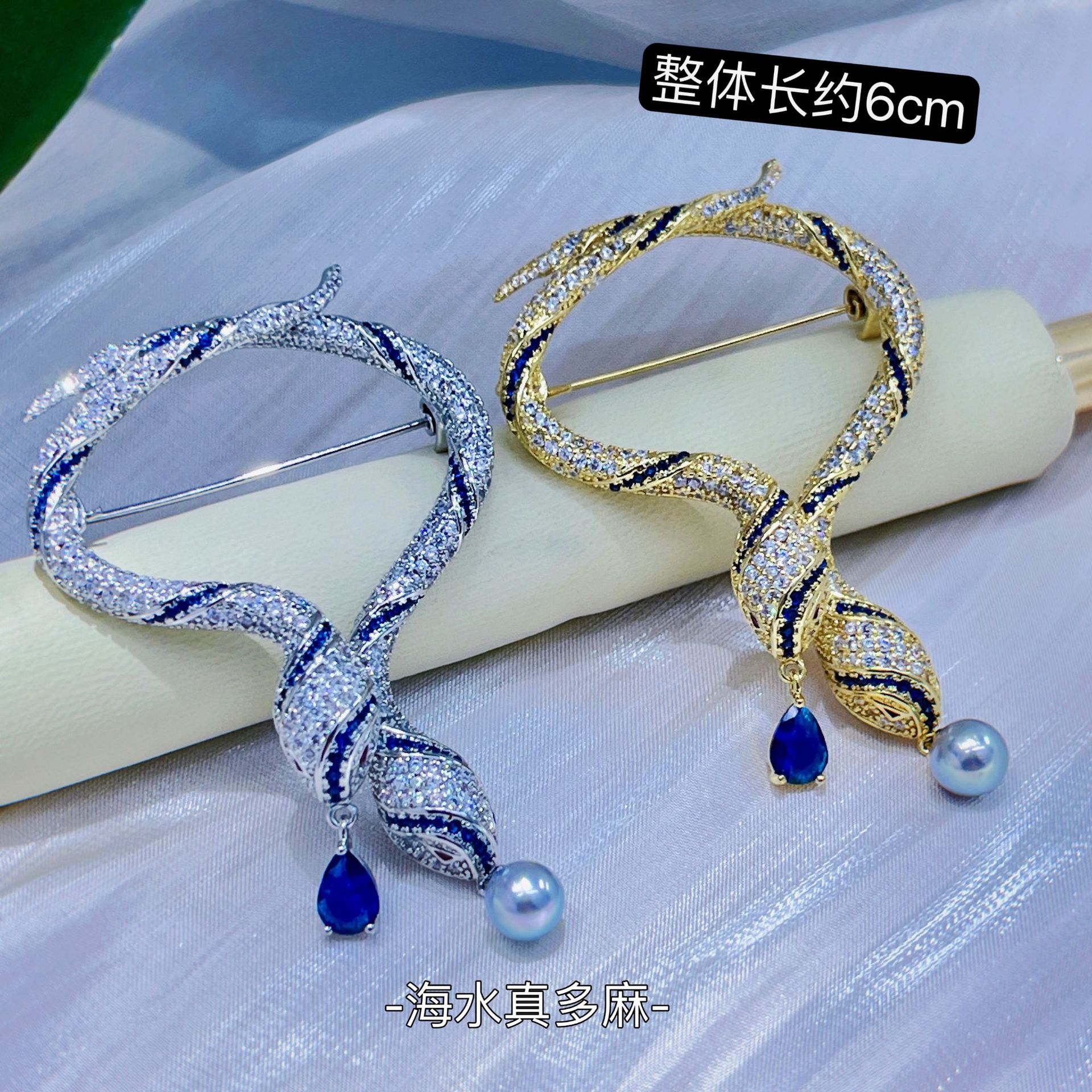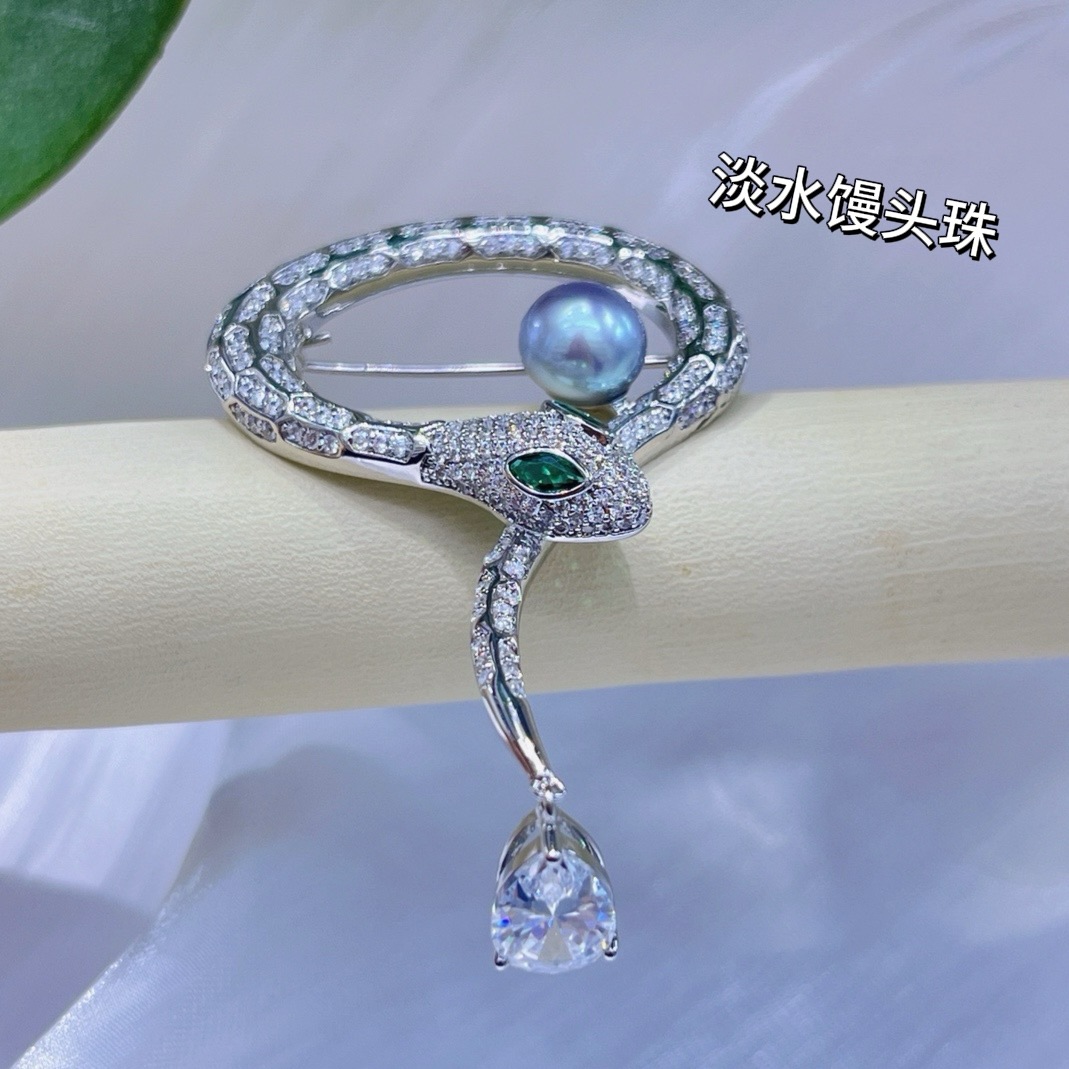 Серебряная двухголовая змея*Брошь с жемчугом Чжэньмо в морской воде; Золотая двухголовая змея*Брошь с настоящим конопляным жемчугом в морской воде; Серебряное кольцо в виде змеи* Брошь с пресноводным жемчугом Маньтоу