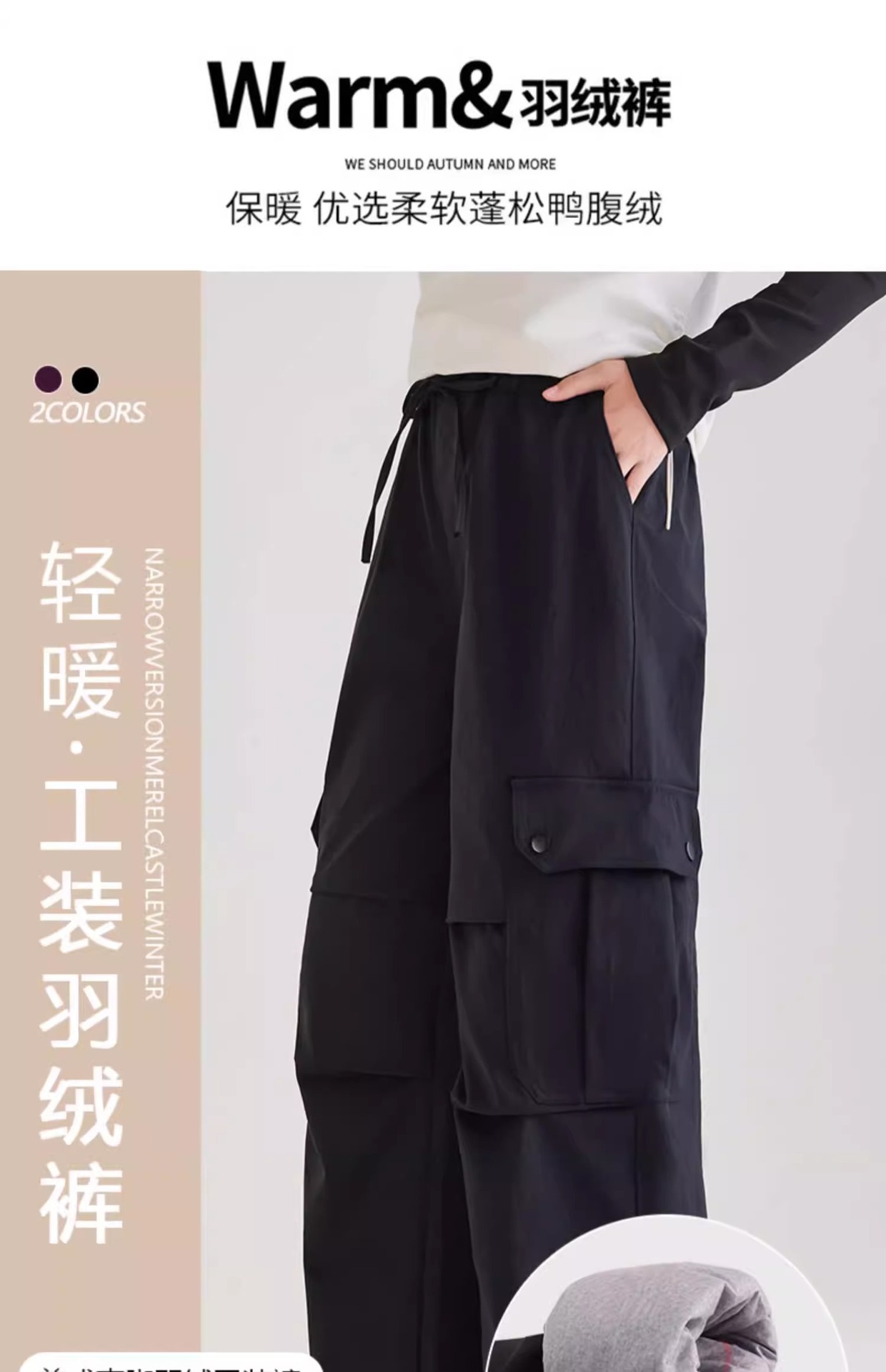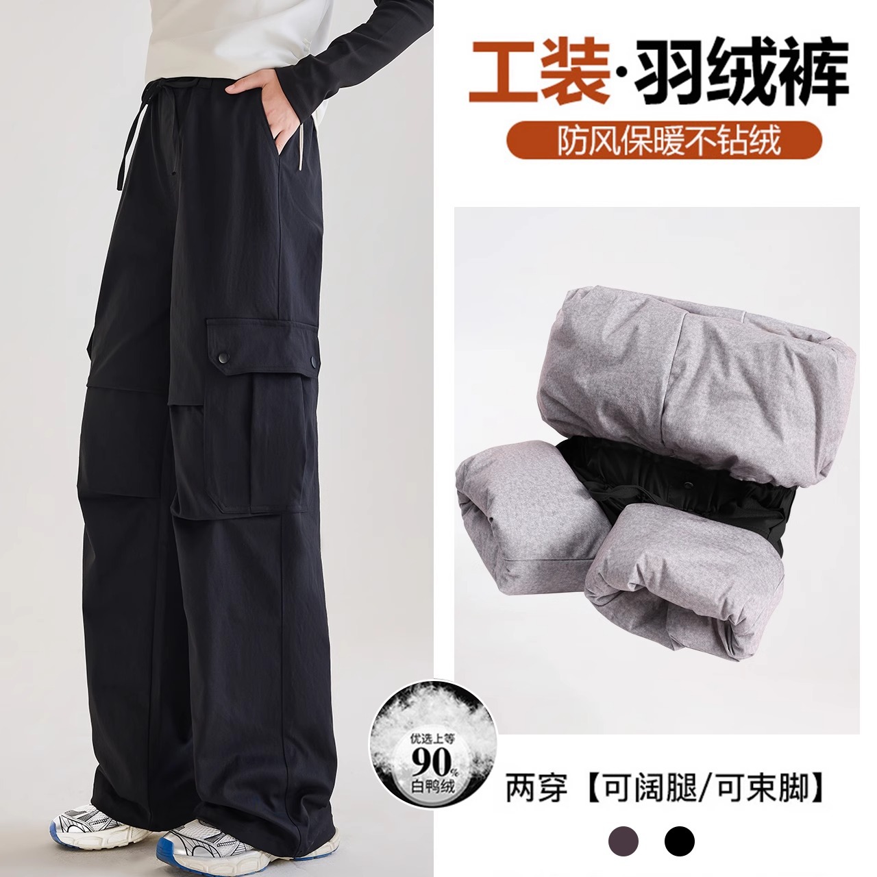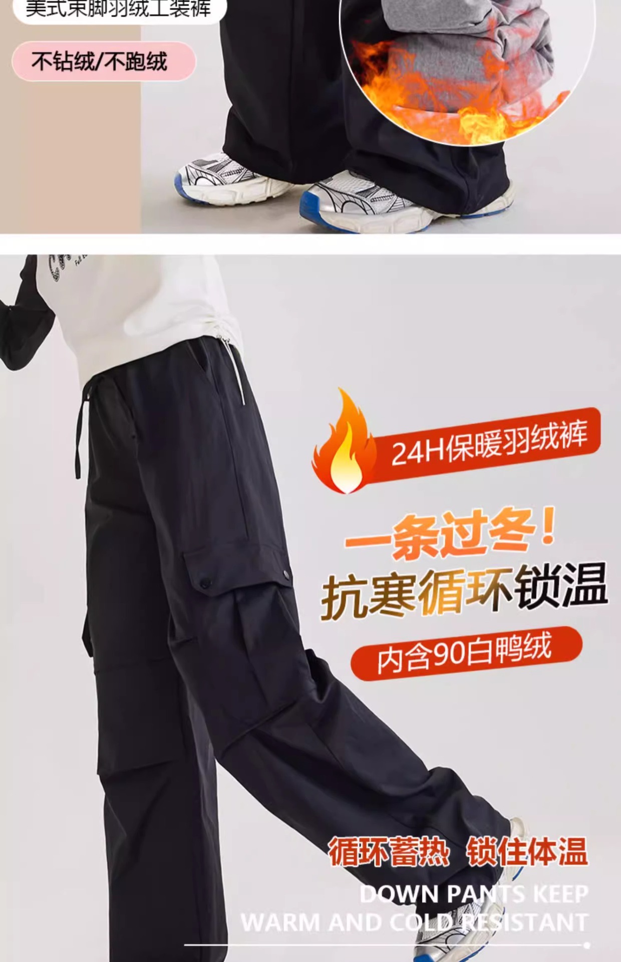 Зимние утепленные брюки-карго для девочек 2025 года, новые, теплые, для старших девочек, учащихся средней школы, повседневные брюки из белого утиного пуха