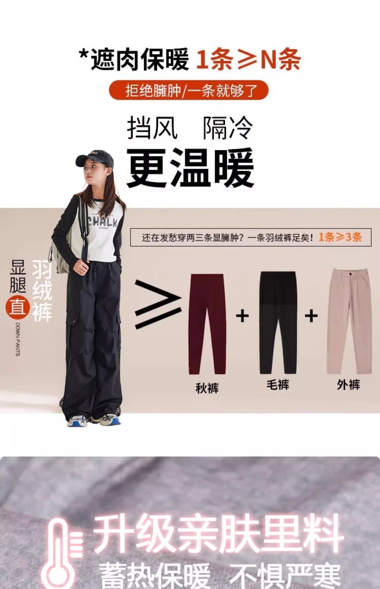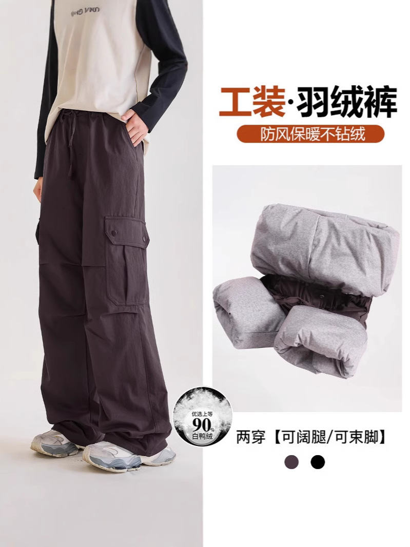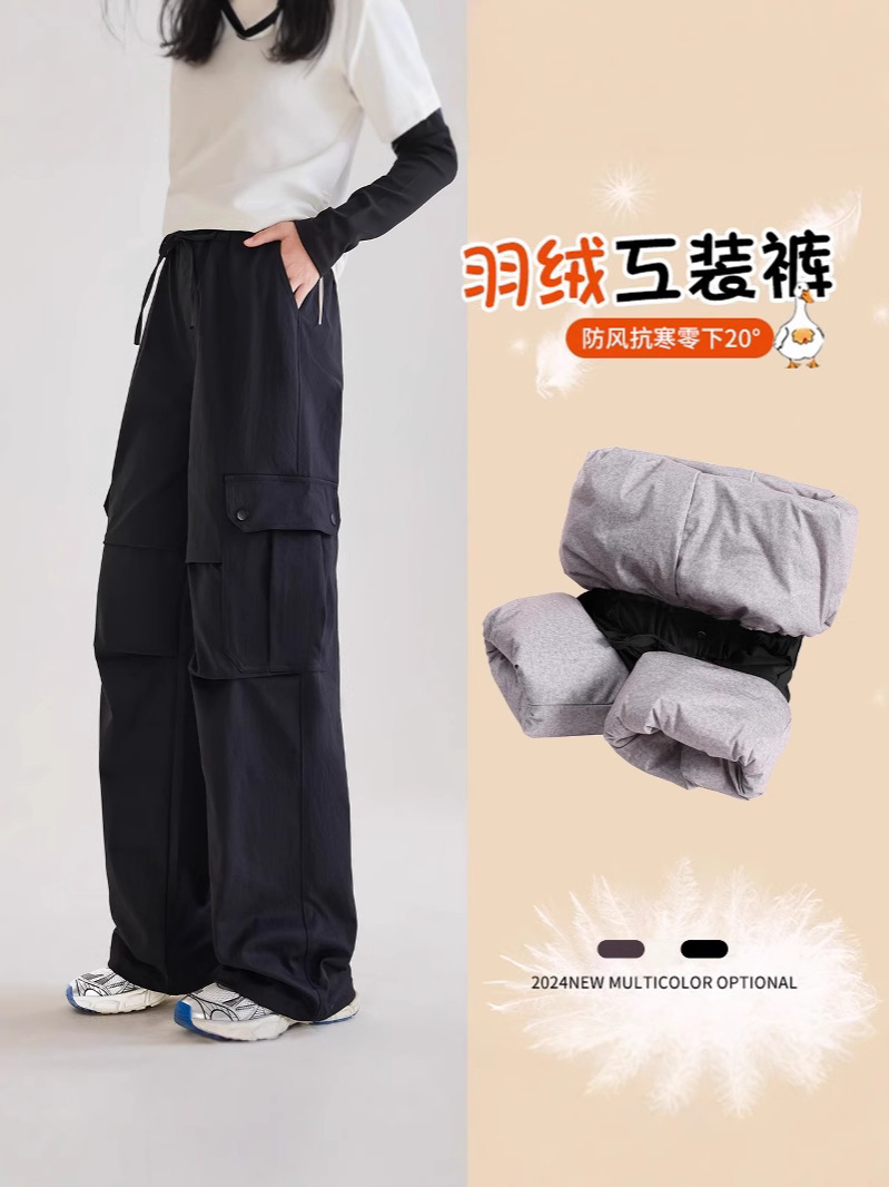 Зимние утепленные брюки-карго для девочек 2025 года, новые, теплые, для старших девочек, учащихся средней школы, повседневные брюки из белого утиного пуха