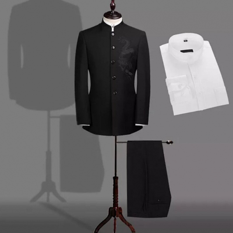 Черный воротник-стойка с одним верхом; Черный топ с вышивкой дракона; Черный костюм с воротником-стойкой (топ + брюки); Черный костюм с вышивкой дракона (топ + брюки); Комплект из трех предметов с черным воротником-стойкой (топ + брюки + рубашка); Комплект из трех предметов с вышивкой черного дракона (топ + брюки + рубашка)
