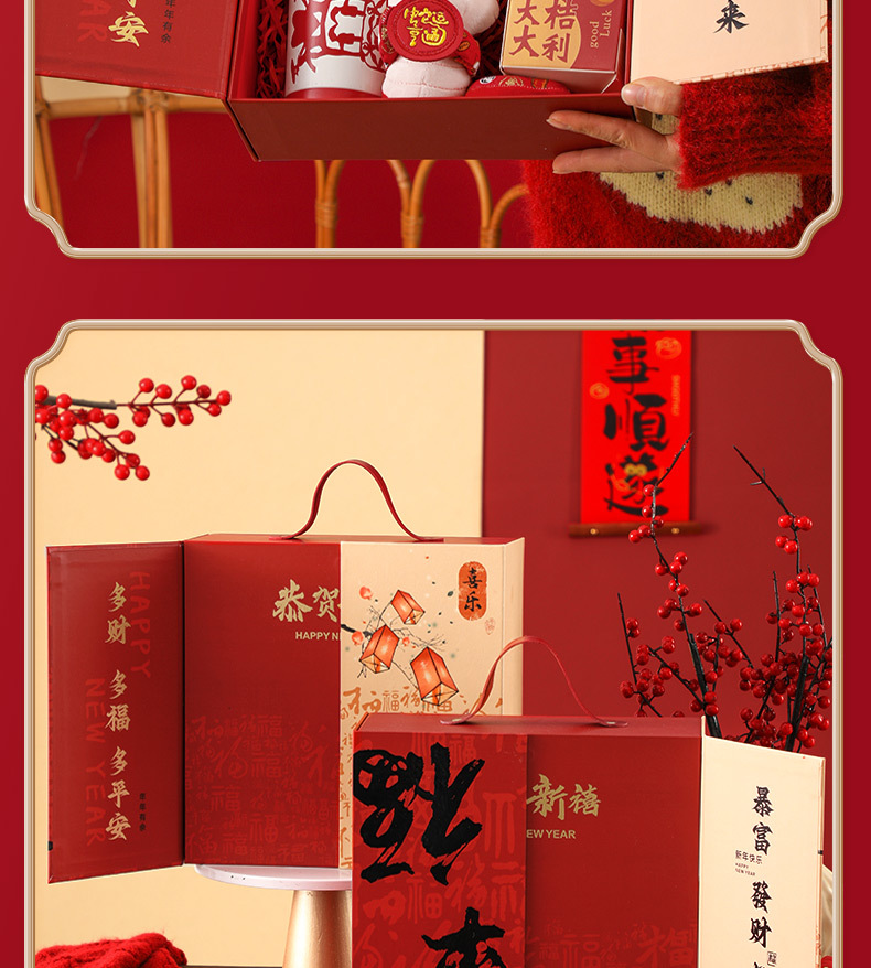Подарочный набор «Новый год Лошади», красная новогодняя подарочная коробка, подарочная коробка премиум-класса для Праздника Весны, оптовая продажа подарочных коробок для корпоративных мероприятий