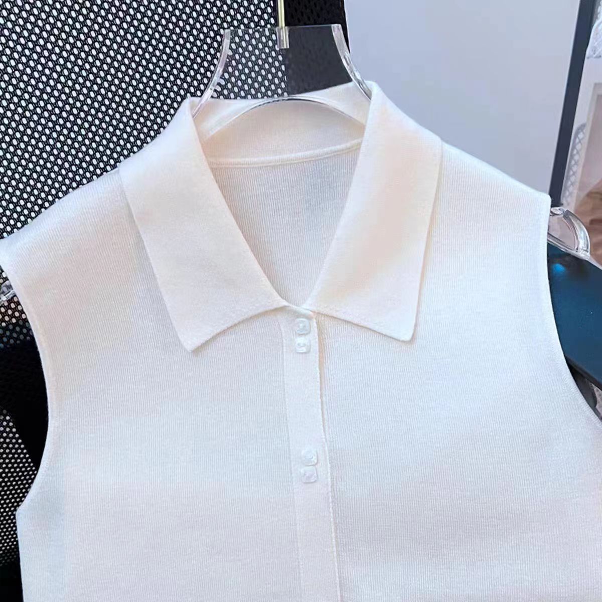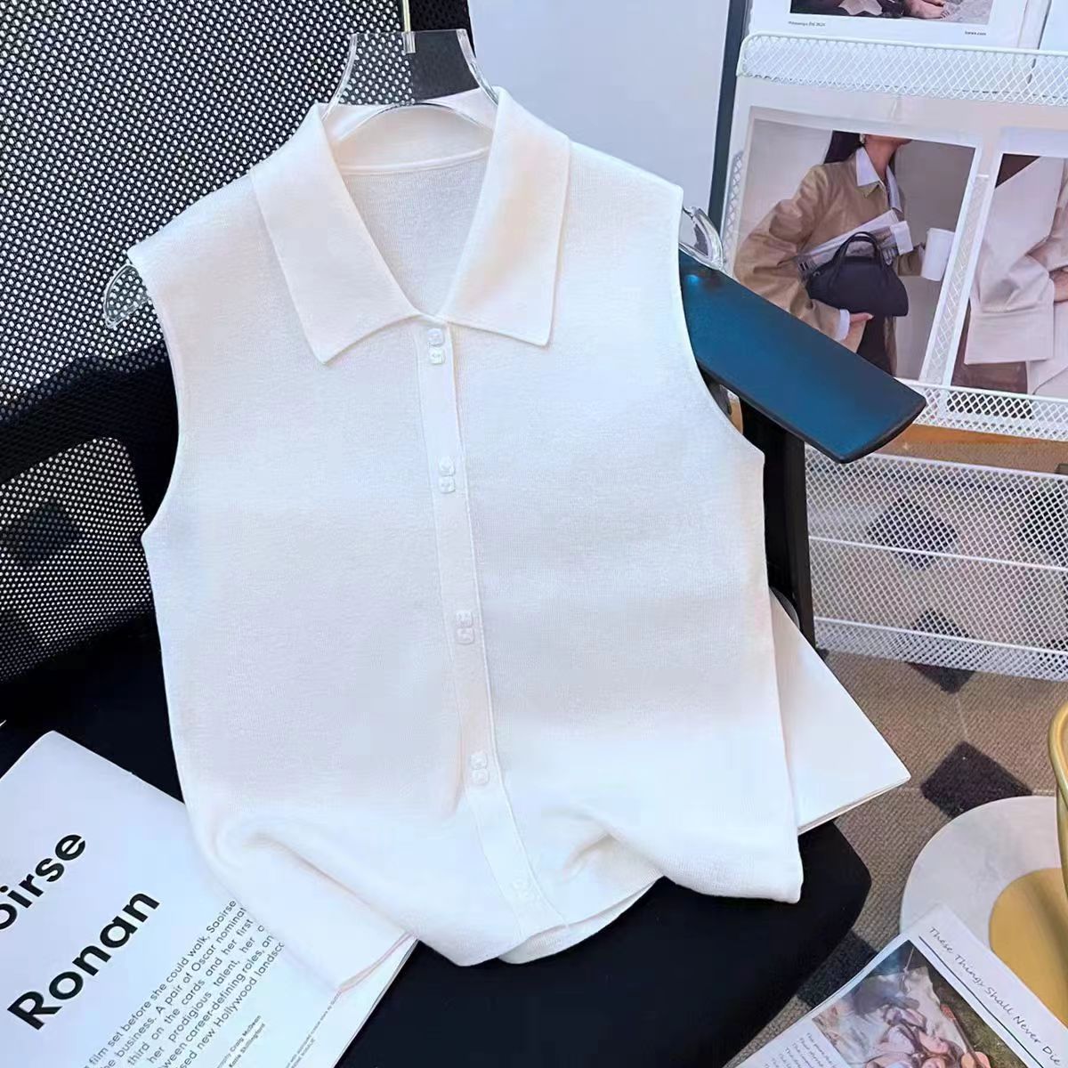 Многослойный компаньон: простой и универсальный новый вязаный базовый жилет без рукавов с отложным воротником.
