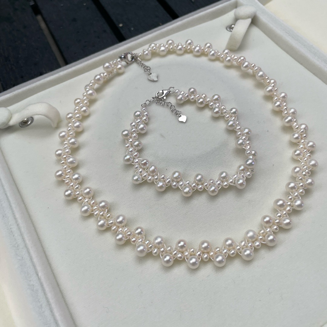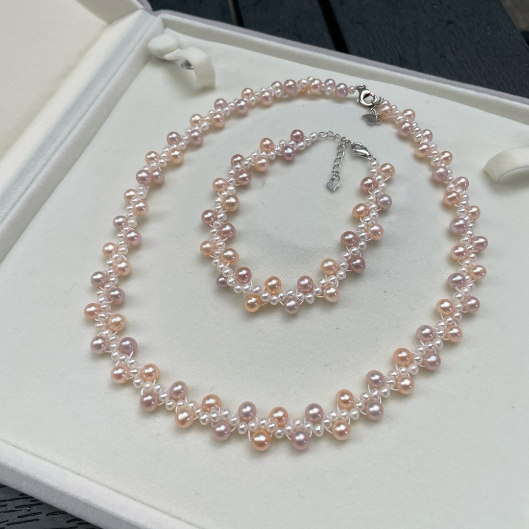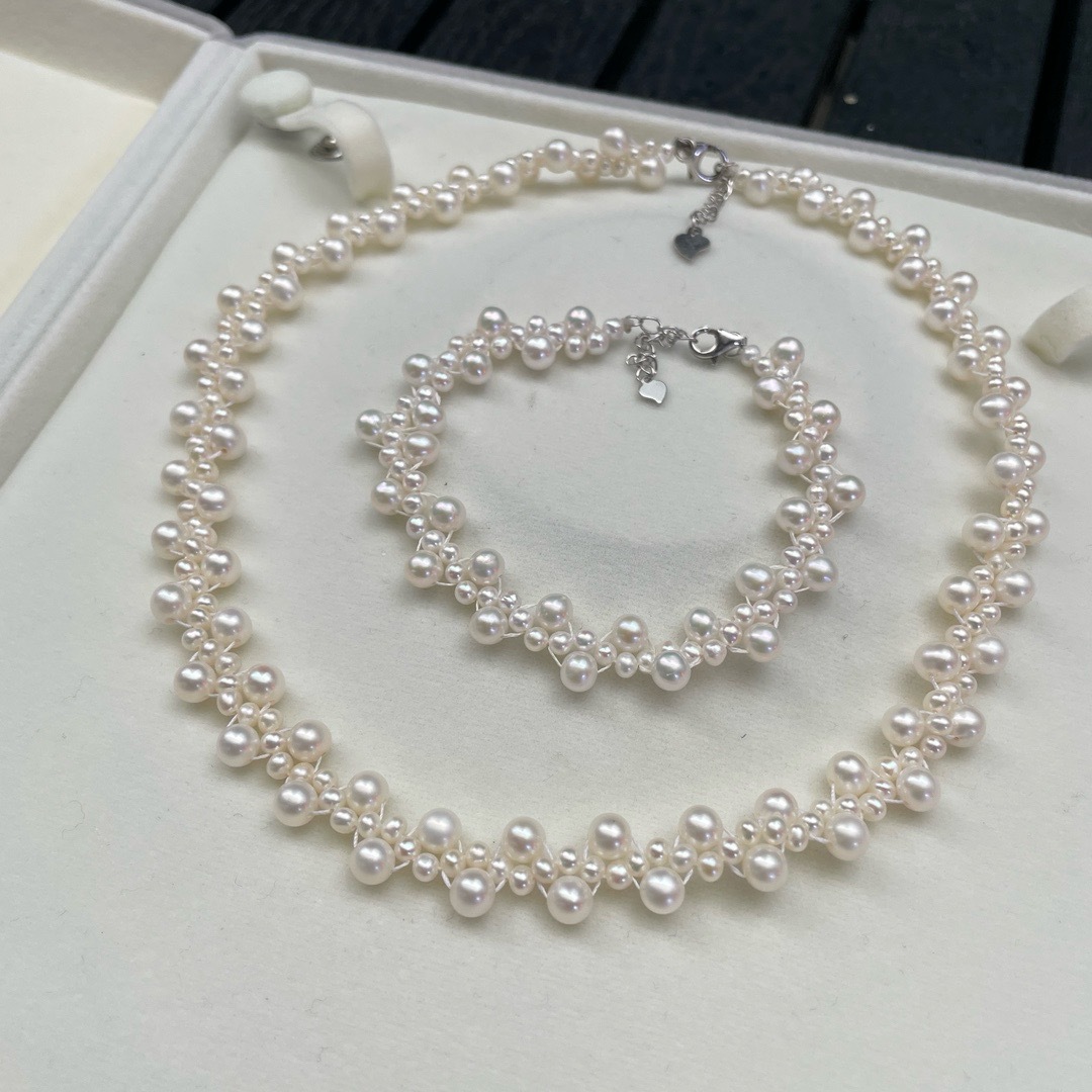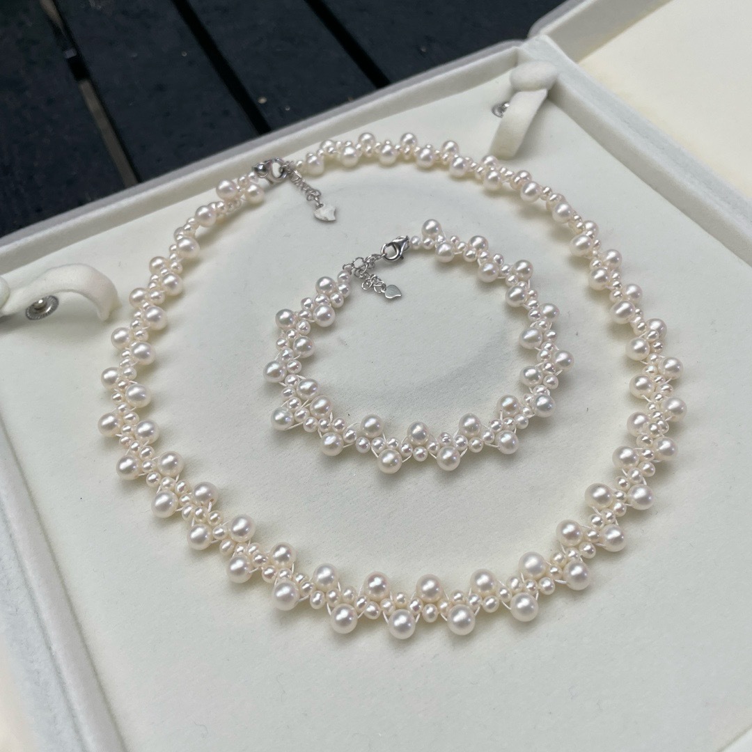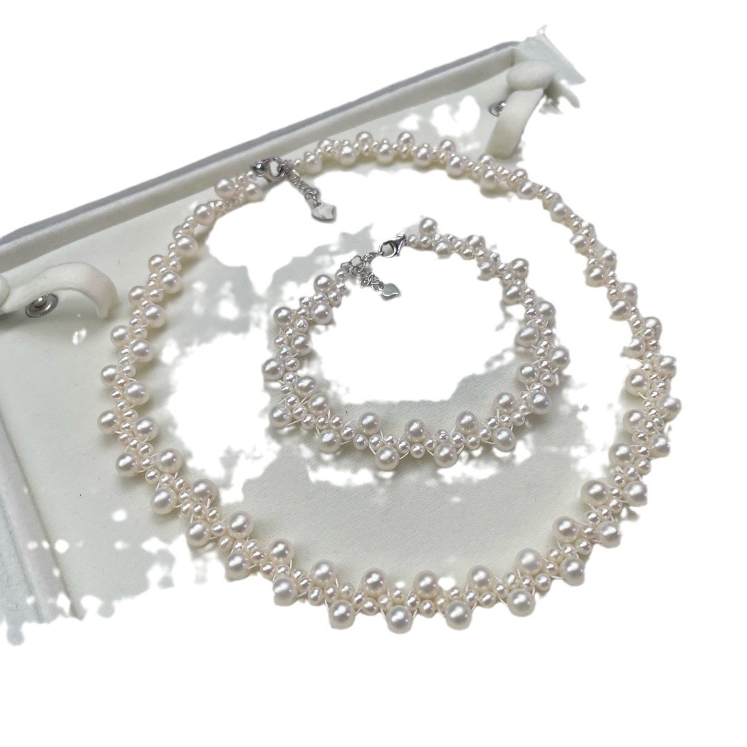Свежая пресноводная жемчужная шея цепи 3-5MM сильный свет пресноводный жемчуг тяжелая промышленность необычное кружево натуральный жемчуг плетение