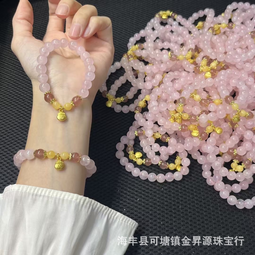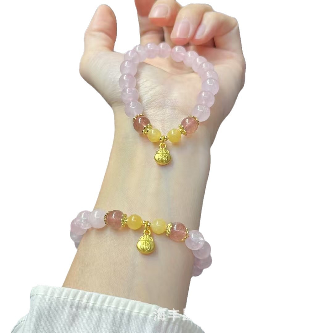 天然粉晶手链搭配草莓晶黄玉手串福字吊坠粉水晶原创设计批发直播 批发量越大价格越低,可供直播间长期合作,欢迎来电私聊
