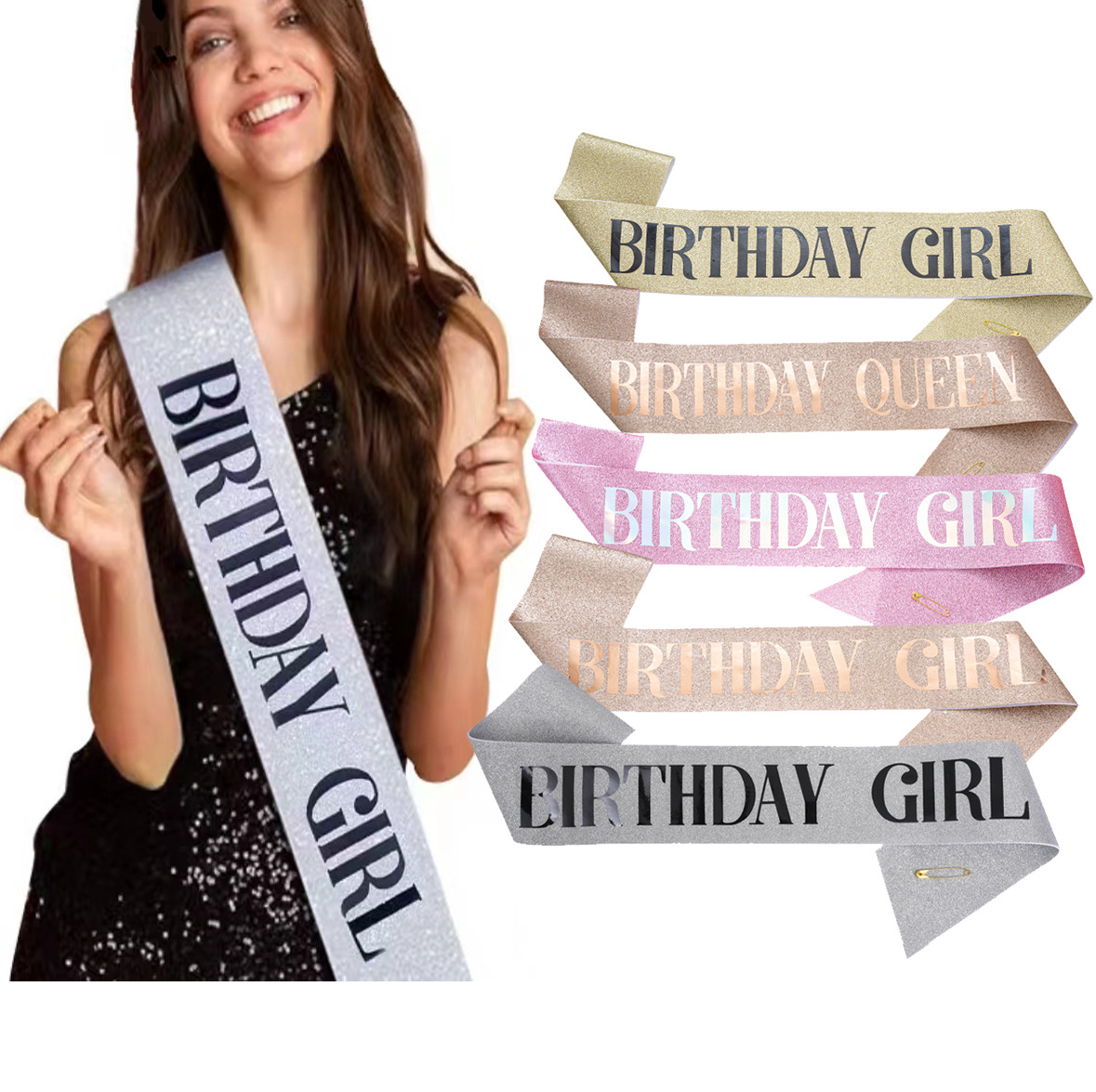 Праздничный пояс-бант для дня рождения с блестками и надписью «BIRTHDAY GIRL QUEEN»