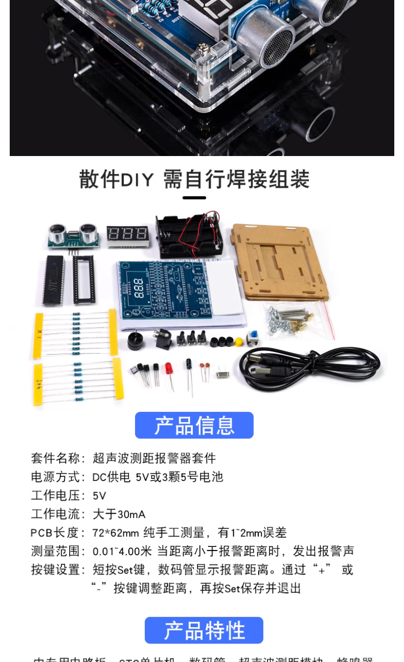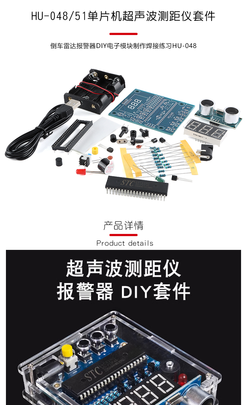 51 однокристальных машин Ультразвуковой дальномер комплект реверсивный радар сигнализации DIY электронный модуль сварки