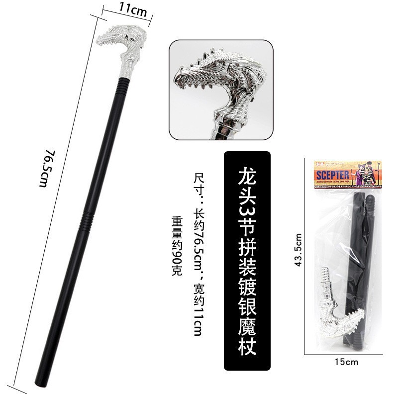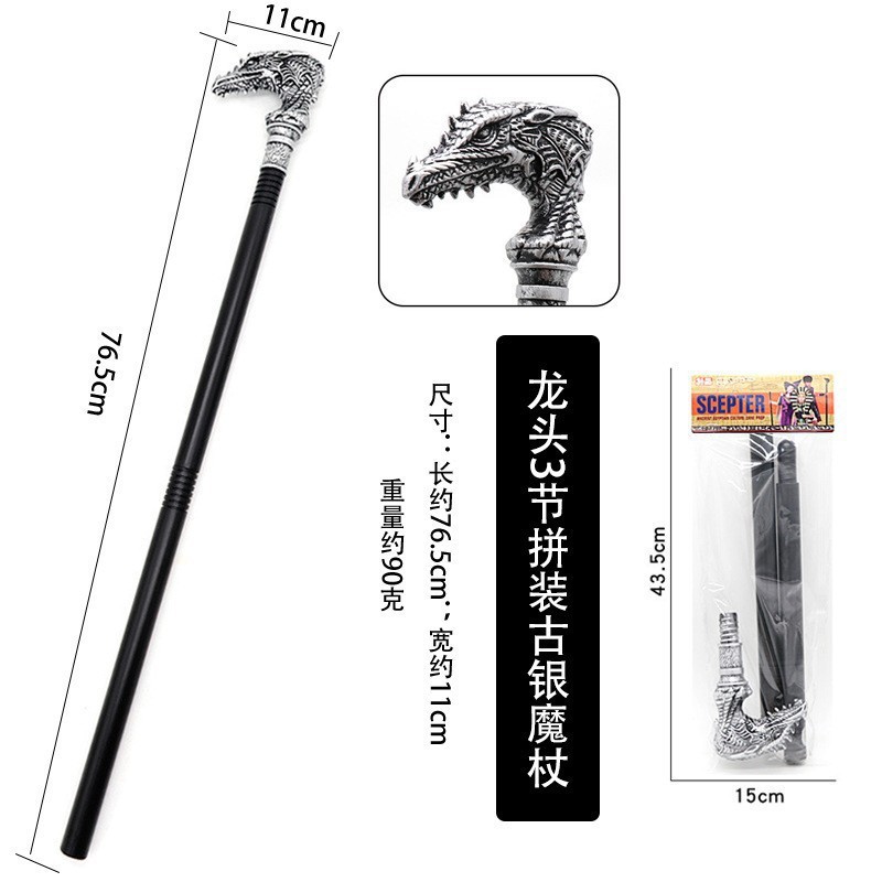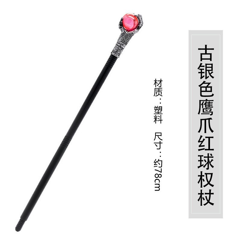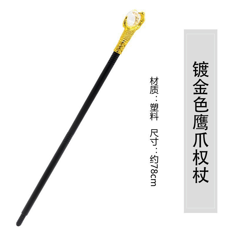 Позолоченный скипетр со змеиной головкой, длина около 82 см и вес 100 г.; Бронзовый скипетр со змеиной головкой, длина около 82 см и вес 100 г.; Посеребренный скипетр со змеиной головкой, длина около 82 см и вес 100 г.; Позолоченный королевский скипетр с круглой головкой, длина около 81см, вес около 100г.; Посеребренный королевский скипетр с круглой головкой, длина около 81см, вес около 100г.; Бронзовый скипетр с круглой головкой, длина около 81 см, вес около 100 г.; Позолоченный череп, длина около 75 см и вес 100 г.; Посеребренный череп, длина около 75 см и вес 100 г.; Древний серебряный скипетр с черепом длиной около 75 см и весом 100 г.; Позолоченный смеситель, длина около 76,5 см и вес 90 г.; Посеребренный смеситель, длина около 76,5 см и вес 90 г.; Древний серебряный смеситель, длина около 76,5 см и вес 90 г.; Бронзовый смеситель, длина около 76,5 см и вес 90 г.; Позолоченный скипетр с головой льва, длина около 76,5 см и вес 90 г.; Посеребренный скипетр с головой льва, длина около 76,5 см и вес 90 г.; Древний серебряный скипетр с головой льва, длина около 76,5 см и вес 90 г.; Бронзовый скипетр с головой льва имеет длину около 76,5 см и весит около 90 г.; Позолоченный прозрачный шариковый скипетр с орлиным когтем, длина около 78 см.; Прозрачный шариковый скипетр с бронзовым орлиным когтем, длина около 78 см.; Древний серебряный прозрачный шариковый скипетр с когтями орла, длина около 78 см.; Посеребренный красный шариковый скипетр с орлиным когтем, длина около 78 см.; Посеребренный синий шариковый скипетр с орлиным когтем, длина около 78 см.; Скипетр с тремя заглушками - золото, длина около 123 см, весит около 130,7 г.; Скипетр с тремя заглушками - черный, длина около 123 см, вес около 130,7 г.; Скипетр с тремя заглушками - красный, длина около 123 см, вес около 136 г.; Скипетр с двойной змеиной головкой, 4 секции в сборе - золото, длина около 113,5 см, вес около 118 г.; Скипетр из 4 секций в сборе - золото, длина около 113,5 см, вес около 125 г.; Секции S3 US$ Сборник, длина около 77 см и вес 100 г.; Крестовая 4-секционная собранная палочка - бронза, длина около 114 см и вес 118 г.; Трехсекционный собранный скипетрь имеет длину около 105 см и весит около 130,7 г.; Трехсекционный собранный скипетр Skull, длина около 105 см и вес 138,7 г.; Черные костыли длиной около 88 см.; Красные костыли имеют длину около 88 см.; Сапфировый скипетр имеет длину около 76 см.; Рубиновый скипетр имеет длину около 76 см.; Скипетр из золотых драгоценных камней длиной около 76 см.; Скипетр из серебряного драгоценного камня длиной около 76 см.; Синий королевский скипетр имеет длину около 76 см.; Красный королевский скипетр, длина около 76 см.