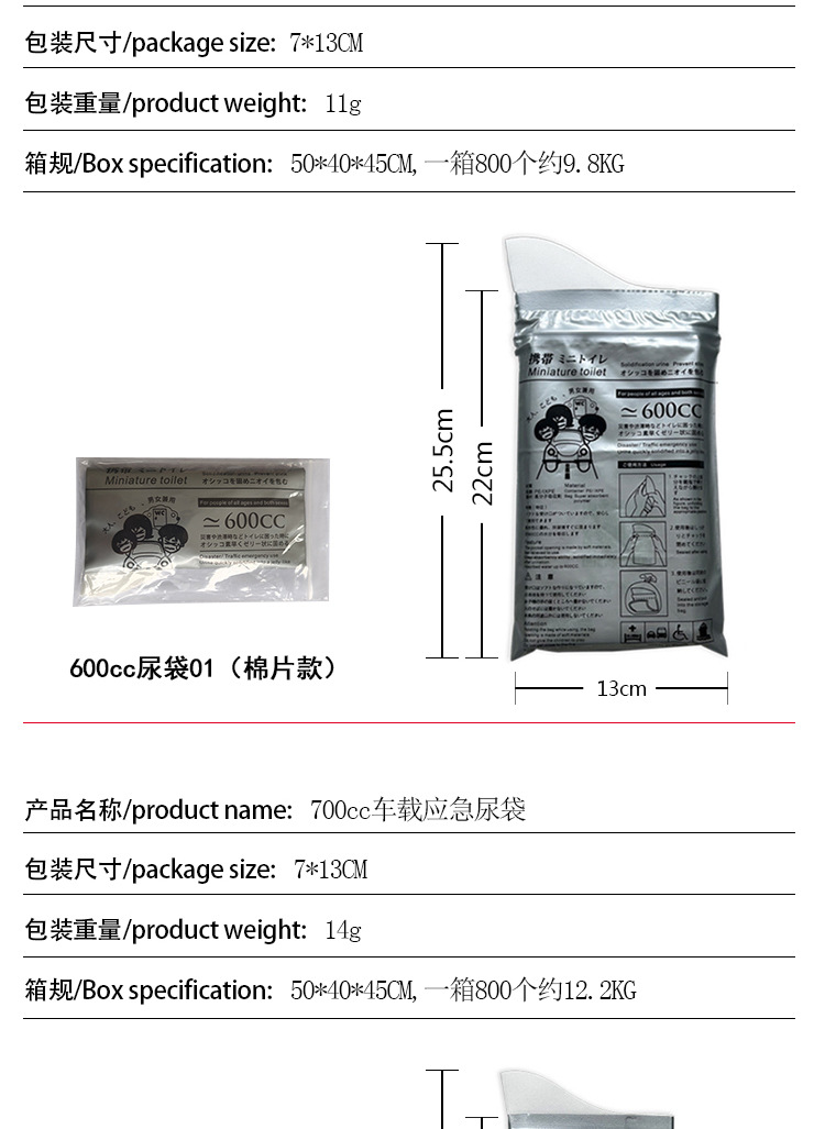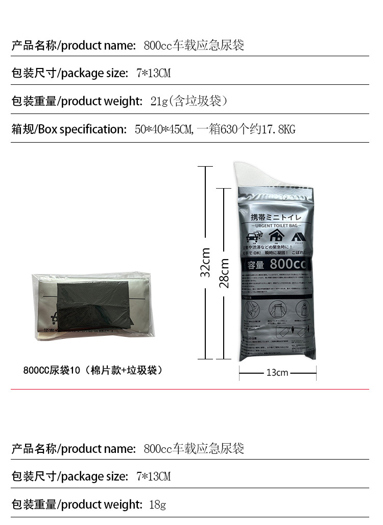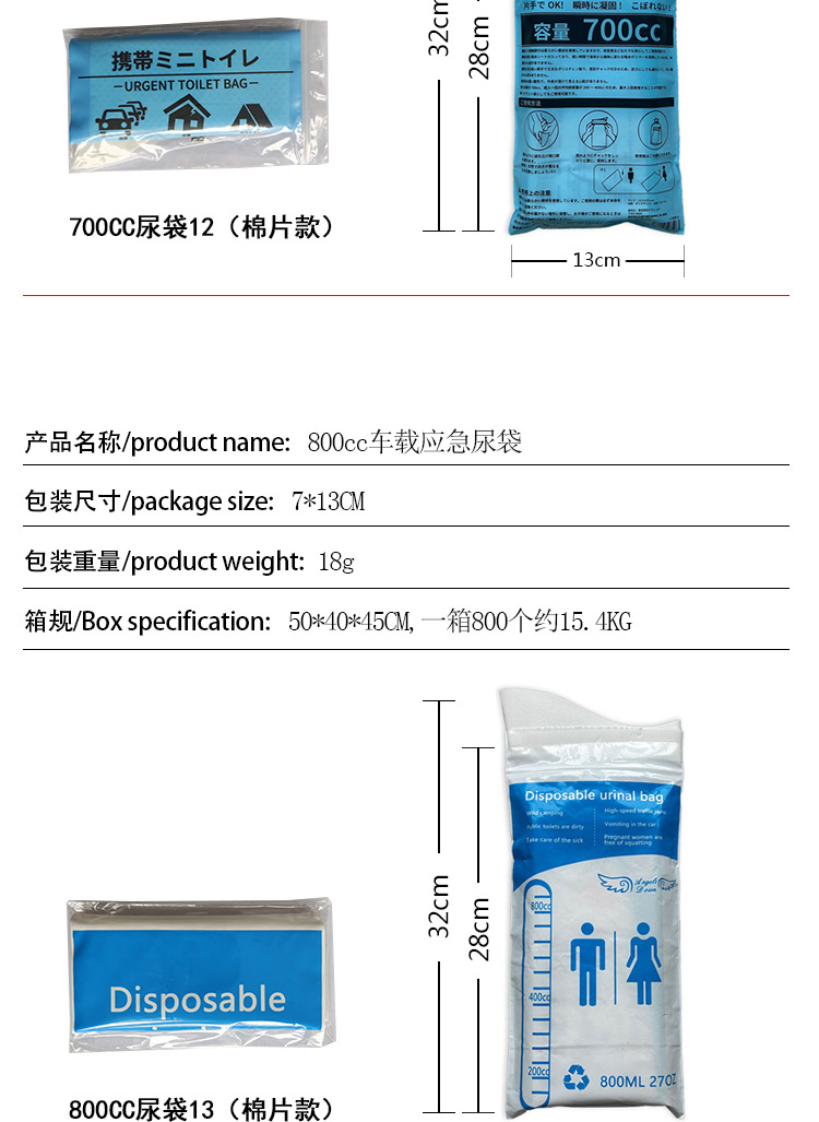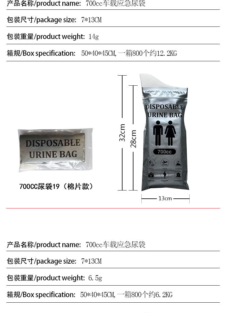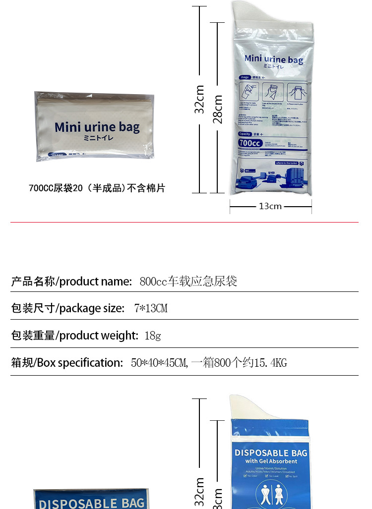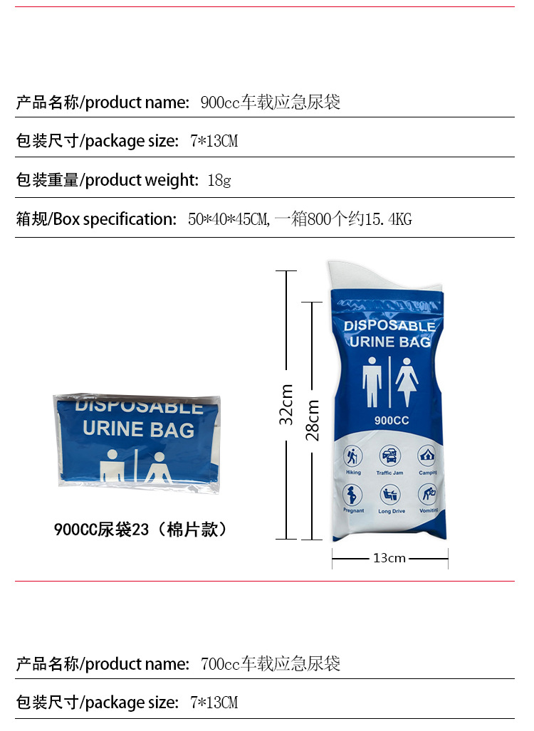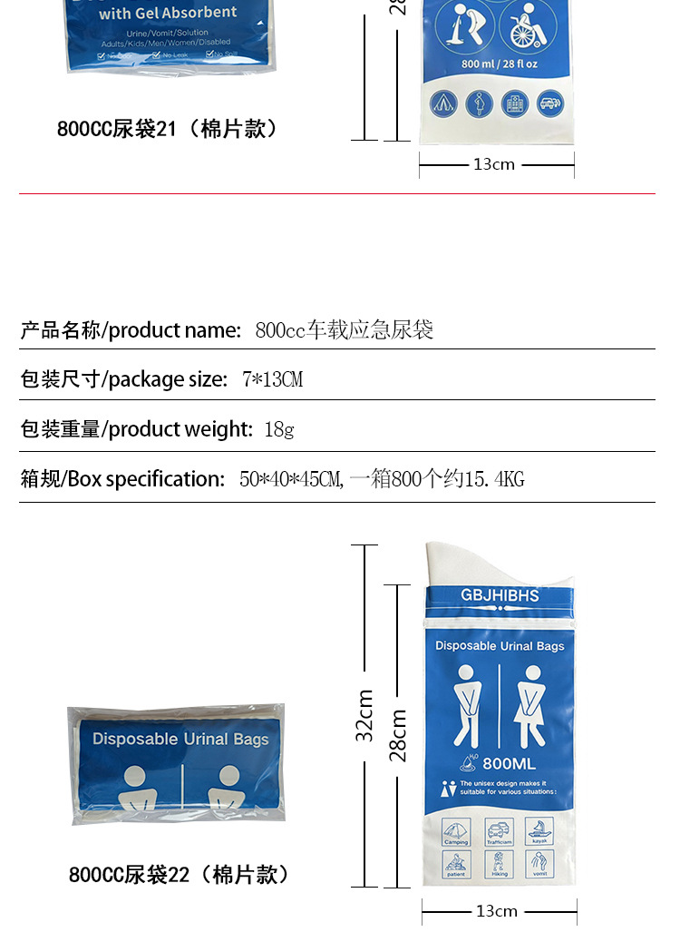Пользовательские автомобильные мешки для мочи аварийные одноразовые мешки для мочи портативные мешки для мочи на открытом воздухе кемпинг мобильный туалет