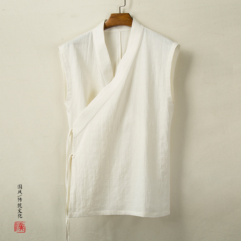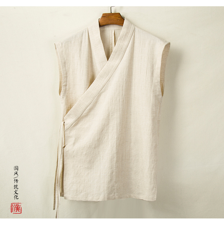 Весенний и летний новый китайский стиль мужской хлопчатобумажный льняный халат мужской ретро тренд минималистский кардиган жилет