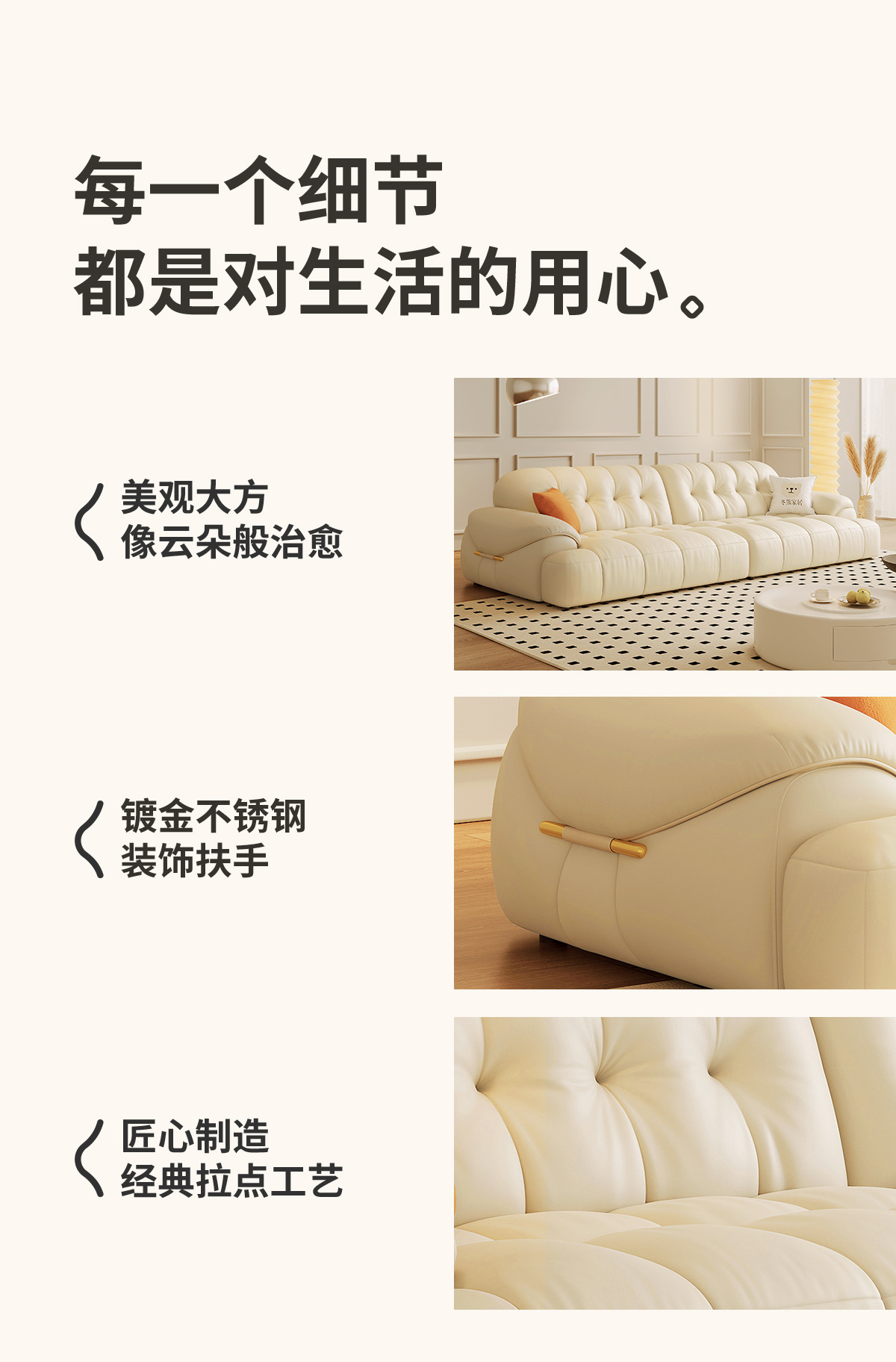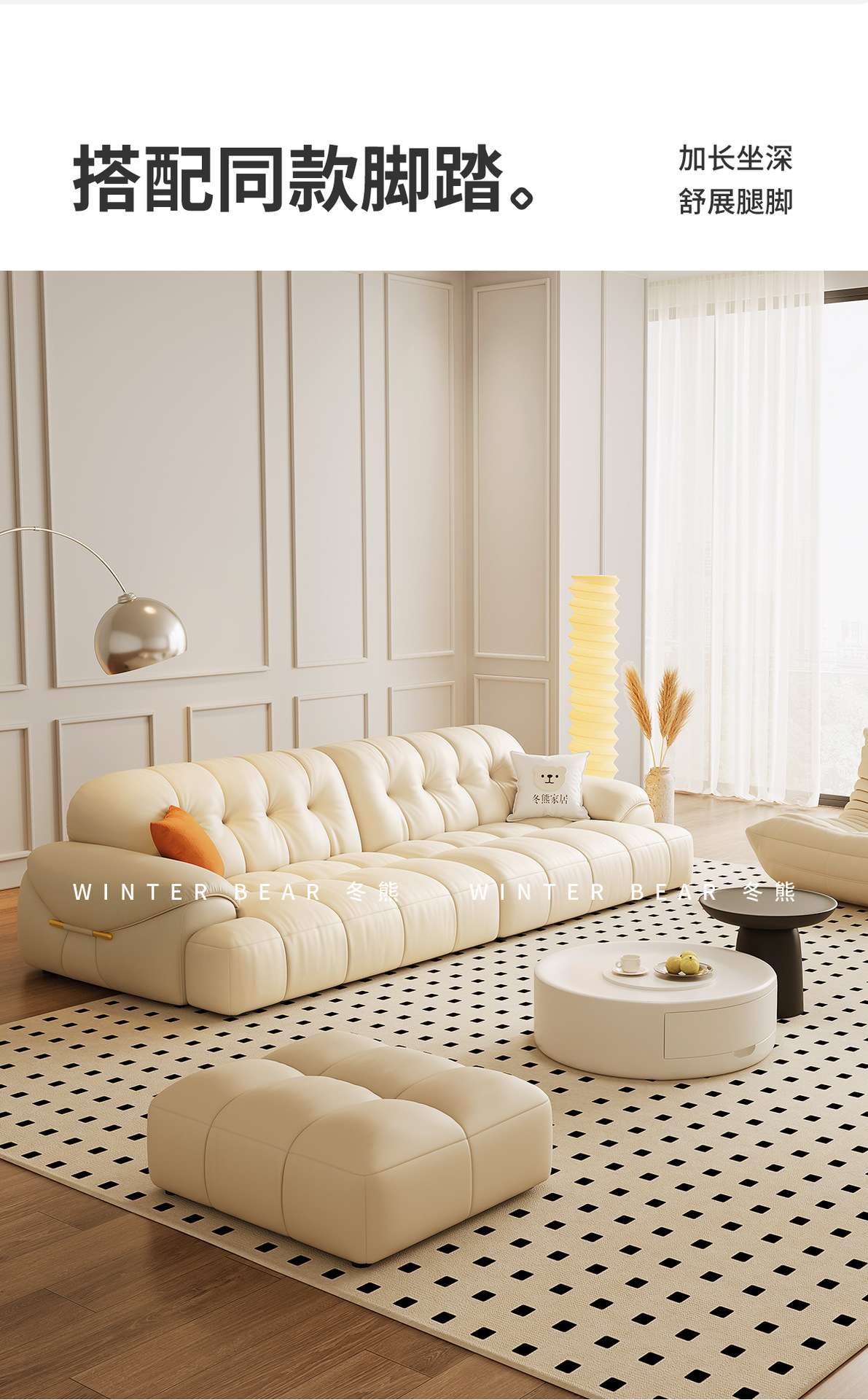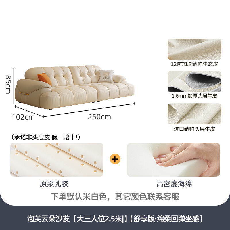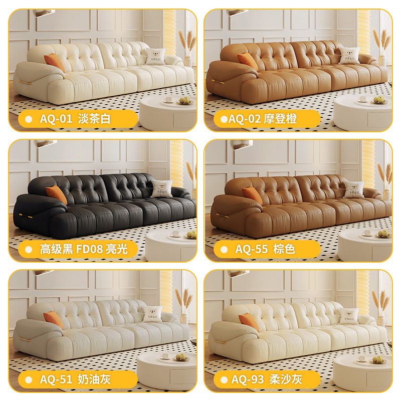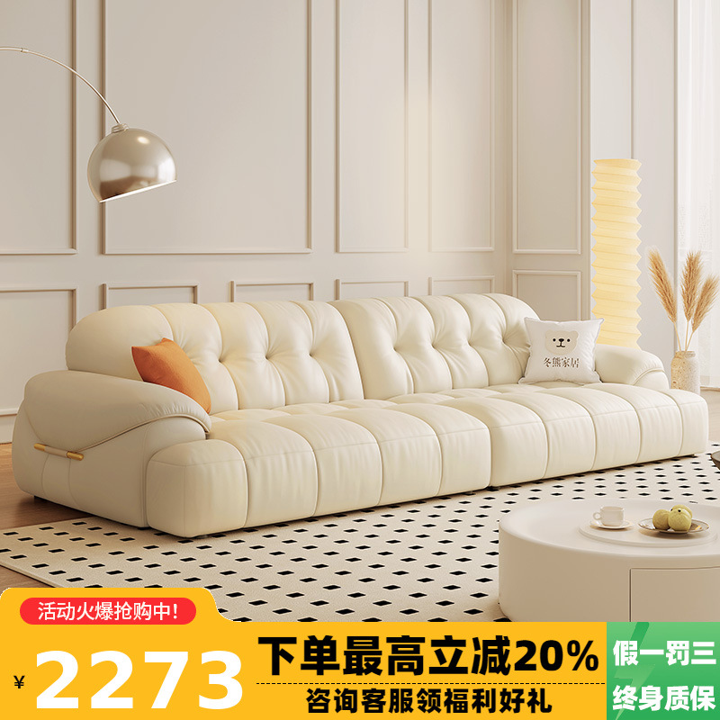 Слопочный облачный диван Французская гостиная минималистская современная зефир зеленая кожа крем ветер легкий и экстравагантный кожаный диван