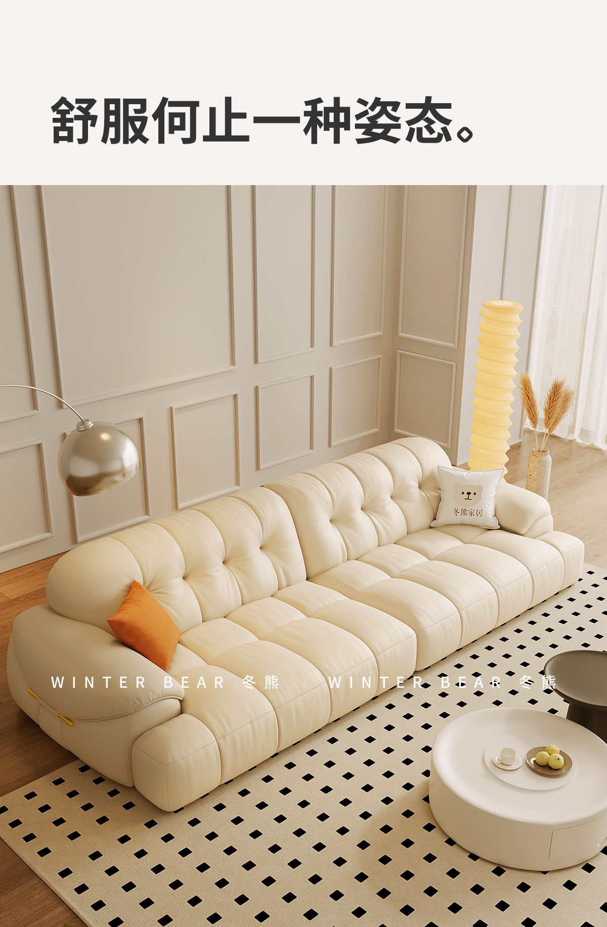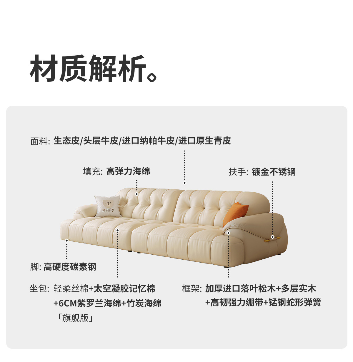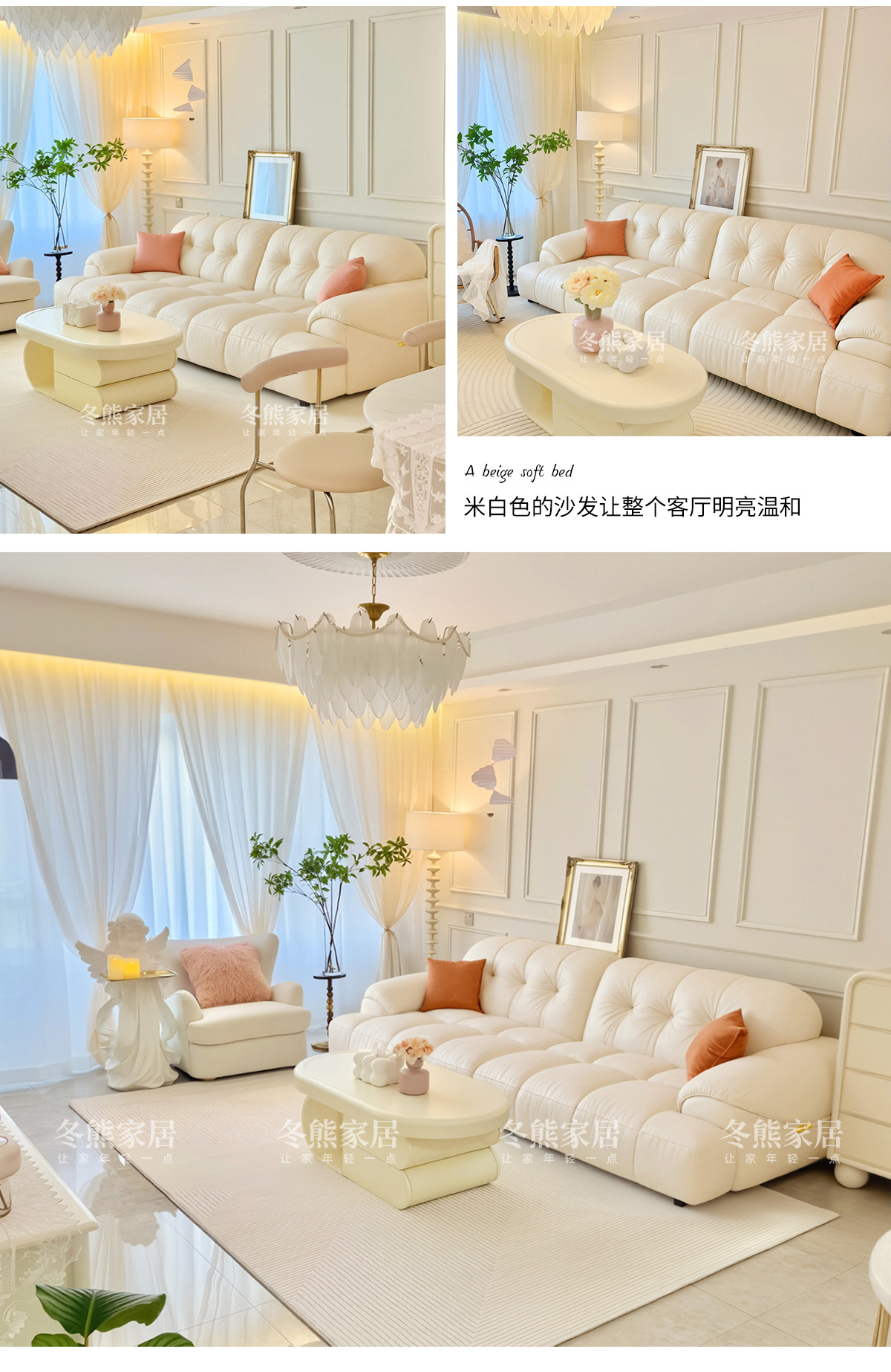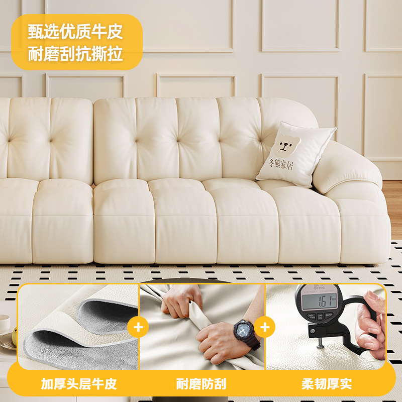 Слопочный облачный диван Французская гостиная минималистская современная зефир зеленая кожа крем ветер легкий и экстравагантный кожаный диван