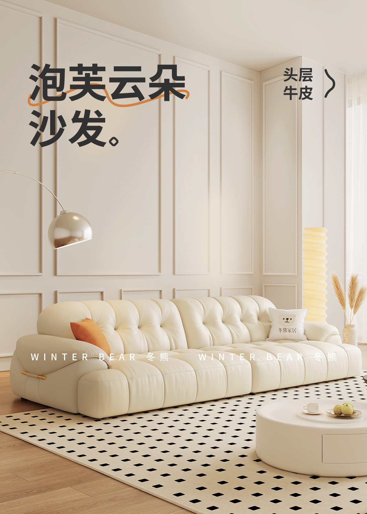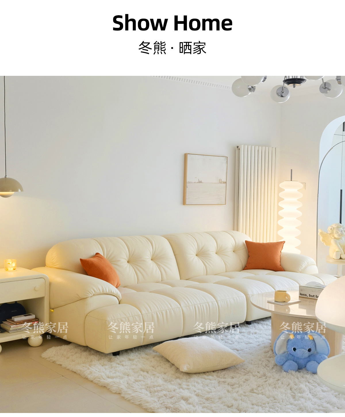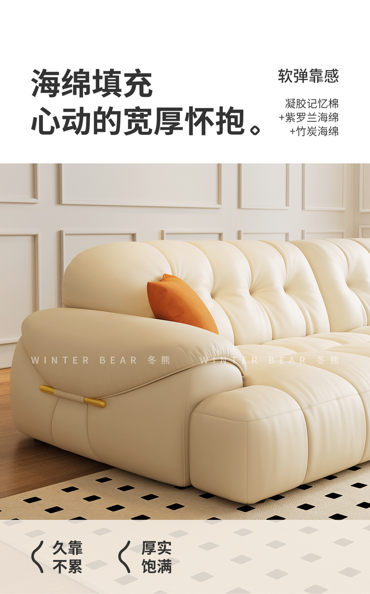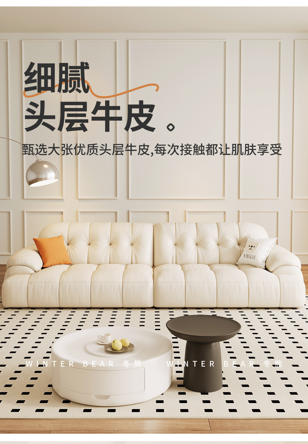 Слопочный облачный диван Французская гостиная минималистская современная зефир зеленая кожа крем ветер легкий и экстравагантный кожаный диван