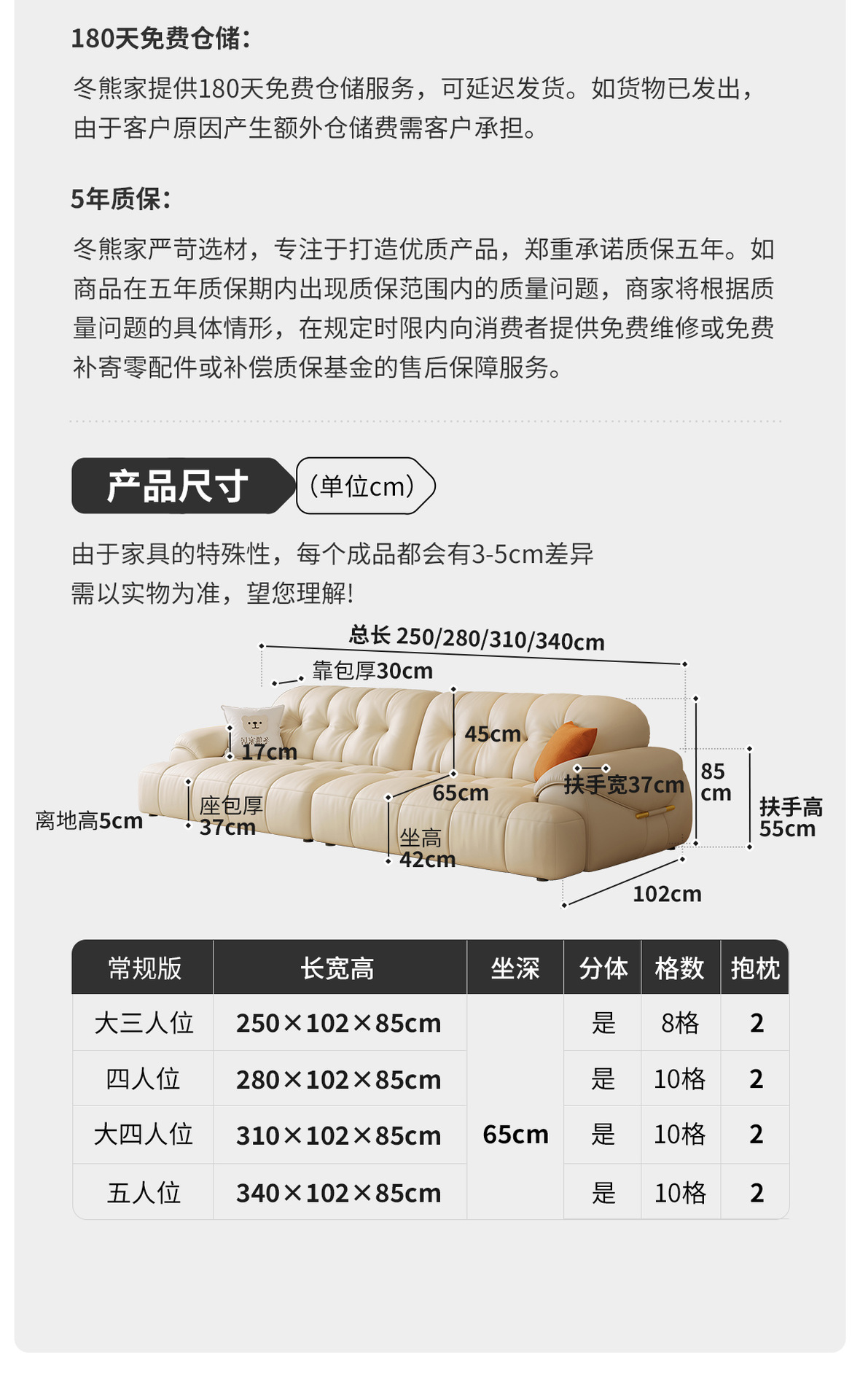 [Большой тройной 2.5m ] [Comfort Edition]; [Четыре человека 2.8m ] [Удобная версия]; [Четыре сиденья для пожилых людей 3.1m г.] [Комфортное издание]; [Пять человек 3.4m ] [Удобная версия]; [Три взрослых 2.5m ] [Deluxe Edition — Сидение в облаке]; [Четырехместный 2.8m г.] [Deluxe Edition-Ощущение сидения в облаке]; [Большие четыре сиденья 3.1m г.] [Deluxe Edition — ощущение сидения в облаке]; [Пять мест 3.4m ] [Роскошная версия - ощущение сидения в облаке]; [Большой тройка 2.5m г.] [Флагманская версия · Нулевое давление и ощущение сидения в невесомости]; [Четырехместный 2.8m г.] [Флагманская версия · Нулевое давление и ощущение невесомости при сидении]; [Большие четыре сиденья 3.1m г.] [Флагманская версия · Нулевое давление и ощущение сидения в невесомости]; [Пять мест 3.4m ] [Флагманская версия · Нулевое давление и ощущение невесомости при сидении]