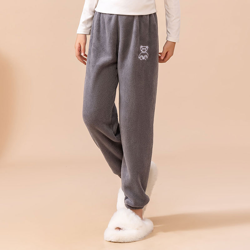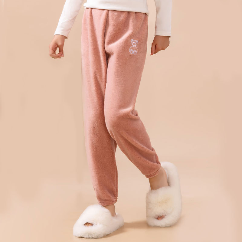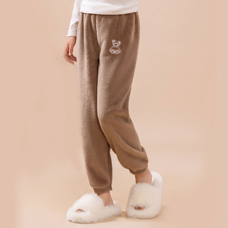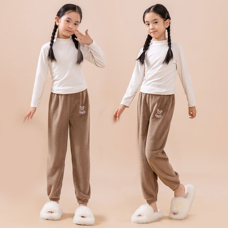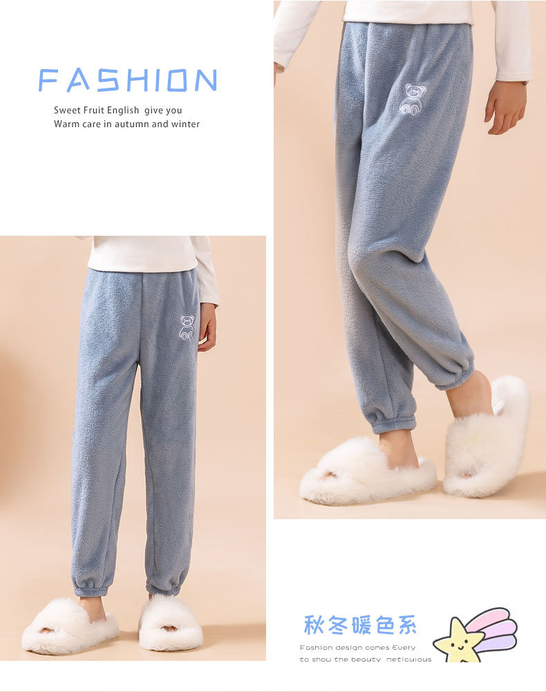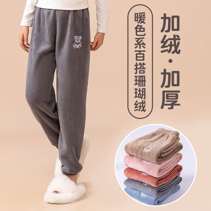 Детские пижамы осенние и зимние новые бархатные толстые коралловые бархатные свободные теплые брюки для мальчиков и девочек